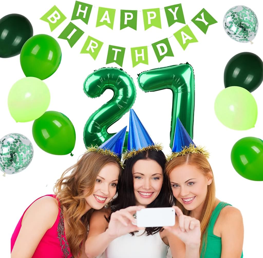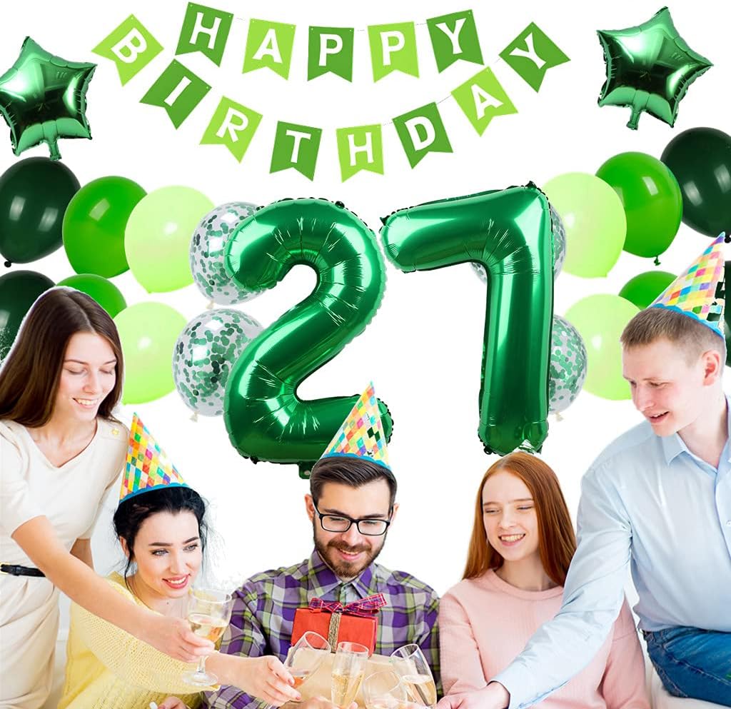 Decorazione di compleanno GRUN: contiene un palloncino foil con numeri da 32" + 1 ghirlanda di palloncini Happy Birthday + 12 palloncini in lattice (12") + 4 palloncini coriandoli (12") + 2 palloncini a stella (18") + nastri per palloncini