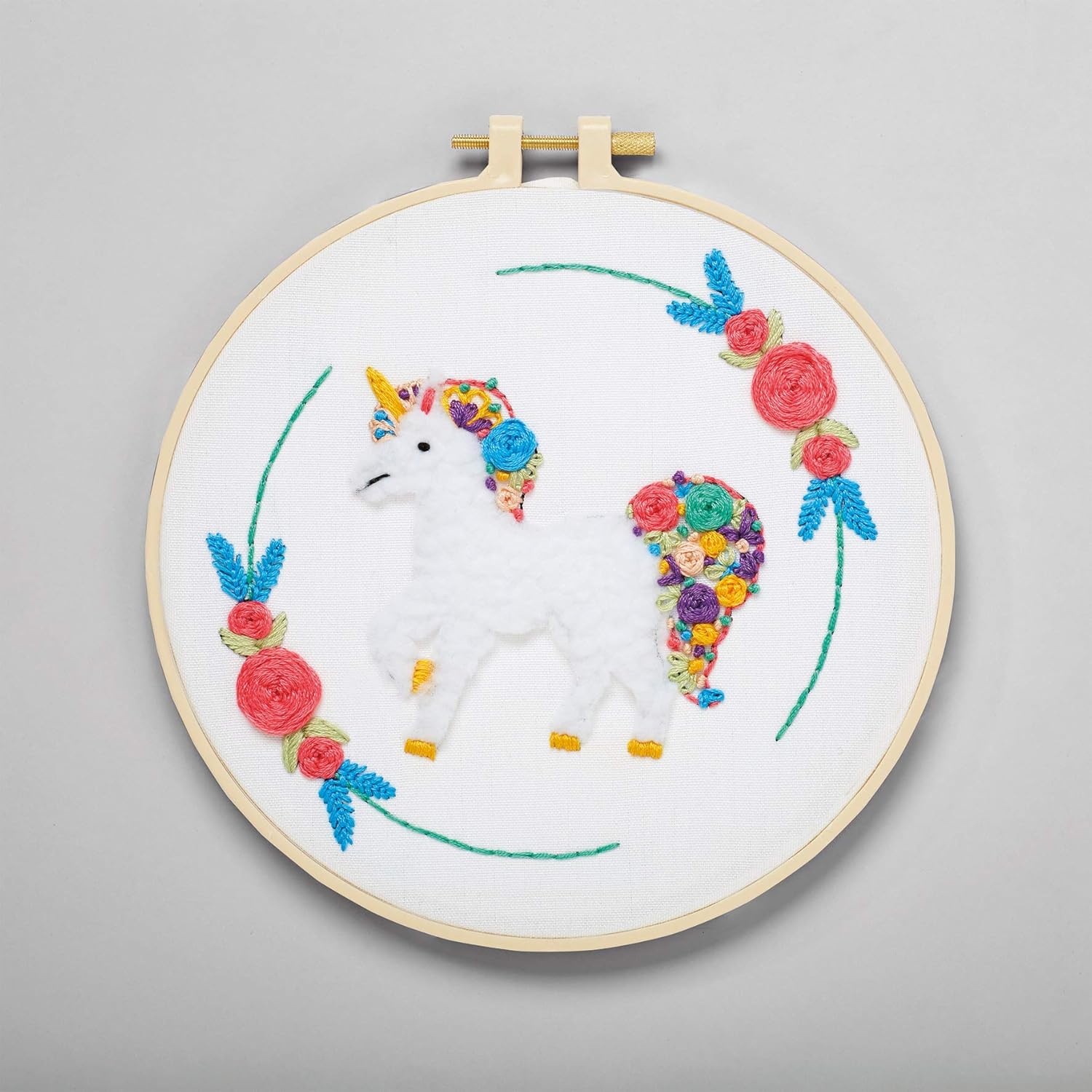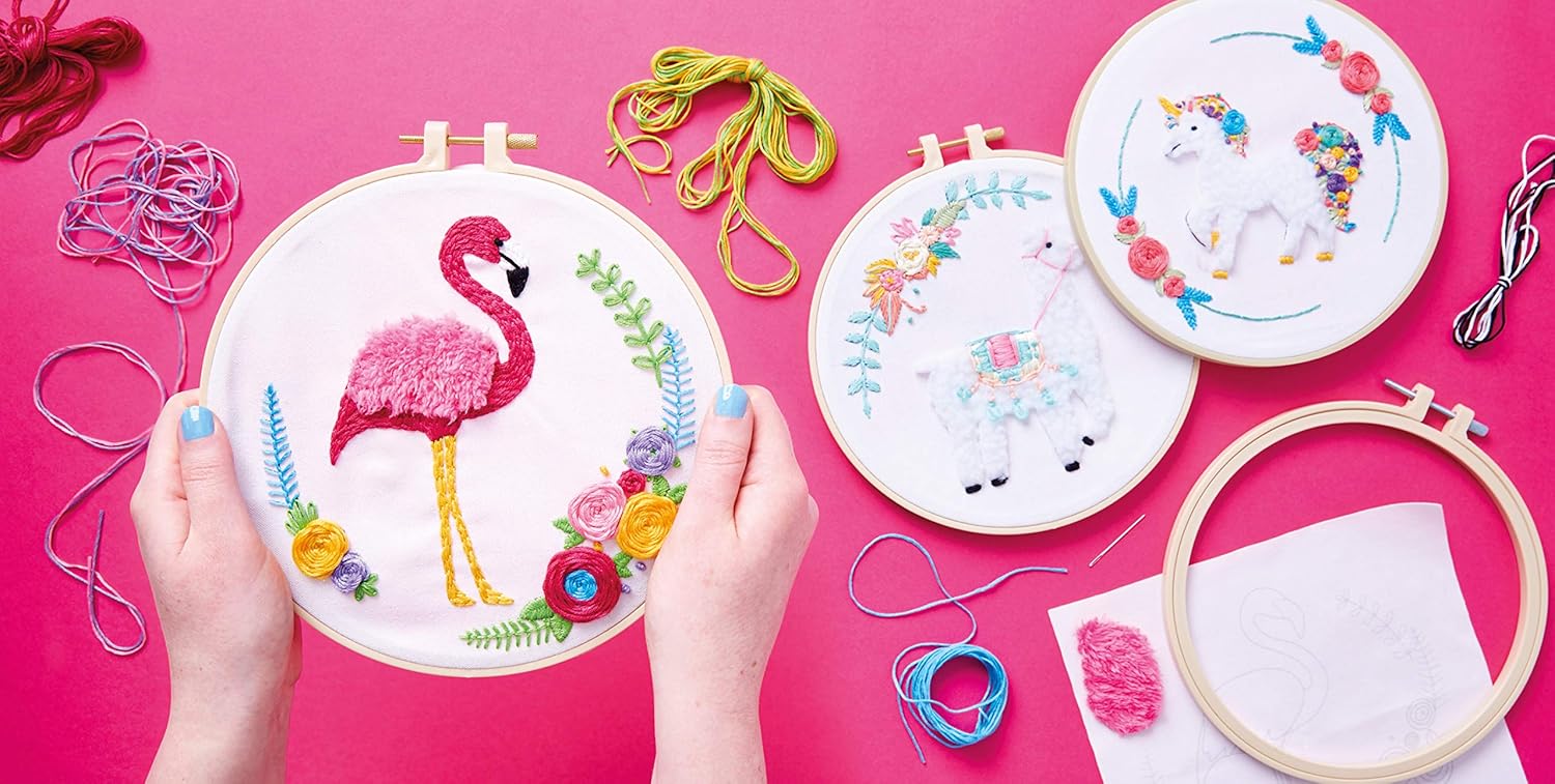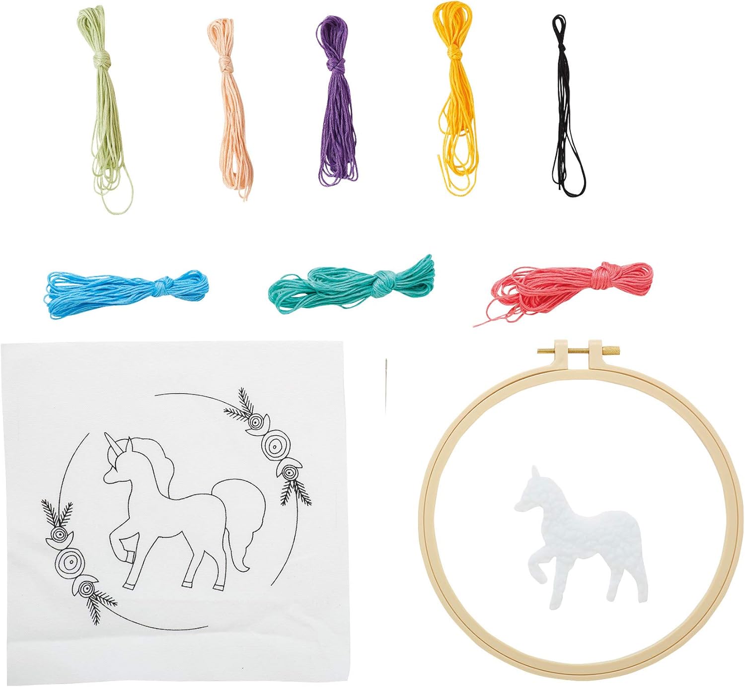 | Pièces incluses | embroidery hoop, pre-printed fabric, pre-cut fabric piece, 8x threads, needle, instructions |