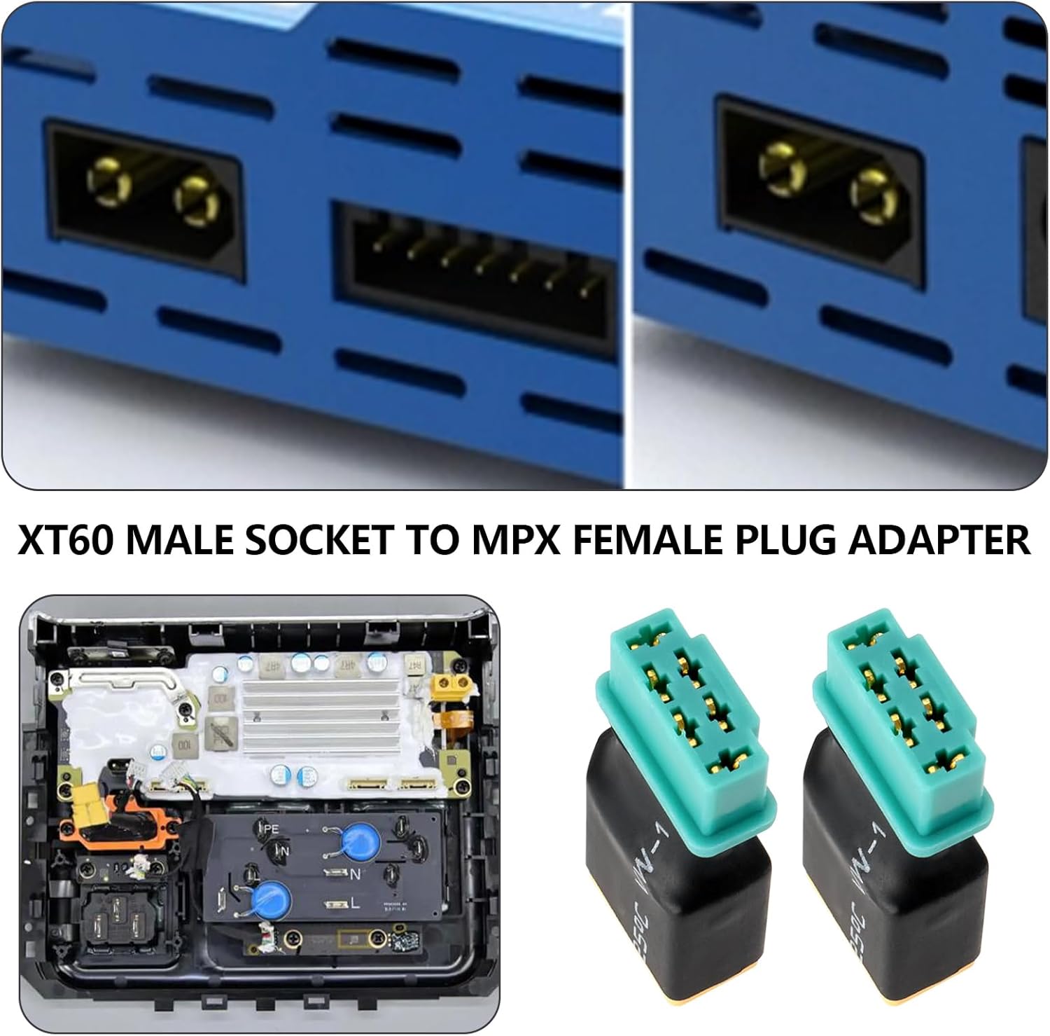 Adattatore da maschio XT60 a femmina MPX per controllo della velocità Brushless o caricabatteria compatibile con pacchi batteria LiPO NiMH NiCd. Connettori placcati in oro, Gold Plug, posizionamento sicuro, per una connessione e una superficie di contatto più sicure. L'elevata potenza di corrente, sicura e resistente a carichi da 30 A fino a 60 A rende questi adattatori adatti a lungo. Il prodotto include un totale di 4 connettori maschio XT60 a femmina MPX, in grado di soddisfare pienamente le esigenze di utilizzo quotidiano e di sostituzione. Facile installazione, può essere sostituito direttamente senza necessità di regolazione, grande compatibilità e alta affidabilità.