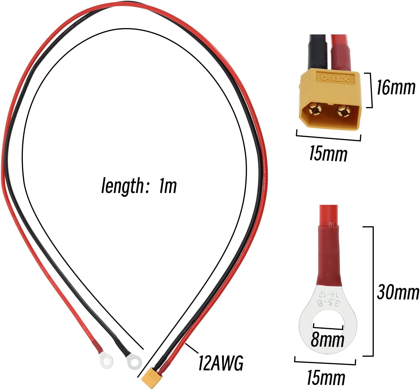 Cavo XT60 a O-ring, cavo nero e rosso, sezione filo: 12 AWG; Lunghezza del cavo: 1 m, un'estremità è la spina XT60 e l'altra estremità è il terminale O-ring. Utilizzo flessibile: cavo O-ring XT60 maschio-maschio, da una spina XT60 converte 2 fili, cavo terminale nero e rosso, può essere meglio collegato alla batteria, offre la flessibilità di caricare in qualsiasi situazione. Filo da 12 AWG: utilizziamo normative sulla linea di filo da 12 AWG, buona conduttività elettrica, corrente di applicazione maggiore e trasmissione di potenza più stabile. Materiale in cloruro di polivinile: ha il miglior effetto isolante, morbido e può piegarsi liberamente, molto e durevole. Ampiamente compatibile: cavo O-ring XT60, collega l'alimentazione alla batteria, ampiamente utilizzato per aereo RC, auto RC, drone FPV, batteria Lipo, utilizzo della porta xt60.