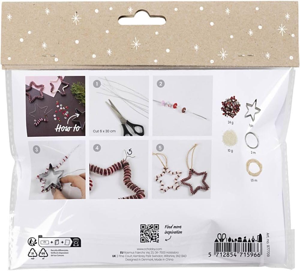 Mini kit di decorazioni per bricolage Con questo kit puoi realizzare stelle di Natale colorate con paillettes e perline. Contiene materiali per sei stelle e tutte le istruzioni necessarie