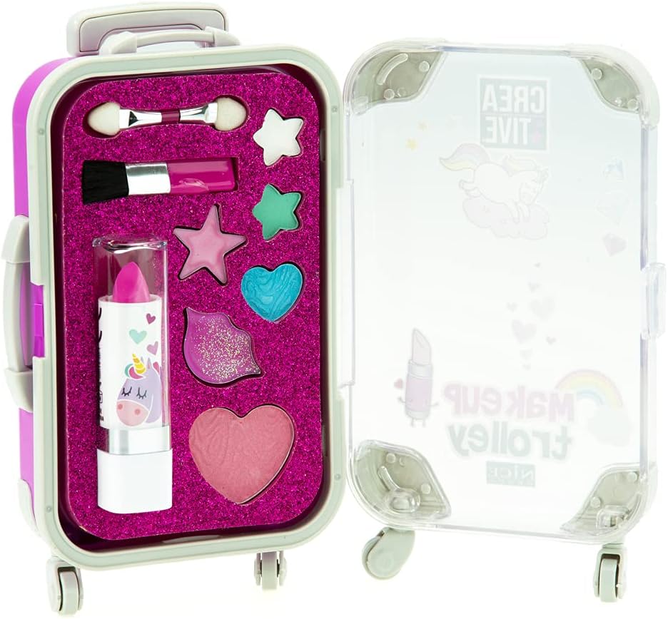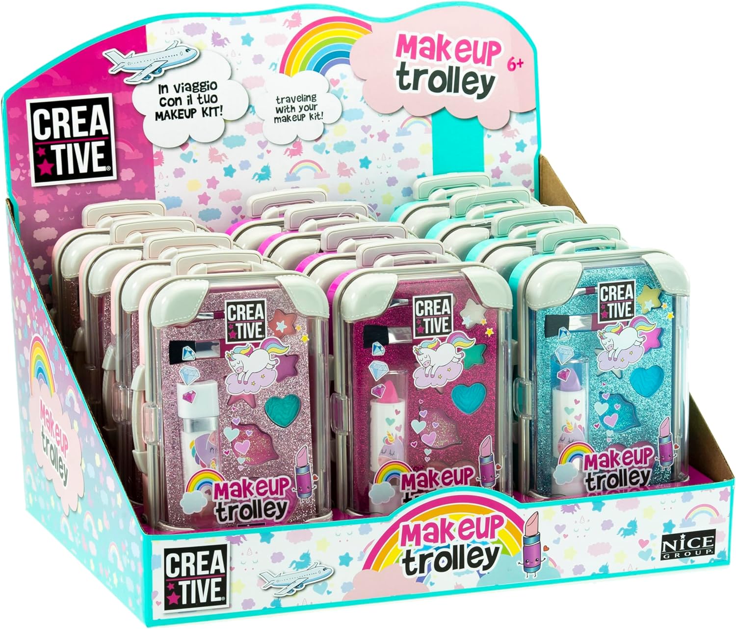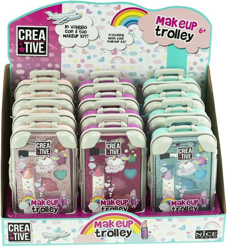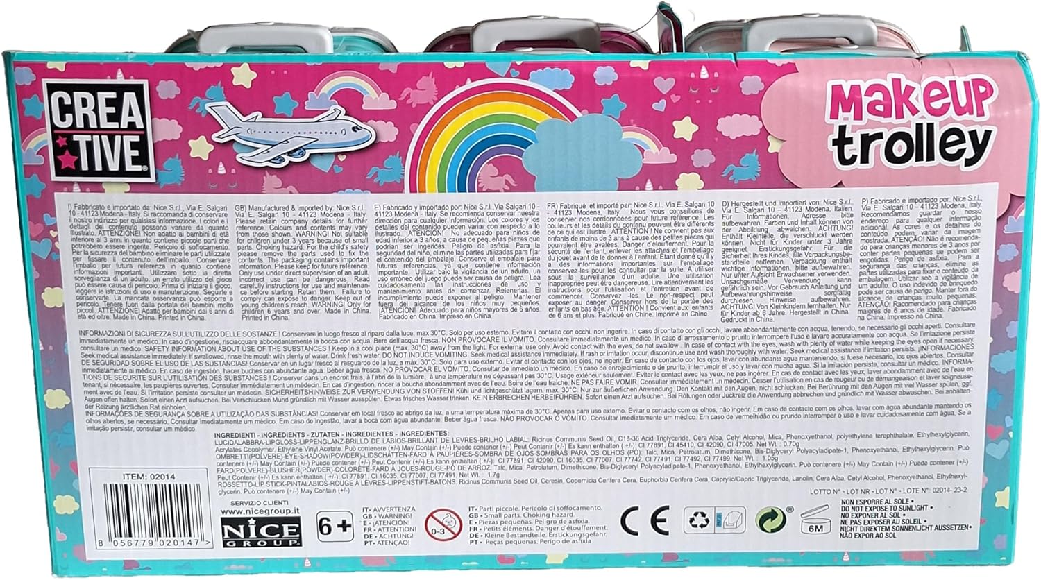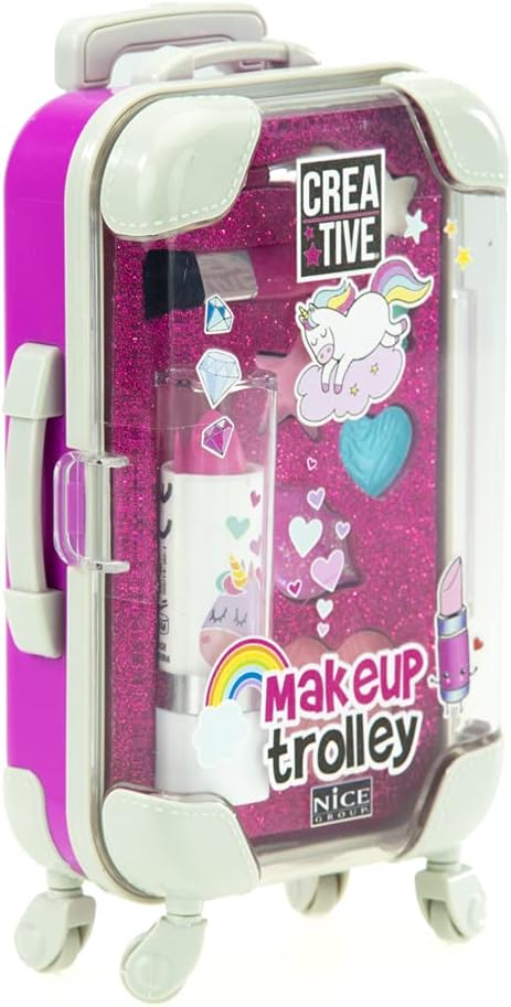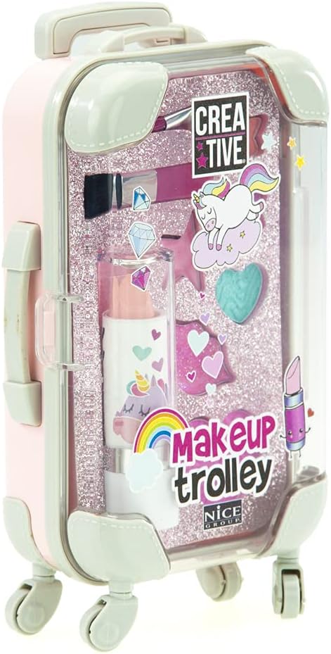 Contenuto: 1 lucidalabbra, 5 ombretti, 2 applicatori. Prodotto originale Nice Group. Età consigliata: 6+ MATERIALE: Il set cosmetici per bambini è realizzato con materiali sicuri, testati, non tossici, a base d'acqua e facili da rimuovere. Dovrebbe essere conservato lontano dalla luce. UTILIZZO: Questo set aiuta i bambini a sviluppare creatività, coordinazione e capacità di imitazione. Può essere utilizzato a feste e compleanni in ogni occasione per creare graziosi look da principessa. IL PREZZO si riferisce alla vendita di 1 singola custodia della gamma. LOOK CREATIVO: mini trolley per il trucco con lucidalabbra e ombretto per bambini.