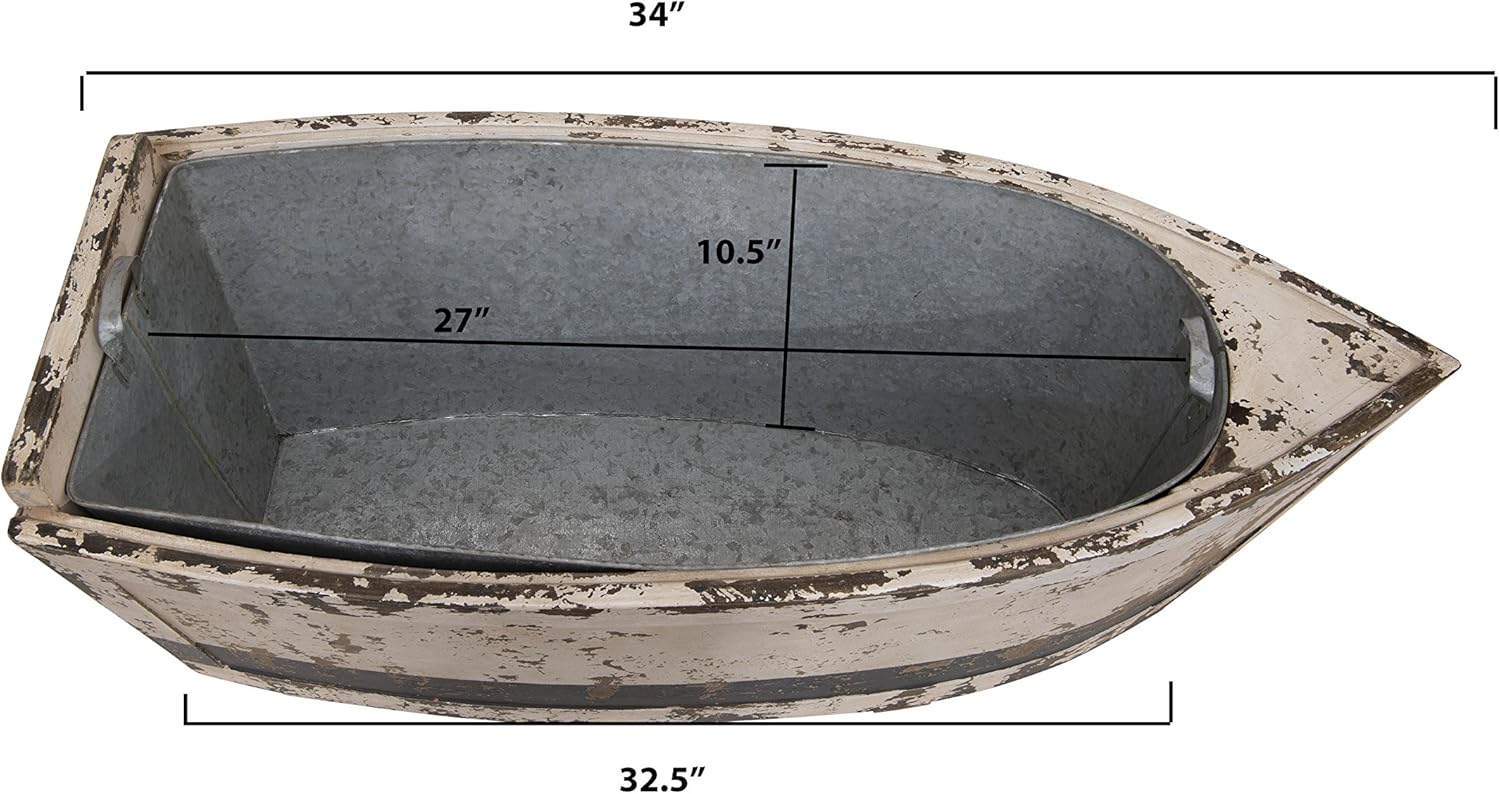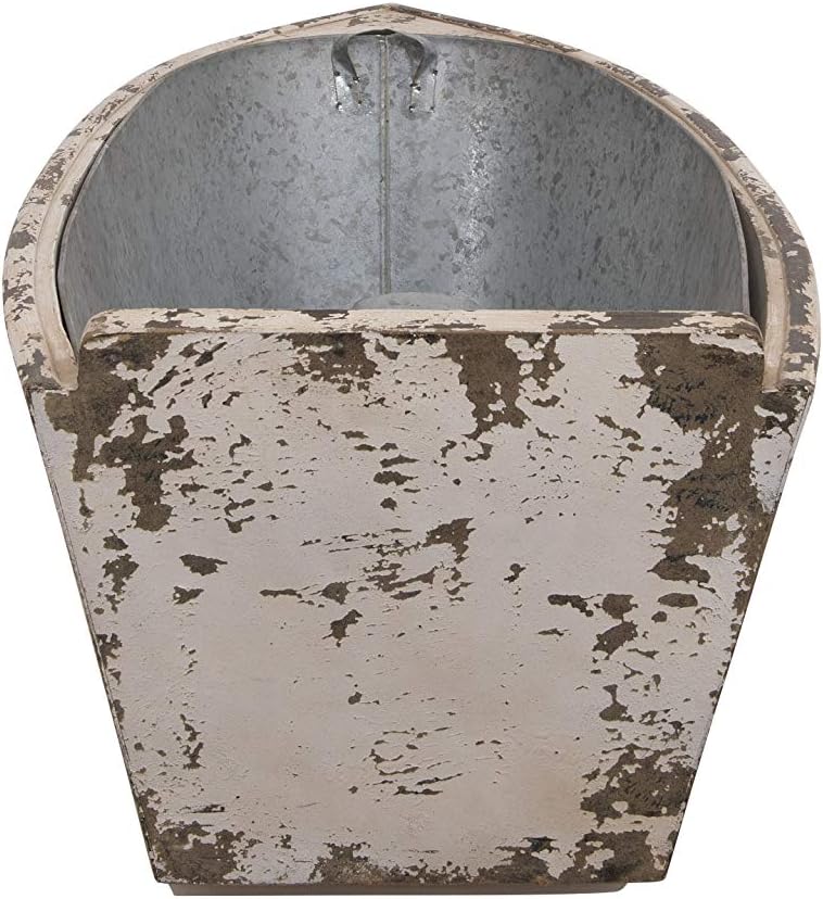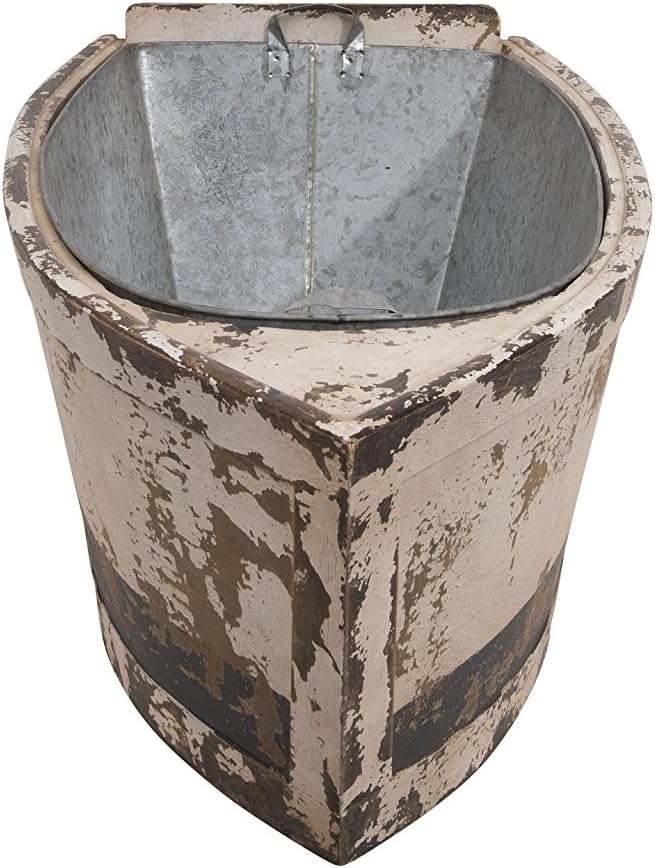 Had to drill holes in the galvanized metal insert to allow for drainage (for use as a planter). Reasonably sized and the distressed look is nicely done.