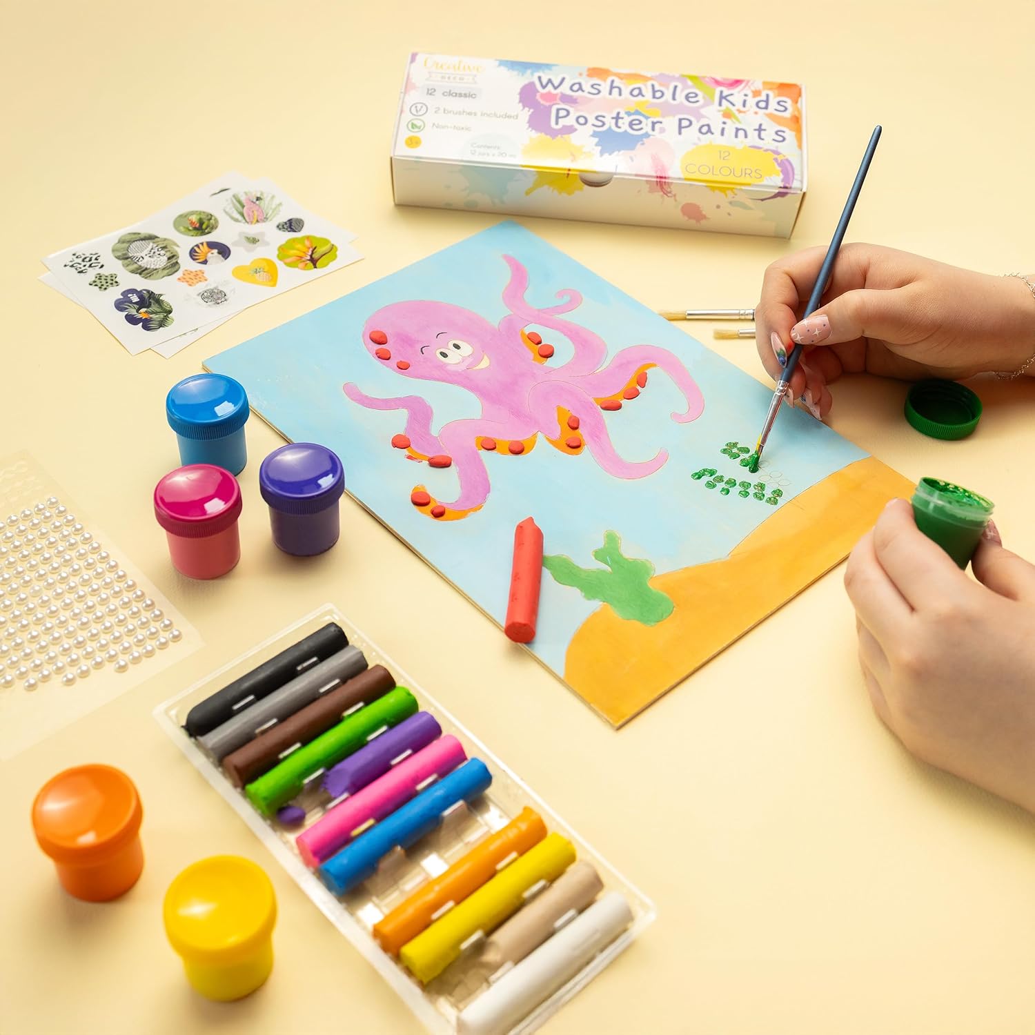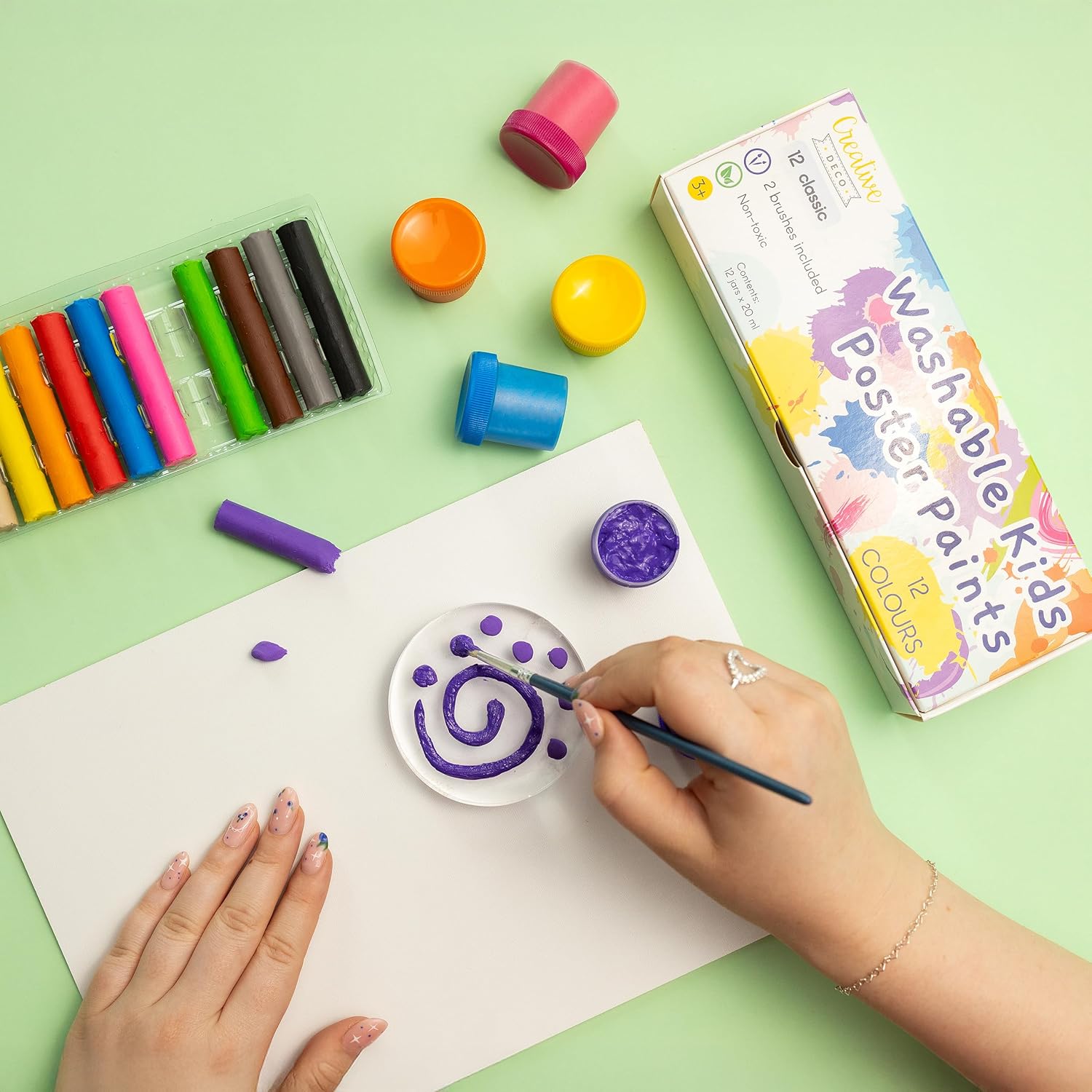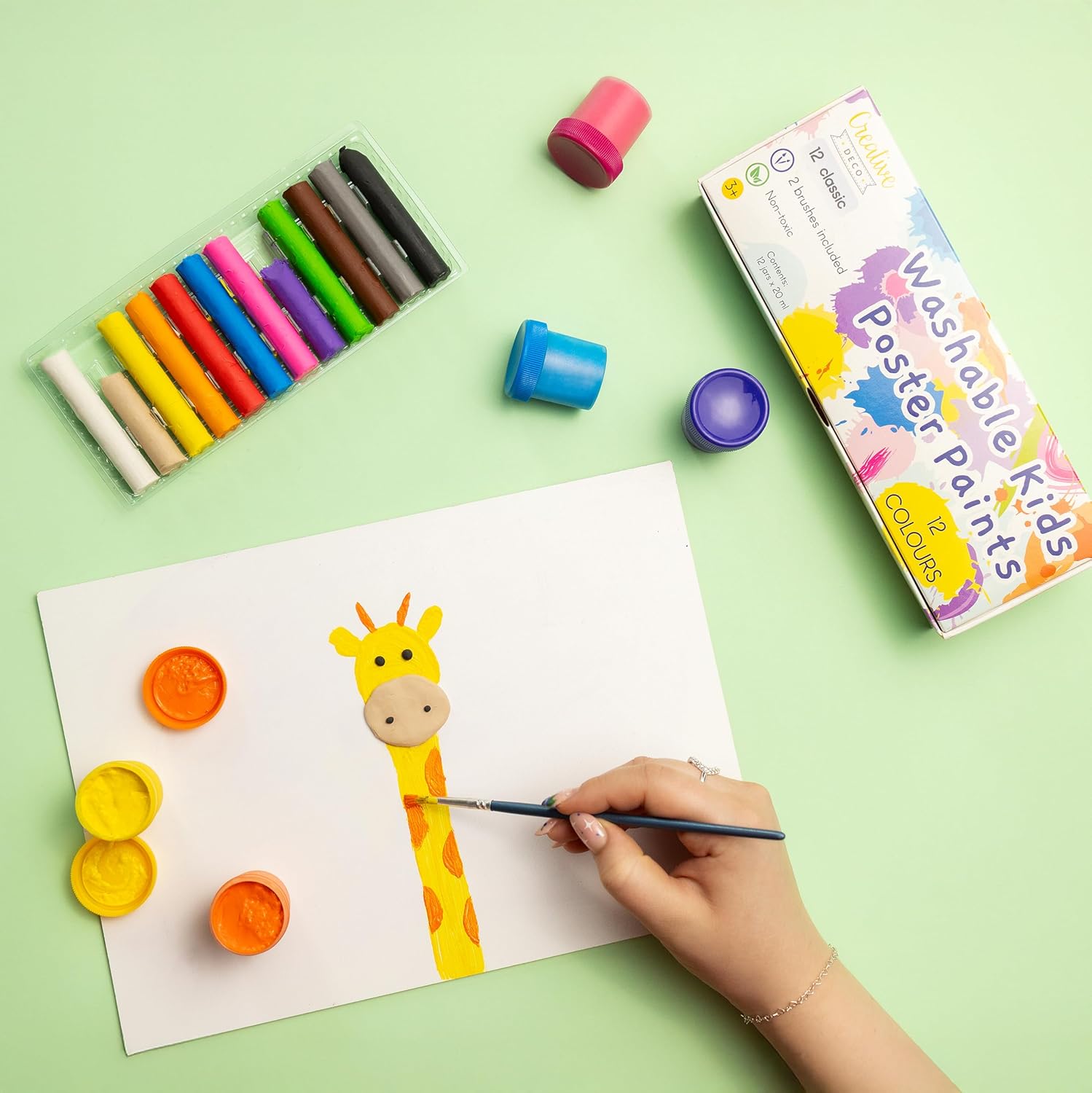 SET 2 IN 1 – 12 COLORI DI PLASTILINA E 12 COLORI A TEMPERA - Il set contiene 12 colori intensi di plastilina e 12 colori a tempera a base d'acqua. Prodotto adatto per attività artistiche, modellaggio, pittura con le dita, artigianato e decorazione. I colori sono miscelabili tra loro, favorendo la creatività e lo sviluppo della manualità. FACILI DA USARE E LAVABILI - I colori asciugano in circa 25 minuti e coprono bene superfici come carta, cartone, legno, tessuto, vetro, metallo o plastica. La plastilina rimane elastica – in caso di essiccazione, basta un po' d'acqua. I colori si lavano facilmente da mani e tessuti con acqua e sapone. Il set include anche due pennelli e una spatola per modellare la plastilina, facilitando l'applicazione e la creazione. INGREDIENTI SICURI E CERTIFICAZIONE CE - Plastilina e colori sono realizzati con materiali atossici ed ecologici, adatti a bambini sopra i 3 anni. I prodotti rispettano le normative di sicurezza europee e sono adatti per uso domestico, scolastico e prescolare. PER ATTIVITÀ CREATIVE E LUDICHE - Prodotto adatto a bambini, adolescenti e adulti di ogni livello. Perfetto per pittura, modellazione, decoupage, creazione di decorazioni e progetti artistici. PRODOTTO NELL'UE - Realizzato nell'Unione Europea. I componenti provengono esclusivamente da Paesi UE, garantendo qualità, coerenza e conformità alle normative locali e nazionali.