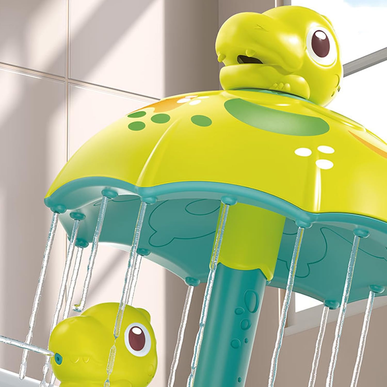Gioca nella vasca o all'esterno Trasforma del bagno in entusiasmante avventura con nostro giocattolo da bagno ombrello dinosauro Adatto per 18 mesi+ Immergiti nelle vasche da bagno o nella piscina d'acqua, solleva dinosauro e la tua fontana Goderci divertimento schizzare acqua