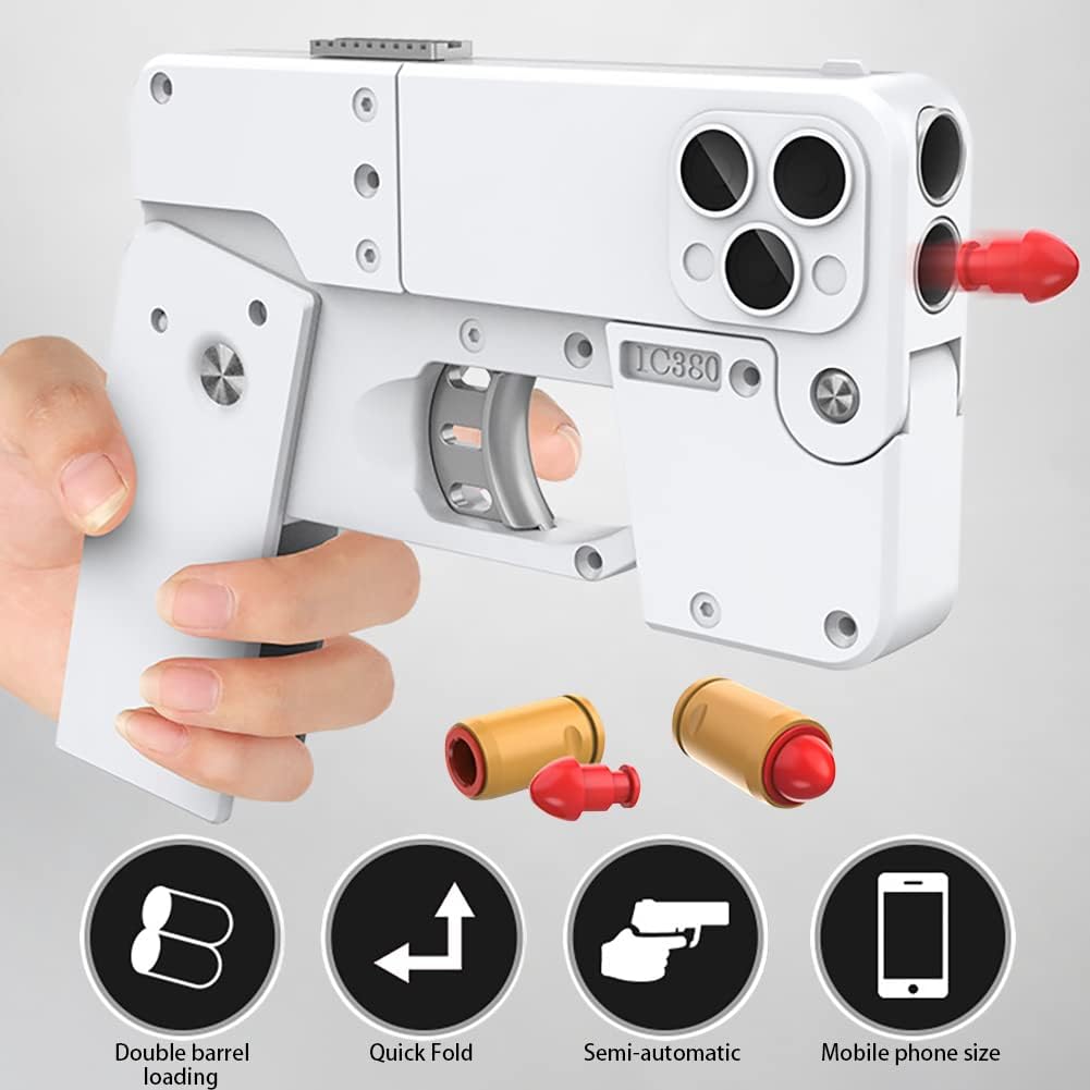 Pistola giocattolo creativa Soft Bullet: pensavate che fosse un telefono cellulare, no!non!non! Questa è una pistola a sfera morbida, così cool! Tutte le sfere morbide hanno un senso distintivo e una sensazione più forte. La riproduzione più perfetta del gioco e della sensazione di impatto più realistici e rispettosi del corpo. Palline sicure e morbide: la pistola giocattolo pieghevole è caricata con una morbida schiuma in materiale EVA di alta qualità, appositamente progettato per i bambini. La consistenza è morbida e non danneggia il corpo umano. In questo modo i bambini possono usarla con fiducia. Viene fornito con 8 cartucce e 20 bomba morbida. 【Attività all'aperto divertenti】Come nel tiro a paintball per adulti, le riprese sono un'esperienza divertente, stimolante e positiva per i bambini, che include esercizio fisico, abilità di obiettivo, osservazione e resistenza. Divertimento per la famiglia: il giocattolo pieghevole a forma di pistola a forma di cellulare può essere un ottimo giocattolo per bambini e anche per adulti. La famiglia può giocare a giochi di tiro all'aperto e divertirsi insieme. I giochi di tiro includono molti movimenti fisici, benefici per la salute e la resistenza dei bambini. Ottima idea regalo: questo giocattolo pieghevole a forma di pallone morbido a forma di cellulare è il perfetto per trascorrere del tempo con la famiglia. Questo è un regalo perfetto per la famiglia e gli amici, è adatto per adulti, bambini, adolescenti, ecc. È il miglior regalo per Pasqua, Halloween, Ringraziamento, Natale, Capodanno.