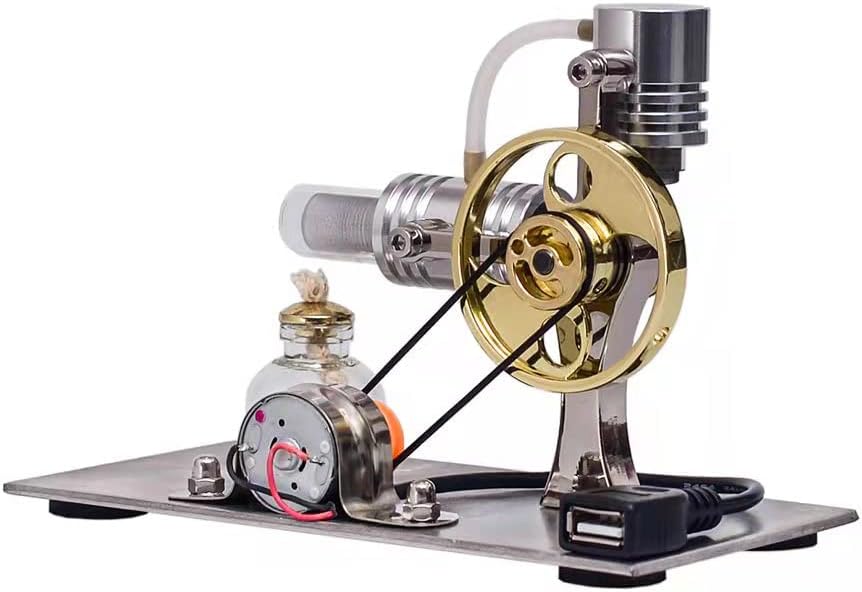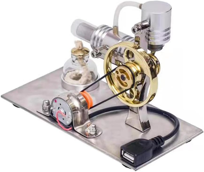 Motore Stirling a forma di L: la forma complessiva è nuova e unica, l'aspetto completamente argento è fresco e accattivante, il motore è dotato di un piccolo generatore. È pieno di senso meccanico e tecnologico del metallo. È un modello eccellente e squisitamente decorato Istruzioni per l'uso: il prodotto stesso è assemblato e può essere messo in servizio in qualsiasi momento. Posizionare il prodotto su un tavolo orizzontale, quindi versare il 95% di alcol nella lampada ad alcool (capacità non superiore a 2/3), accendere la lampada dell'alcool e posizionarla sotto il cilindro caldo per preriscaldare per 30 secondi e ruotare il volano a mano per sostenere il lancio. Lavorazione eccellente: la macchina è principalmente realizzata in acciaio inossidabile e lega di alluminio. Il trattamento superficiale è fine, ricco di lucentezza metallica e le parti sono coordinate ad alta precisione. La piastra inferiore è dotata di una posizione per il posizionamento della lampada ad alcol. La macchina funziona senza intoppi e in modo affidabile. Significato e valore: questo prodotto può essere utilizzato come strumento didattico per comprendere e apprendere la struttura e il principio del motore Stirling e può essere utilizzato come giocattolo educativo scientifico popolare per condurre esperimenti scientifici e tecnici, praticare abilità pratiche e coltivare abilità di innovazione Giocattolo educativo: fornisce spazio sufficiente per esercizi pratici per esplorare la scienza, promuovere l'immaginazione e la creatività e realizzare sogni scientifici e tecnici