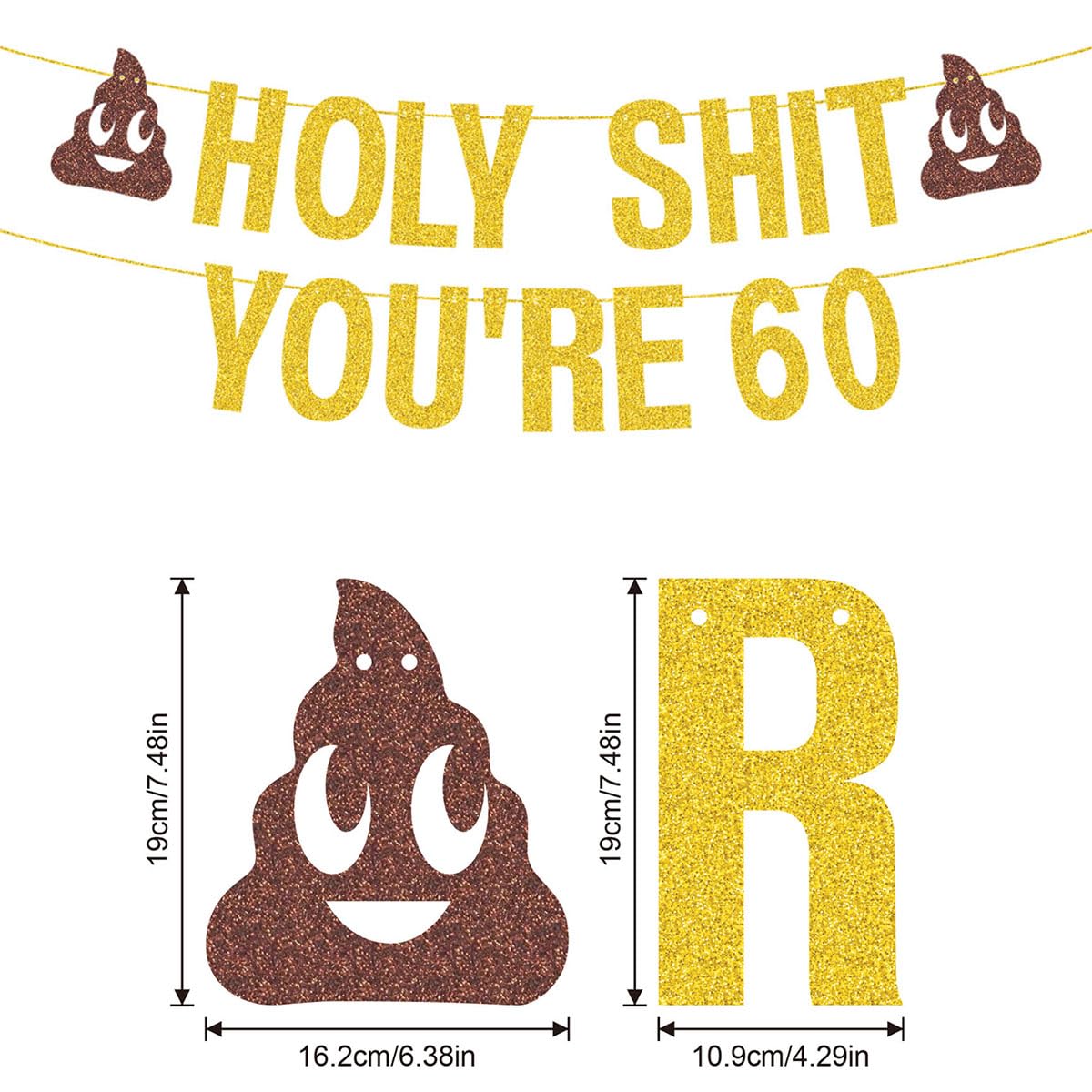 Creativity Point Striscione di buon 60° compleanno - Insegna decorativa per feste con glitter dorati - Striscione divertente Holy Shit Youre 60 per il 60° compleanno