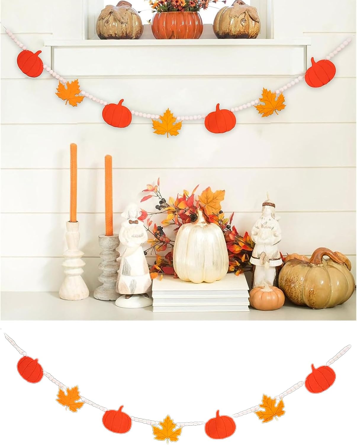 Facile per decorare camini, finestre, porte, scaffali e qualsiasi luogo in cui si desidera aggiungere calore in autunno, rendendolo una grande decorazione per la casa Crea una forte atmosfera festiva con le decorazioni autunnali, per feste a tema autunnale, riunioni di ringraziamento o aggiungendo tocchi autunnali a ogni occasione Elevando l'arredamento della tua casa con le decorazioni autunnali, realizzate con materiali naturali, questi squisiti pezzi decorativi in feltro e perline di legno aggiungono tocchi di calore e fascino Le decorazioni autunnali mostrano una consistenza unica e una pregevole fattura, progettate per sopportare il tempo e mantenere la loro bellezza Le decorazioni autunnali per la casa, tra cui zucche in feltro fatte a mano e foglia d'acero, sono separate da perline di legno su corde per appenderle facilmente