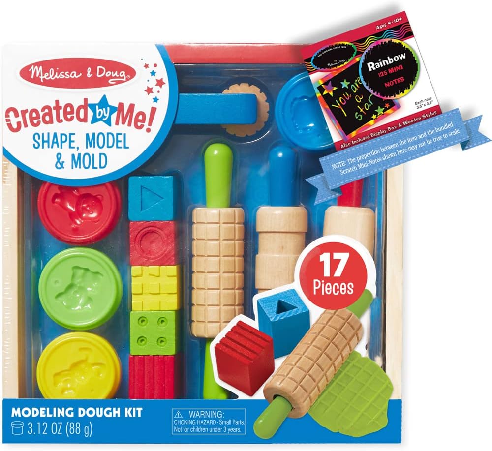 Con questo articolo viene fornito un mini pad Scratch Fun di Melis's a & Dou g. Lo stile del mini pad che riceverai viene scelto in modo casuale. Se stai restituendo questo articolo, ti preghiamo di rispedirlo anche lui. Collezione colorata di strumenti in legno Include 5 cubi in legno per timbratura, 3 rulli P I N S, 4 vassoi per modellare D O U G H, 1 pressa per modelli 4 colori vivaci (rosso, giallo, blu e verde) Adorabili stampi per animali su ogni coperchio