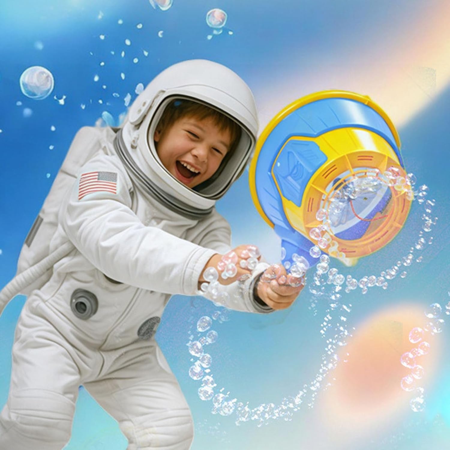 Potente distanza di volo: genera bolle di sapone che ruotano e si diffondono su un raggio di 5 metri. Offriamo divertimento ed eccitazione ininterrotti durante le riunioni e la ricreazione. Pacchetto Durabilità: viene fornito con 2 ricariche a bolle per prolungare la durata del gioco. La generazione stabile di bolle crea spazio costantemente luminoso e piacevole Elevata affidabilità: realizzato in materiale PP rinforzato, è infrangibile e offre prestazioni stabili delle bolle. Anche la sicurezza viene considerata con la struttura anticaduta. Un regalo da ricordare: Un dispositivo per bolle di sapone pensato per rendere la tua occasione o il evento indimenticabile. Aggiungi eccitazione ed eccitazione ai compleanni e ai momenti speciali come il miglior regalo per i bambini Sviluppa la creatività: un ambiente di gioco con le bolle coinvolgente che coinvolge efficacemente i bambini, sviluppa abilità sociali, migliora la coordinazione occhio-mano e favorisce il potenziale di crescita.