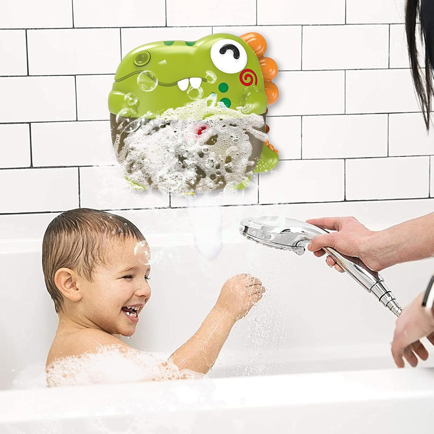 Intrattenimento Interattivo per Bagno: Sperimenta divertimento sensoriale stimolante con funzioni regolabili come luci fresche ed effetti sonori opzionali, offrendo combinazioni solo luci o luci con musica per maggiore coinvolgimento nel gioco. Costruzione : Tre potenti ventose assicurano stabilità, struttura ABS ispessita unisce materiali sicuri e resistenti con bordi perfettamente levigati per un'esperienza senza preoccupazioni durante il bagnetto del bebè Divertimento garantito: Realizzato appositamente per 1-3 anni, il giocattolo da bagno con bolle migliorato sfoggia un design da dinosauro e colori vivaci per creare un momento di immersione gioiosa durante il bagnetto infantile come Regalo: Porta entusiasmo al bagnetto con giocattoli interattivi, soluzione perfetta per compleanni e festività che motiva bambini a godersi felicemente la quotidiana routine igienica Scelta pratica: La combinazione di pompa 'aria removibile, membrana impermeabile e controllo a un pulsante rende il giocattolo da bagno a bolle ideale per l'intrattenimento