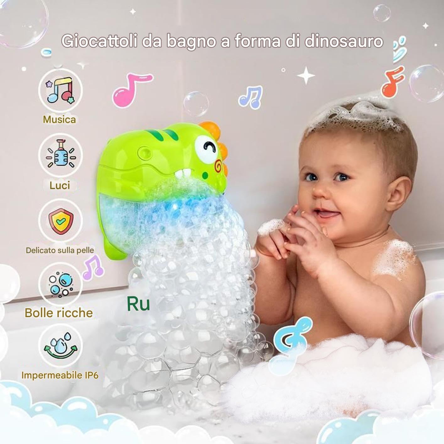 Stimolazione Sensoriale Completa: Scopri modalità versatili, tra cui luci fresche con suoni, funzionalità solo luci e impostazioni luci più musica, create per offrire un'arricchente stimolazione sensoriale durante il bagnetto. Costruzione : Tre potenti ventose assicurano stabilità, struttura ABS ispessita unisce materiali sicuri e resistenti con bordi perfettamente levigati per un'esperienza senza preoccupazioni durante il bagnetto del bebè Giocattolo sicuro: Prodotto specifico per bambini 1-3 anni, caratterizzato dalla simpatica forma di dinosauro e tonalità brillanti, rappresenta un accessorio da bagno migliorato che intrattiene piacevolmente i più piccoli Ottima Idea Regalo: Arricchisce il bagno con giocattoli intrattenenti, doppia funzione come regalo per Natale e compleanni che ispira serenità nelle consuete routine di igiene Maneggevolezza: Grazie al controllo a un pulsante, pompa 'aria removibile e membrana impermeabile, questo giocattolo da bagno assicura prestazioni affidabili con facilità d'impiego