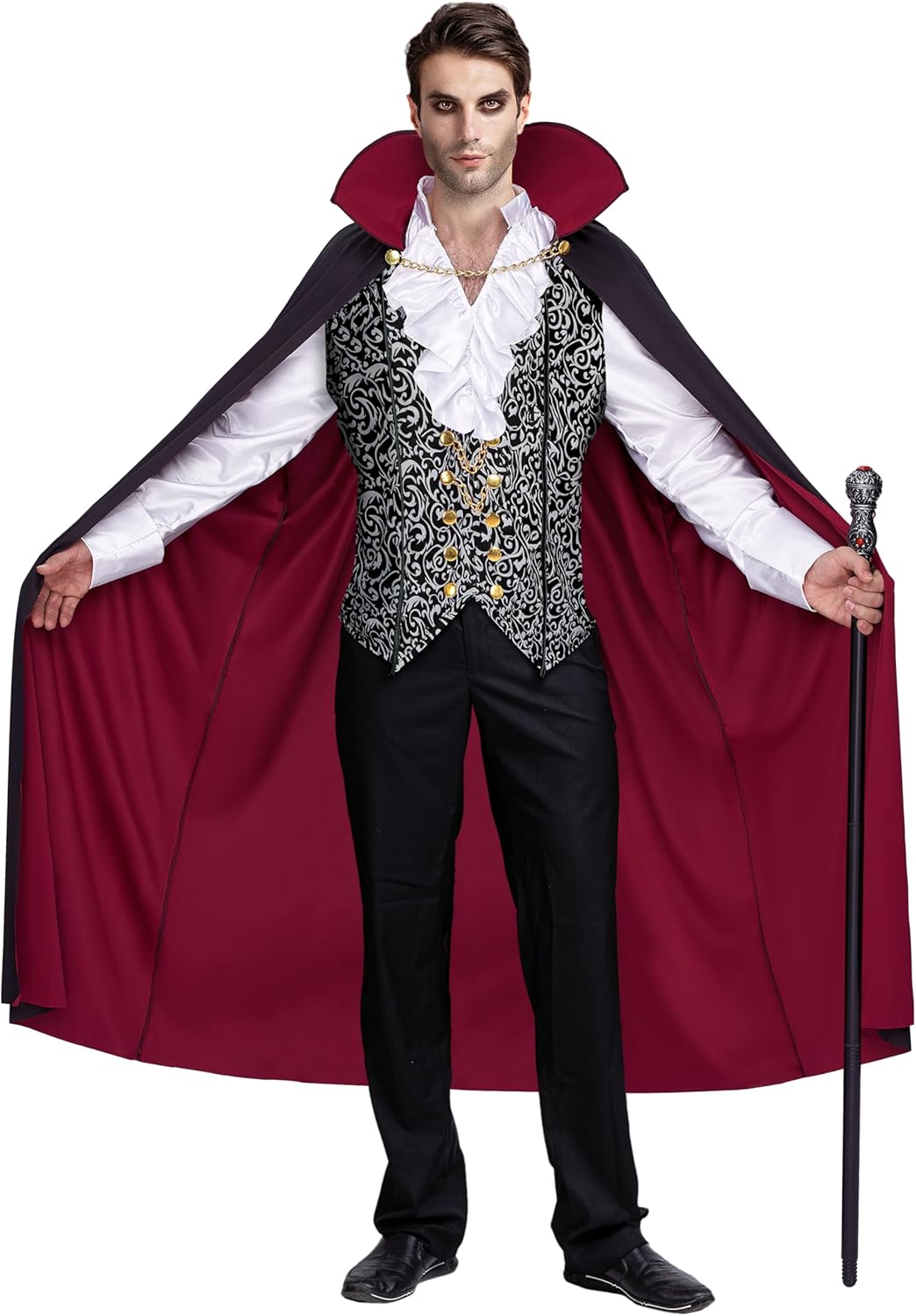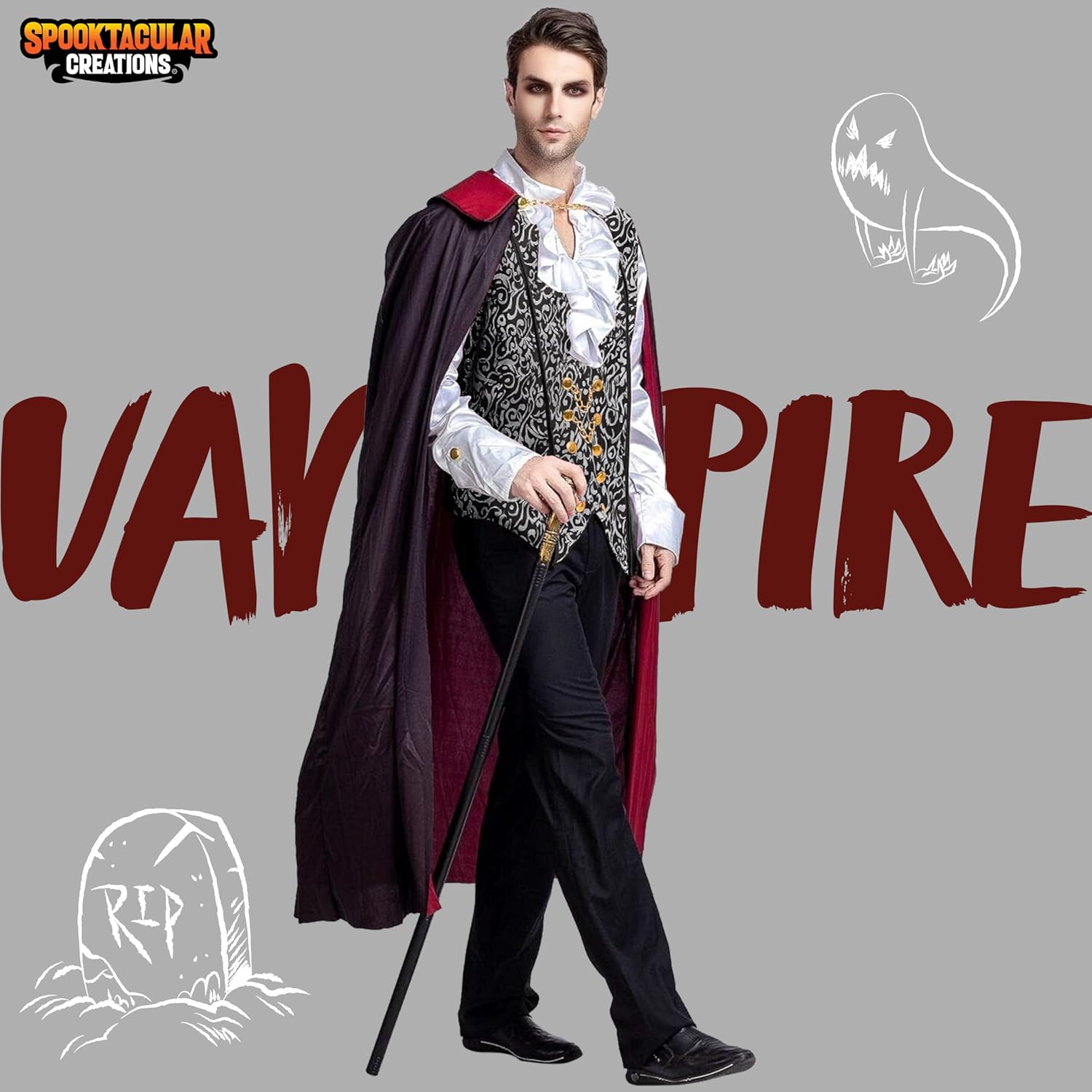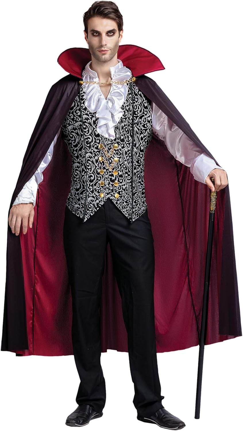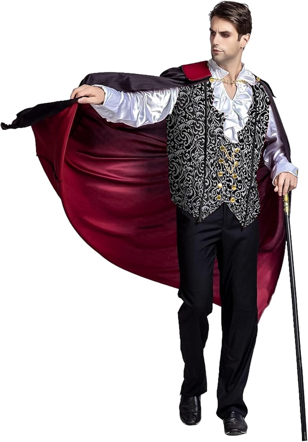 Creazioni spettrali Costume da vampiro spaventoso medievale rinascimentale Argento Deluxe da uomo Gioco di ruolo Sins CosplayCool Costume da vampiro gotico vittoriano da uomo include camicia con gilet da vampiro vintage e jabot attaccati, mantello con colletto marrone in piedi e bastone da vampiro. Costume da vampiro reale gotico, edoardiano per uomo. Body super resistente e facile da allungare. La migliore qualità. 100% poliestere. Pacchetto di qualità premium per giochi di ruolo. Meraviglioso per feste cosplay di Halloween, festival, costumi per feste a tema Dracula, costume da vampiro sexy, costume della Transilvania, costume di Broadway, costume gotico, costume da conteggio, spaventoso costume da vampiro pipistrello gotico, costume da squartatore, costume da vampiro ragazzo, costume da vampiro adolescente, costume da festa cosplay di Twilight. , Costume, spaventosi costumi di Halloween del signore medievale per adulti e altro ancora. Costume classico di Dracula dall'aspetto realistico. Lavare a mano in acqua fredda. Asciugare all'aria. Non diluire. Costume di Halloween unico e facile da indossare. Taglia: M (media), L (grande) e XL (X-grande). Assicurati di fare riferimento alla tabella delle taglie per una vestibilità corretta.