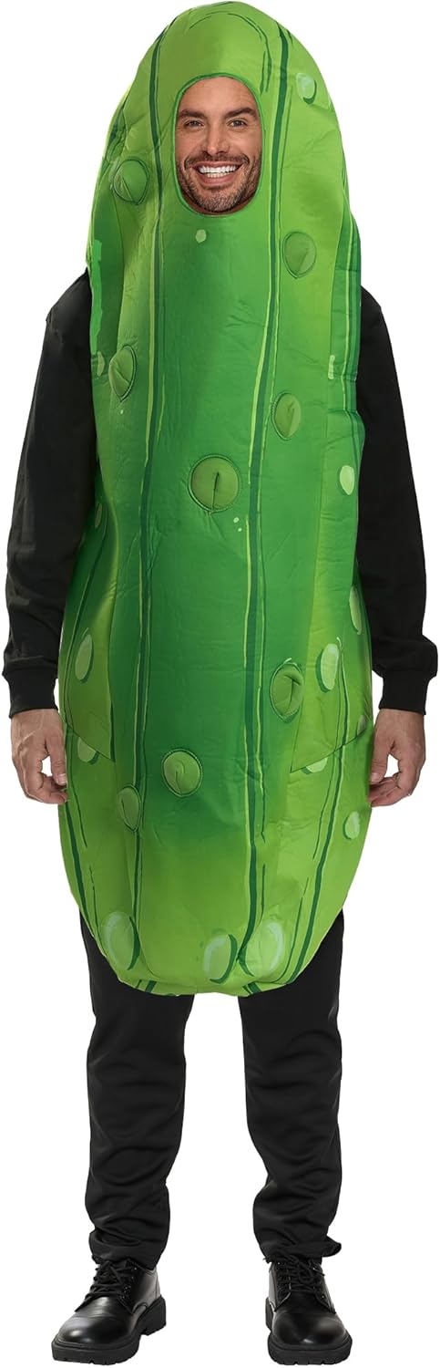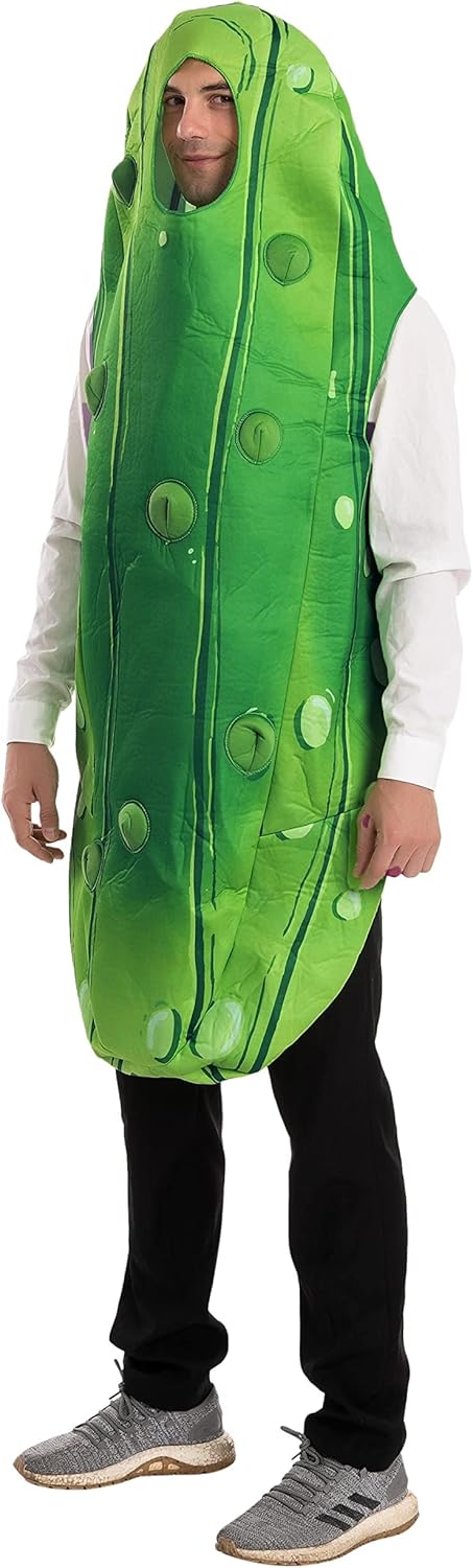 I bought this pickle costume for my son, and it fits perfectly. It’s exactly what I wanted—comfortable, funny, and well-made. The material is lightweight and easy to wear, perfect for Halloween or cosplay. It looks just like the pictures and got lots of laughs. My son loved it, and everyone thought it was hilarious!