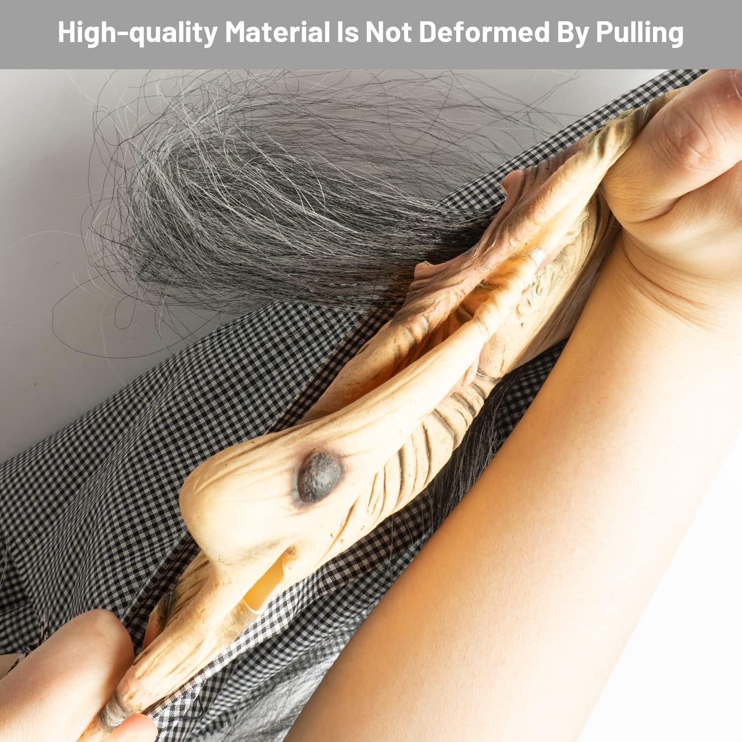 It was so realistic I scared the kids as well as the parents.witches voice,black dress really finished the look off.my family want one now.