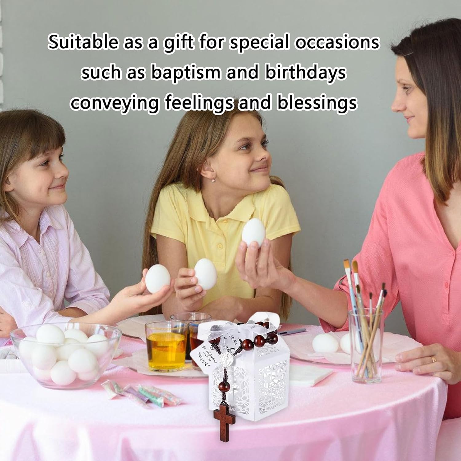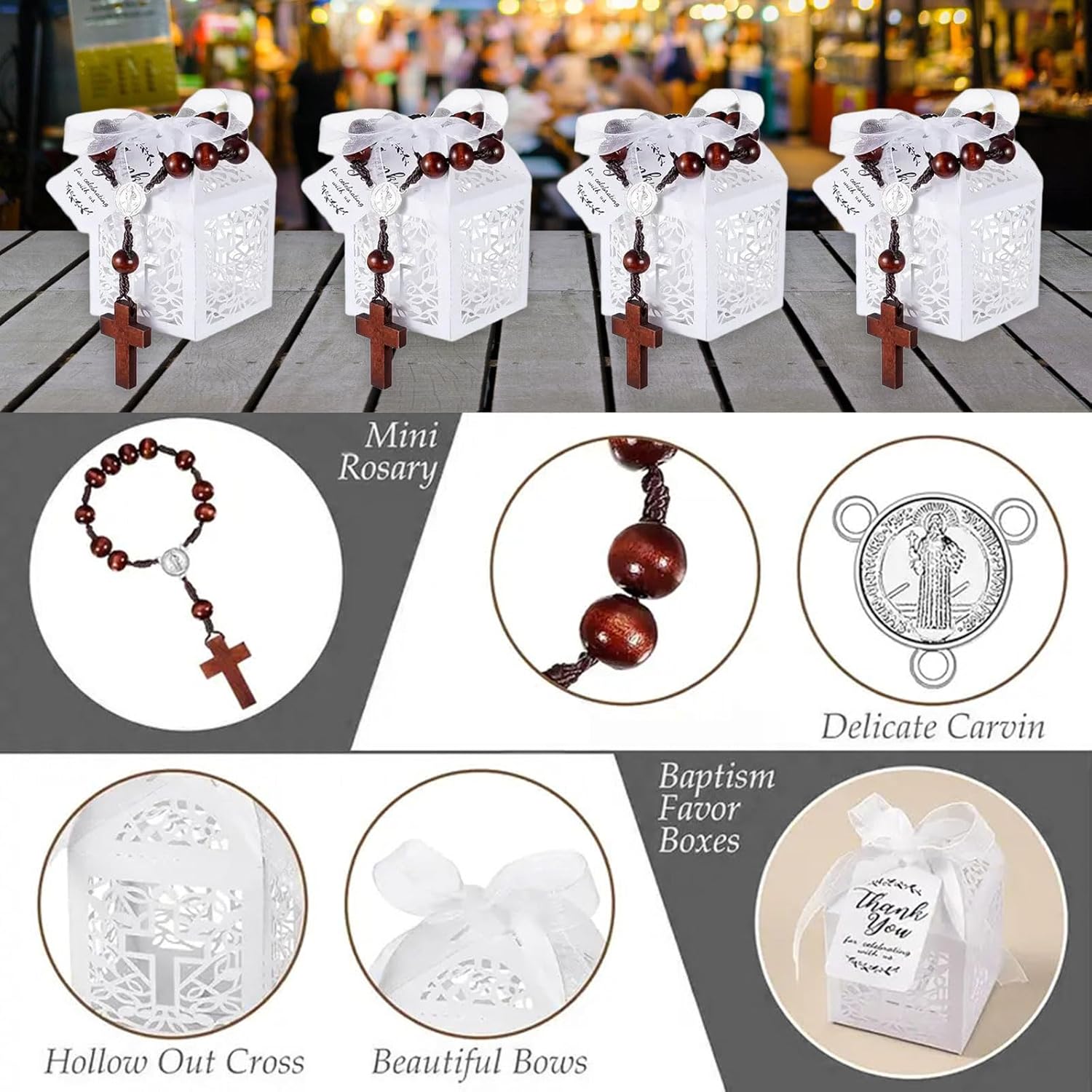 Adatto alle persone che frequentano le cerimonie dei battesimi o cercano un regalo speciale per i per i loro compleanni o eventi speciali Questi set possono indossare durante la cerimonia dei battesimi o come accessori quotidiani, aggiungendo un tocco carineria all'outfit del bambino. La scatola splendidamente confezionata è conveniente per trasporto e la conservazione delicato pattern croci, perle legno e imballaggi pronti per regalo qualità (scatola carta Hollowout, buste organza, carta ringraziamento) accessori spirituali significativi Le perle legno artigianali incrociano i braccialetti che combina un comfort leggero con simbolismo religioso, presenta materiali naturali e un design intricato Ideale per i credenti cristiani che celebrano i battesimi, le conferme o i devozionali quotidiani, questi braccialetti unisex servono come ringraziamento personalmente e un dono religioso
