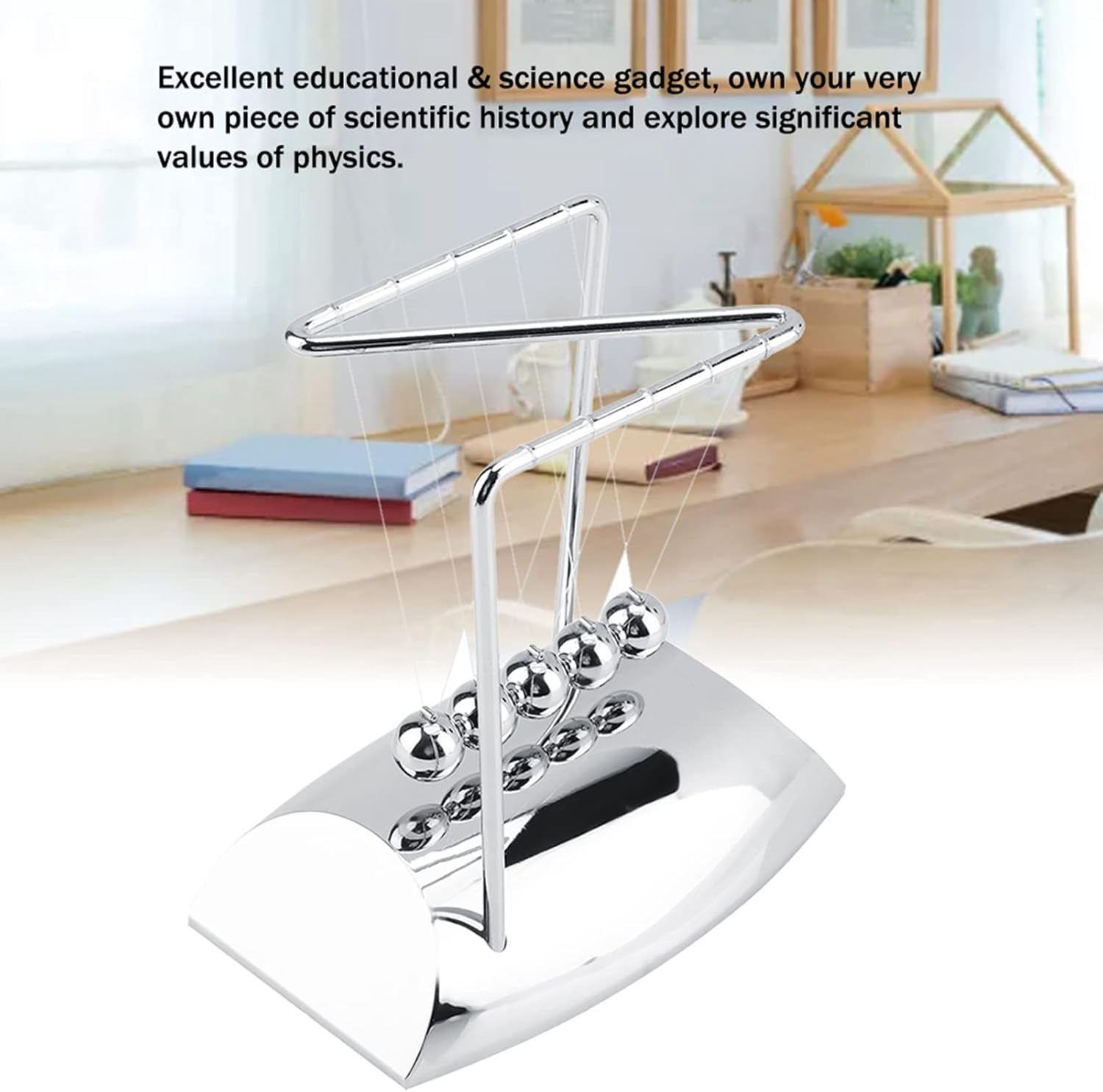Tira indietro una o più sfere di equilibrio, rilasciale e lo stesso numero di sfere si solleva sul lato opposto. Giocattoli scientifici. Quando sei stanco di studiare e lavorare, puoi mescolare le palline per sentire il tintinnio e rilassarti. Ideale per la decorazione della casa, studio o scrivania, decorazione della tavola, ecc. Ottimo anche come regalo di compleanno e giocattolo per bambini. Ottimo gadget educativo. Non solo dimostra un pendolo, ma mostra anche le leggi di conservazione della quantità di moto e dell'energia. Eccellente dispositivo scientifico e di apprendimento, possiedi il tuo pezzo di storia della scienza ed esplora valori significativi della fisica.