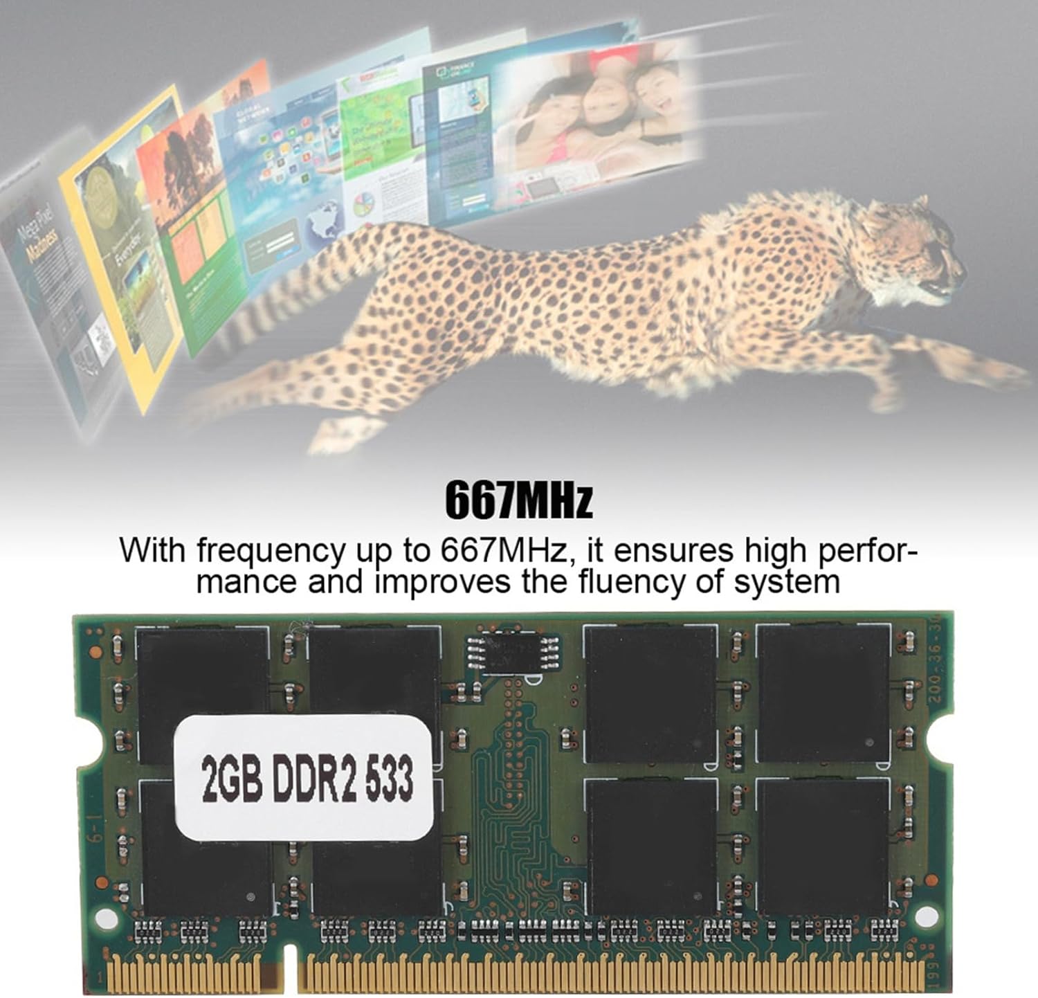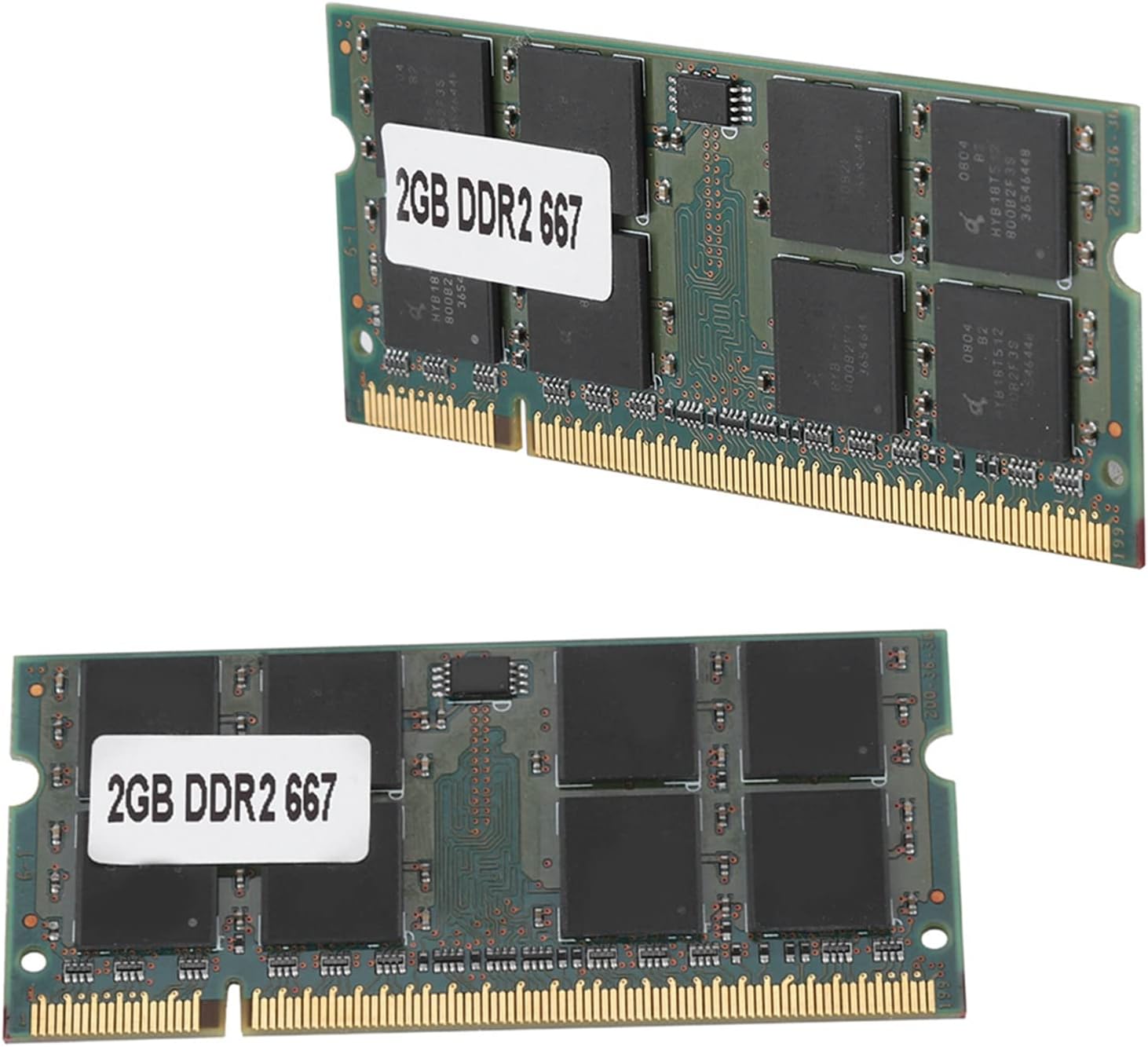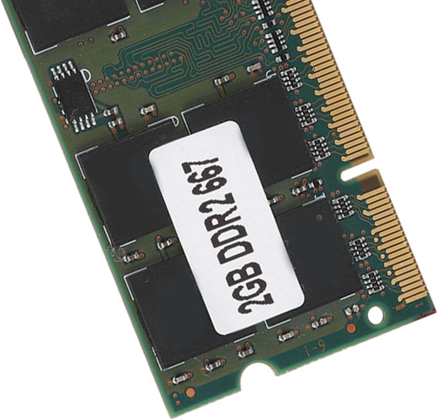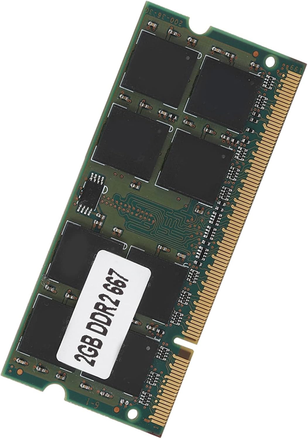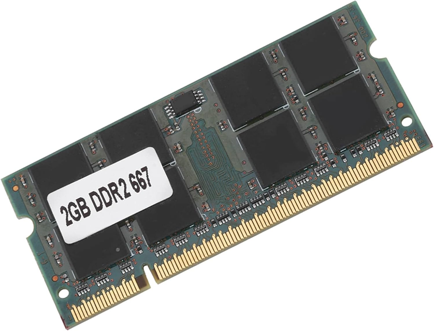2 GB - La grande capacità offre prestazioni potenti e spazio di archiviazione per la lettura e la scrittura quotidiana. Chip integrati di alta qualità per prestazioni stabili e funzionamento ad alta velocità. La memoria del notebook è progettata per laptop DDR2 PC2-5300 ed è adatta per la scheda madre /. Con frequenza fino a 667 MHz, garantisce elevate prestazioni e migliora la fluidità del . Scheda del modulo di circuito di alta qualità, che evita efficacemente la corrosione e l'usura, durevole e facile da trasportare.