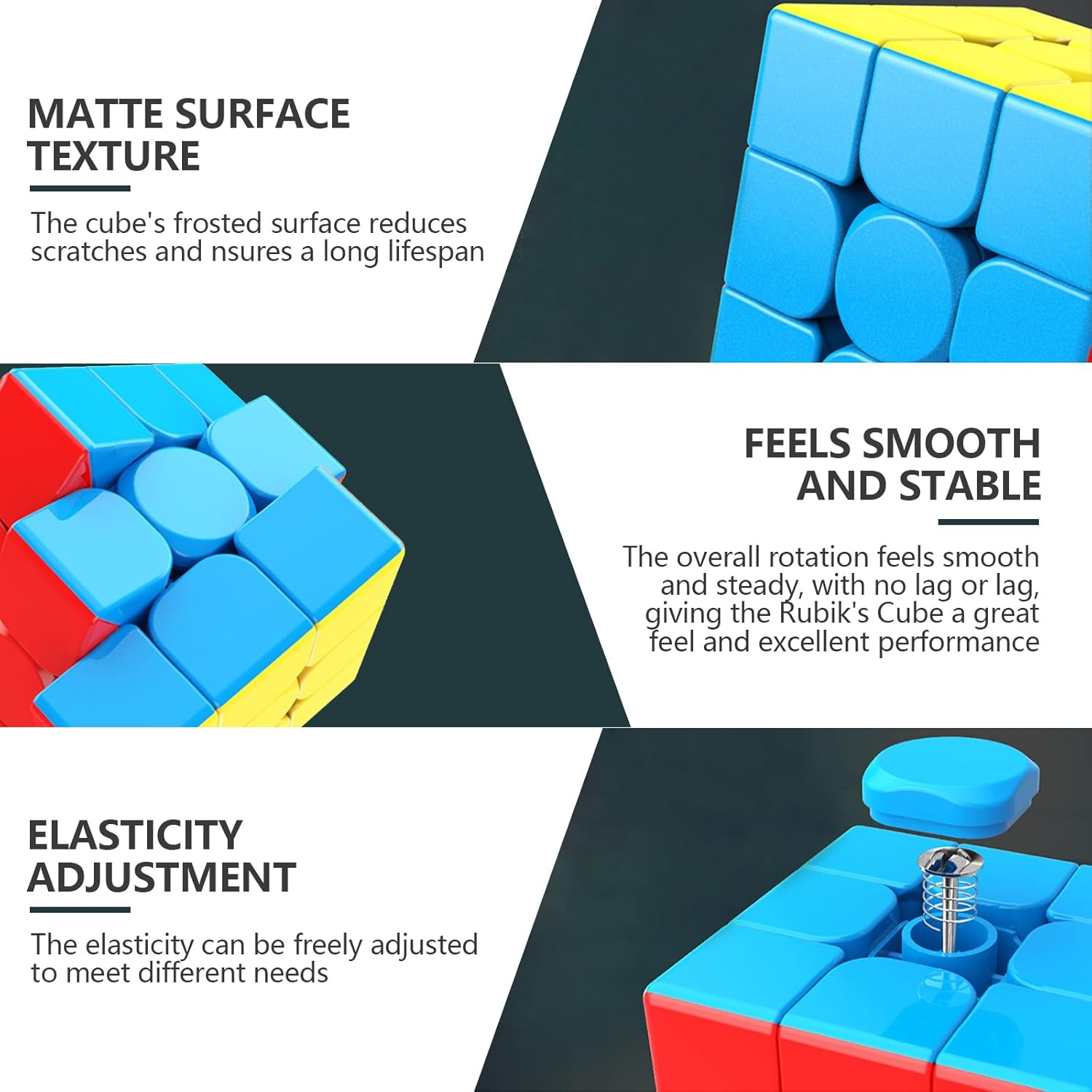 【Qualità di Livello Professionale】Cubo di rubik è realizzato in plastica ABS ecologica ad alta resistenza, con una struttura stabile, resistente a cadute e forgiatura e un design con scanalature antiaderenti. Il sistema di morso di precisione interno di cubo di rubik 3x3, combinato con una precisa tecnologia di posizionamento magnetico, consente una rotazione fluida e senza ostacoli, ideale per giocatori di corse e professionisti. 【Flessibilità】Cubo di rubik professionale è dotato di un sistema di regolazione elastica brevettato integrato, che consente di regolare liberamente la tenuta e la forza di rimbalzo di cubo rubik in base alle proprie abitudini di mano. Che tu sia un maestro di speedscrew alla ricerca di velocità estreme o un giocatore alle prime armi che preferisce una sensazione morbida, troverai l'esperienza operativa più adatta a te. 【Durevole e Resistente】Speed cube adotta un classico design con angoli arrotondati e una struttura interna di livello professionale per ridurre efficacemente l'attrito e gli inceppamenti durante la rotazione, ed è silenzioso e fluido durante la rotazione. Rubik cube è stato testato per decine di migliaia di rotazioni e il rivestimento resistente all'usura ne impedisce l'usura durante l'uso prolungato, mantenendo una sensazione di morbidezza costante. 【Puzzle Game】Il cubo di rubik ha 6 facce colorate, contenenti 432,5 trilioni di combinazioni. Ogni ripetizione è un allenamento profondo del pensiero spaziale, del ragionamento logico e della coordinazione occhio-mano. Speed cube può stimolare il potenziale illimitato del cervello, sia per esercitare la concentrazione che per coltivare la pazienza. 【Regalo Ideale】Cubo di rubik magnetico è adatto per l'allenamento pre-partita, le competizioni quotidiane, i regali di compleanno e i regali di Natale. Può rilassare rapidamente il cervello teso e ripristinare l'energia. Cubo di rubik può trasmettere pensieri di alta qualità, sia che si tratti di un puzzle regalo per studenti, di un oggetto interattivo per le riunioni tra amici o di un artefatto di decompressione sul posto di lavoro.