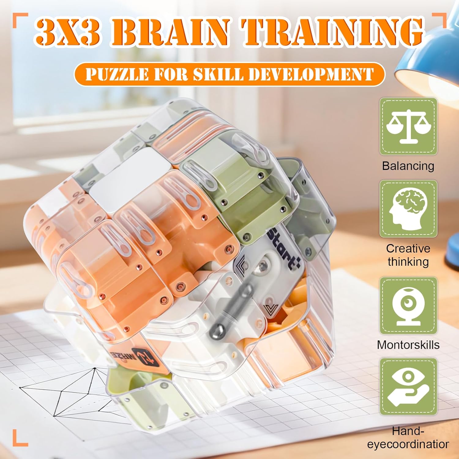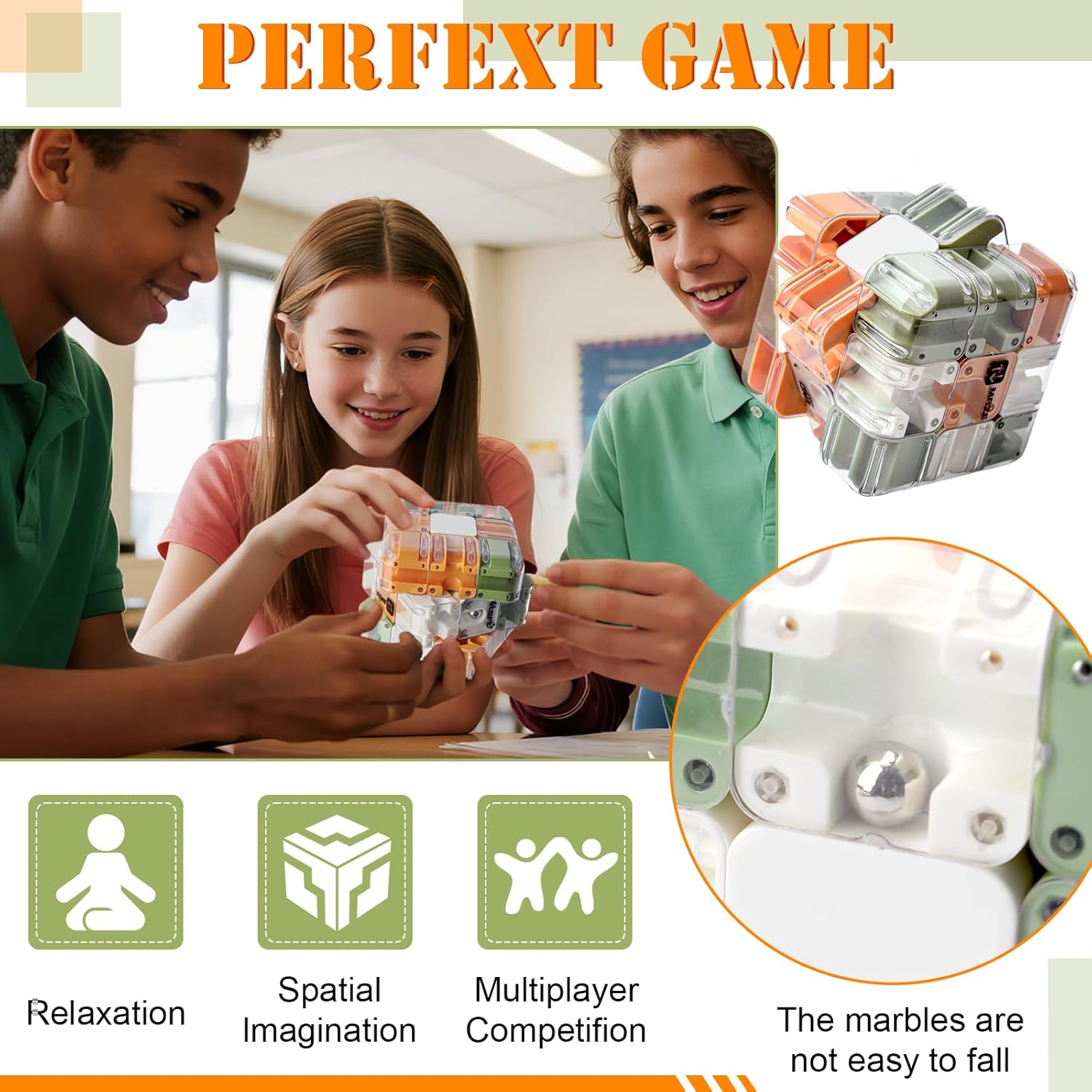 【Doppia sfida】 Questo cubo labirinto 3D combina il classico gameplay del cubo rotante con un'entusiasmante sfida del labirinto, offrendo un'esperienza di gioco puzzle avvincente. È pensato per bambini dagli 8 anni in su e, grazie alle sue dimensioni ergonomiche, è facile da maneggiare, sia per il gioco occasionale che per la risoluzione concentrata di enigmi. 【Sviluppo cognitivo】 Essendo un gioco di pensiero avvincente per adulti e bambini, devi guidare la sfera d'acciaio attraverso un labirinto interconnesso a sei lati. Ogni lato nasconde percorsi complicati. Ruotando e regolando l'angolo del cubo, affinerai la tua consapevolezza spaziale, il pensiero logico e le capacità di risoluzione dei problemi mentre ti impegni con questo cubo puzzle labirinto 3D. 【Sistema di dadi sicuro】 Con un coperchio di chiusura robusto e trasparente che garantisce che la sfera d'acciaio rimanga saldamente nel cubo anche se scossa violentemente o lasciata cadere accidentalmente. L'involucro trasparente consente una chiara osservazione dei percorsi interni del labirinto gravitazionale, consentendoti di seguire facilmente il movimento della sfera d'acciaio nel cubo del labirinto puzzle 3D e di concentrarti ininterrottamente sulla risoluzione del puzzle. 【Divertimento interattivo per tutta la famiglia】 Il meccanismo di rotazione regolare cambia la struttura interna del labirinto ad ogni giro, creando sfide puzzle 3D infinitamente varie. Da soli, con la famiglia o in competizione con gli amici, questo cubo labirinto puzzle fa ridere e rafforza i legami emotivi, rendendolo un passatempo popolare per riunioni o serate di gioco in famiglia. 【Regalo a sorpresa】 Questo cubo magico è molto più di un semplice puzzle 3D; funge da rompicapo per tutte le età e fornisce sollievo dallo stress sia per i bambini che per gli adulti. È un regalo ideale per il compleanno dei bambini, Natale o viaggi ed è particolarmente adatto come regalo per adolescenti.