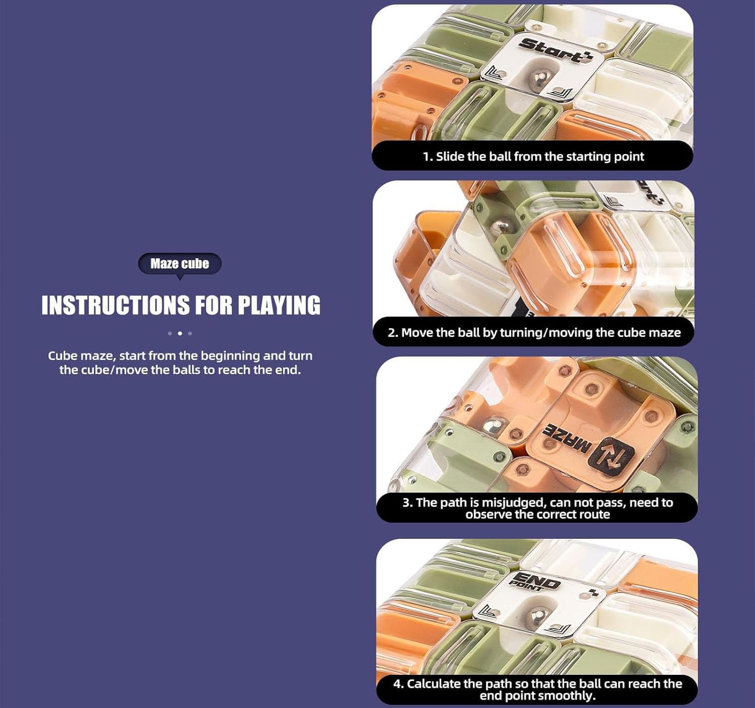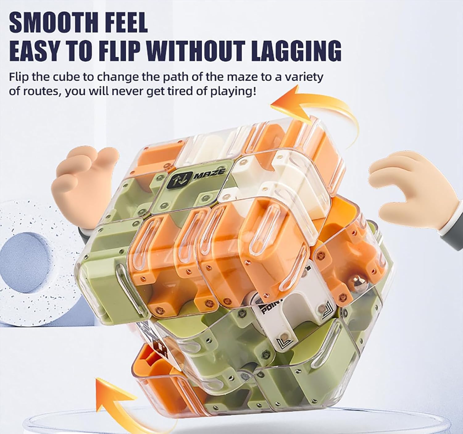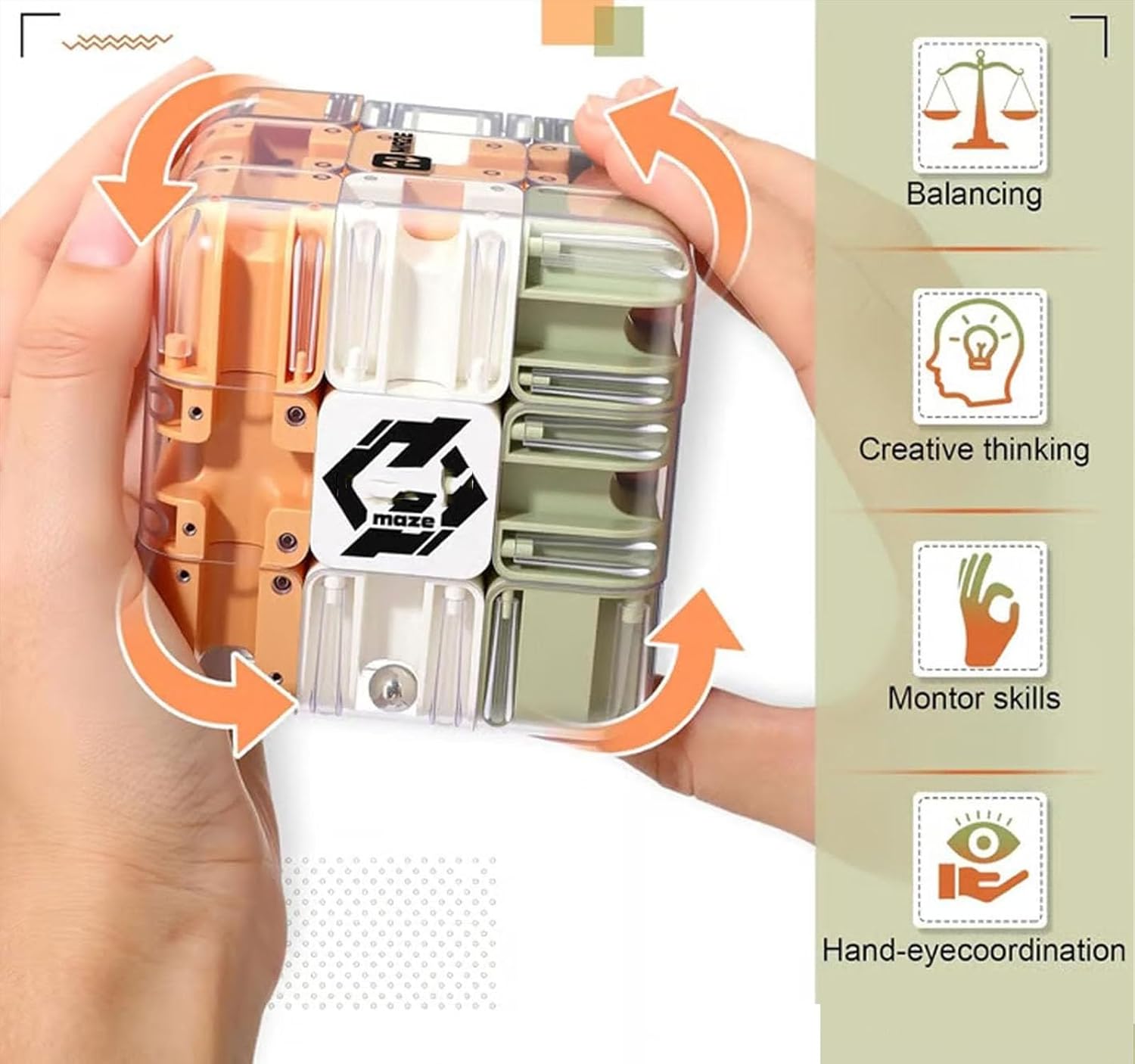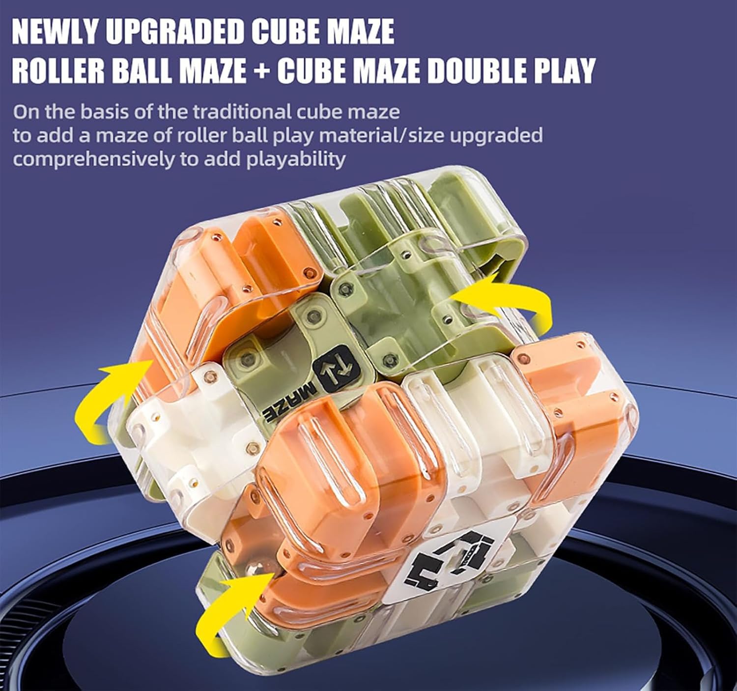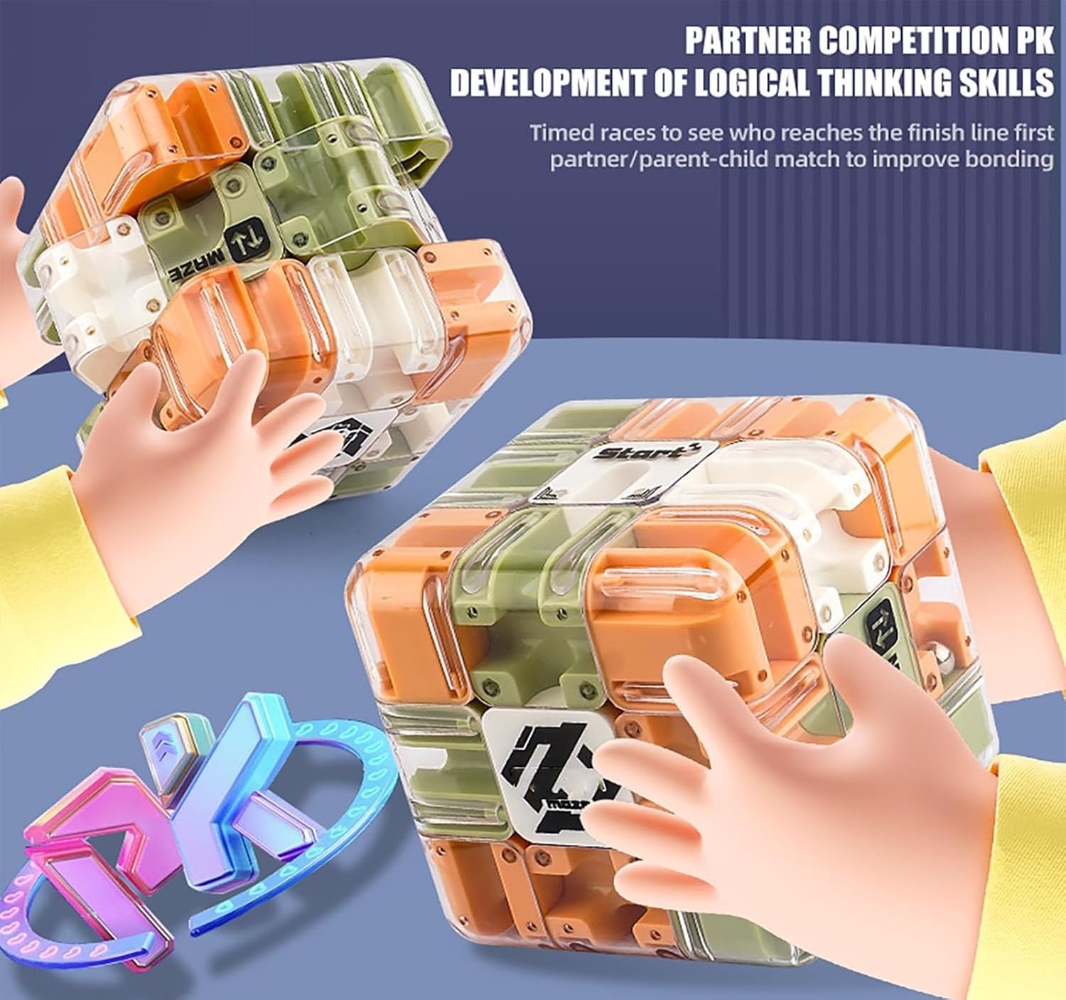 [Design puzzle due in uno] mescola la classica torsione del cubo con sfide di labirinti con palline, realizzati in plastica resistente e dimensioni confortevoli per l'uso quotidiano. Facile da impugnare e dura a lungo. [Aumenta la tua potenza cerebrale] Sposta le perline su 6 lati per migliorare le abilità logiche e il senso dello spazio. Ti aiuta a pensare più velocemente e a gestire lo stress mentre risolvi enigmi a tempo. [Modalità Sfida Famiglia] La rotazione fluida ti consente di creare nuovi percorsi labirintici ogni volta. Gareggia contro amici o familiari per creare legami attraverso emozionanti battaglie cerebrali. [Sistema No-Lose Ball] Il coperchio Clear Lock mantiene la palla sicura durante i movimenti veloci. Concentrati sul gioco senza preoccuparti di far cadere i pezzi. [Costruzione sicura e resistente] giunti resistenti testati sopravvivono a cadute e urti. Ideale per compleanni, Natale, bomboniere o giochi da scrivania