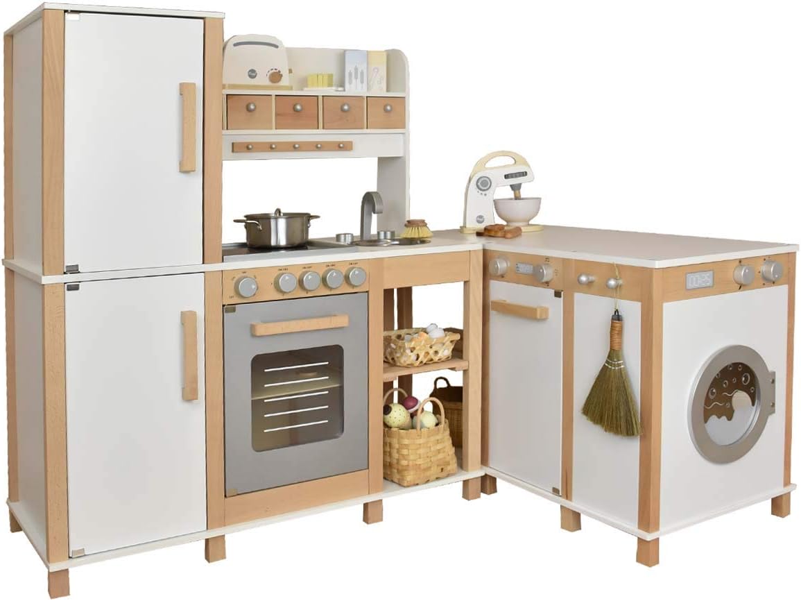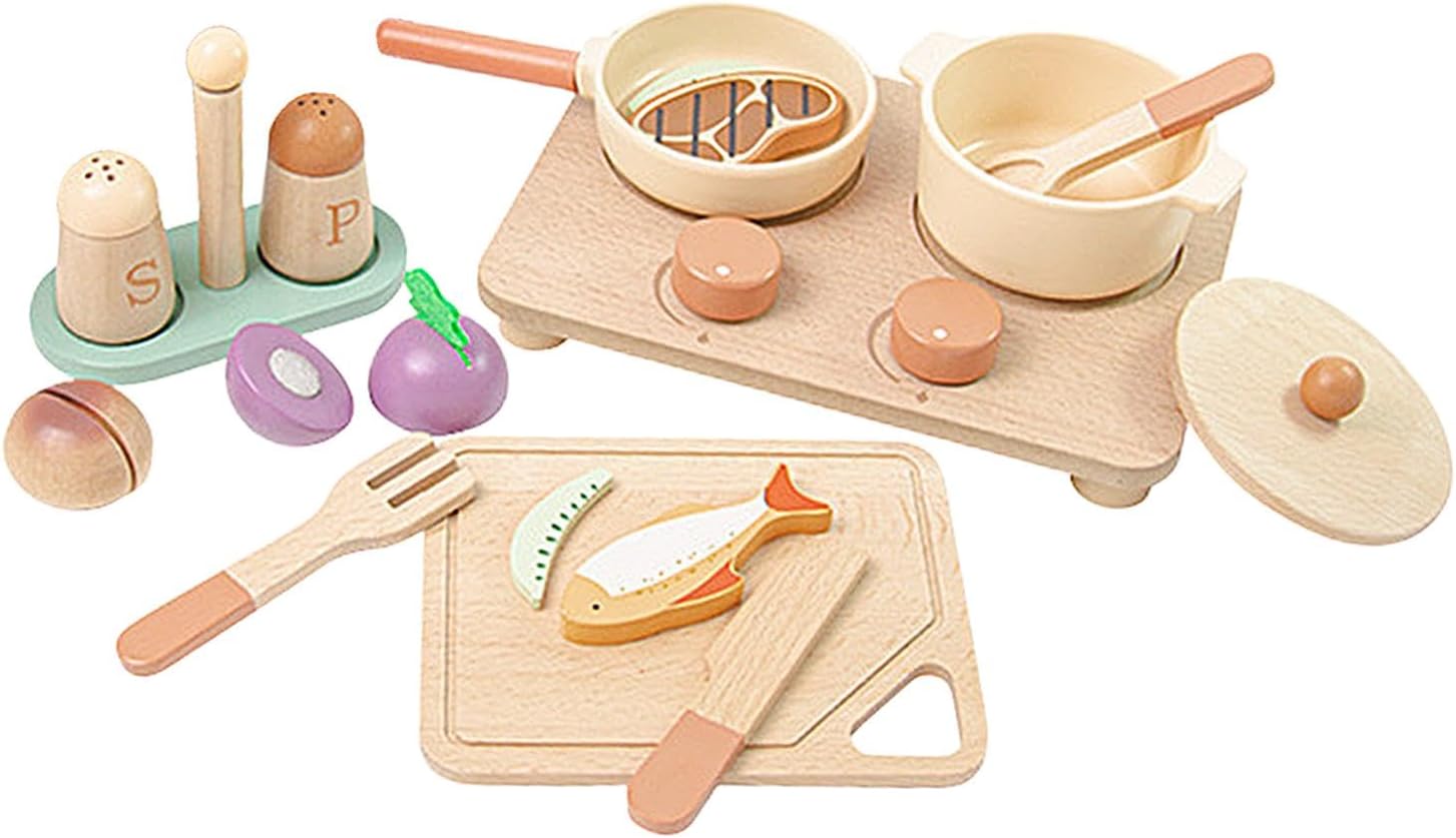 【Scelta regalo】: il set di accessori da cucina per bambini è una scelta regalo per bambini, , ragazzi e ragazze 【Set da gioco da cucina】: giocattoli da cucina finti, inclusi stoviglie e modelli di cibo da cucina, come bistecche, uova, pesce per migliorare l'esperienza di gioco in cucina 【Sviluppo e abilità fini】: Attraverso il set da gioco di giocattoli in legno da cucina, i bambini possono imparare a cucinare, esercitare abilità pratiche e capacità motorie fini 【Gioco di ruolo interattivo】: i bambini possono giocare con il set di cucina finta con la famia o amici, giocare di ruolo, re le abilità sociali e le abilità culinarie di base 【Istruzione】: il set di giocattoli da cucina simulati aiuta il bambino a comprendere utensili da cucina e le sue capacità cognitive