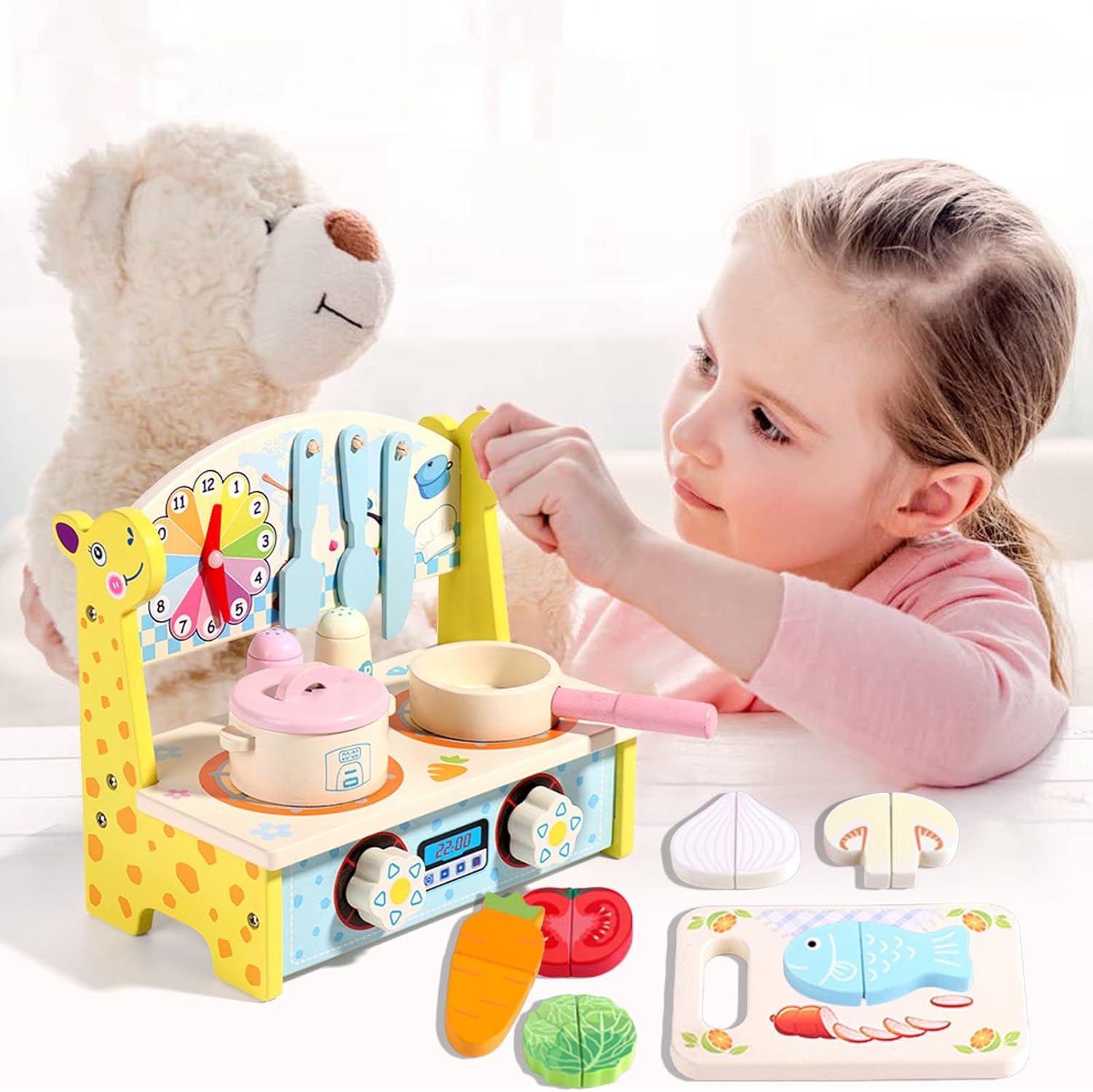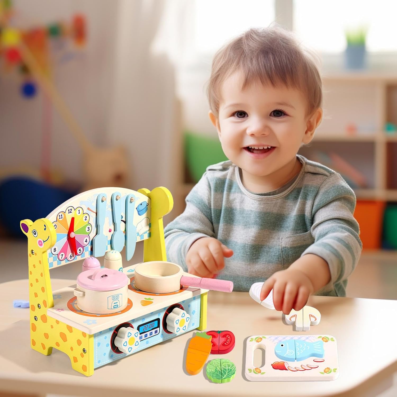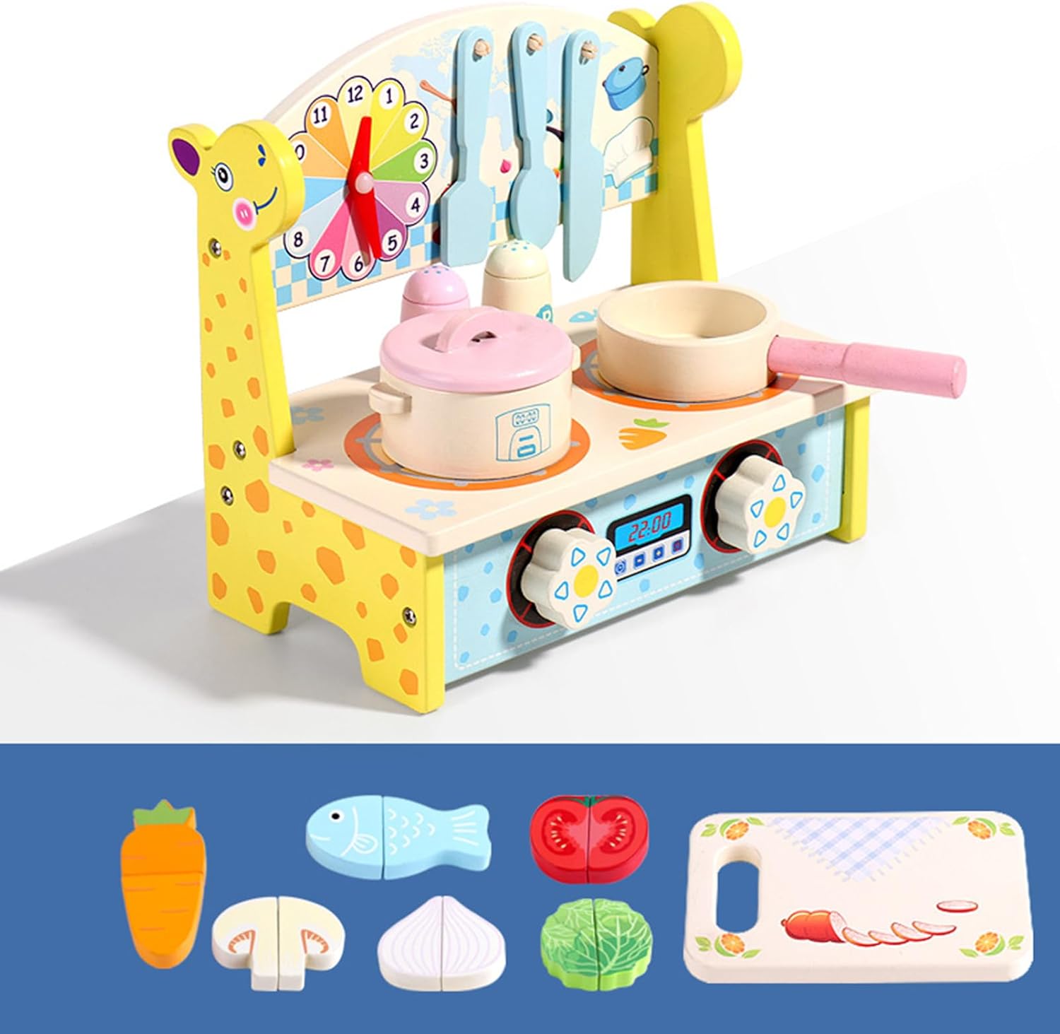 Incoraggia il gioco fantasioso: un gioco multifunzionale consente ai bambini di vivere autentiche avventure culinarie, scatenare più gioia e sviluppare abilità e abilità pratiche con utensili realistici e giochi con il cibo Costruzione robusta: realizzata con materiali in legno perfetti con bordi lisci e un design sicuro che offre una buona sostenibilità e garantisce la sicurezza dei bambini per un allenamento di gioco coinvolgente e riproducibile Migliora le capacità cognitive: con un orologio e un personaggio digitale, questa serie di giochi di cucina è nutriente per i bambini con pensiero strategico, capacità di risoluzione dei problemi e gestione del tempo, che facilita l'apprendimento attraverso la cucina simulazioni Carino e divertente: con la sua forma di giraffa, la corrispondenza di colori vivaci e un design dall'aspetto raffinato, questo gioco di cucina per bambini cattura e attira l'attenzione dei bambini e migliora notevolmente il godimento del tempo di gioco. Intrattenimento versatile: incoraggia la creatività e l'immaginazione, questo set da cucina compatto e leggero è adatto per l'intrattenimento domestico a casa, nelle scuole materne e negli istituti educativi della prima infanzia. Migliora l'apprendimento e il gioco interattivo
