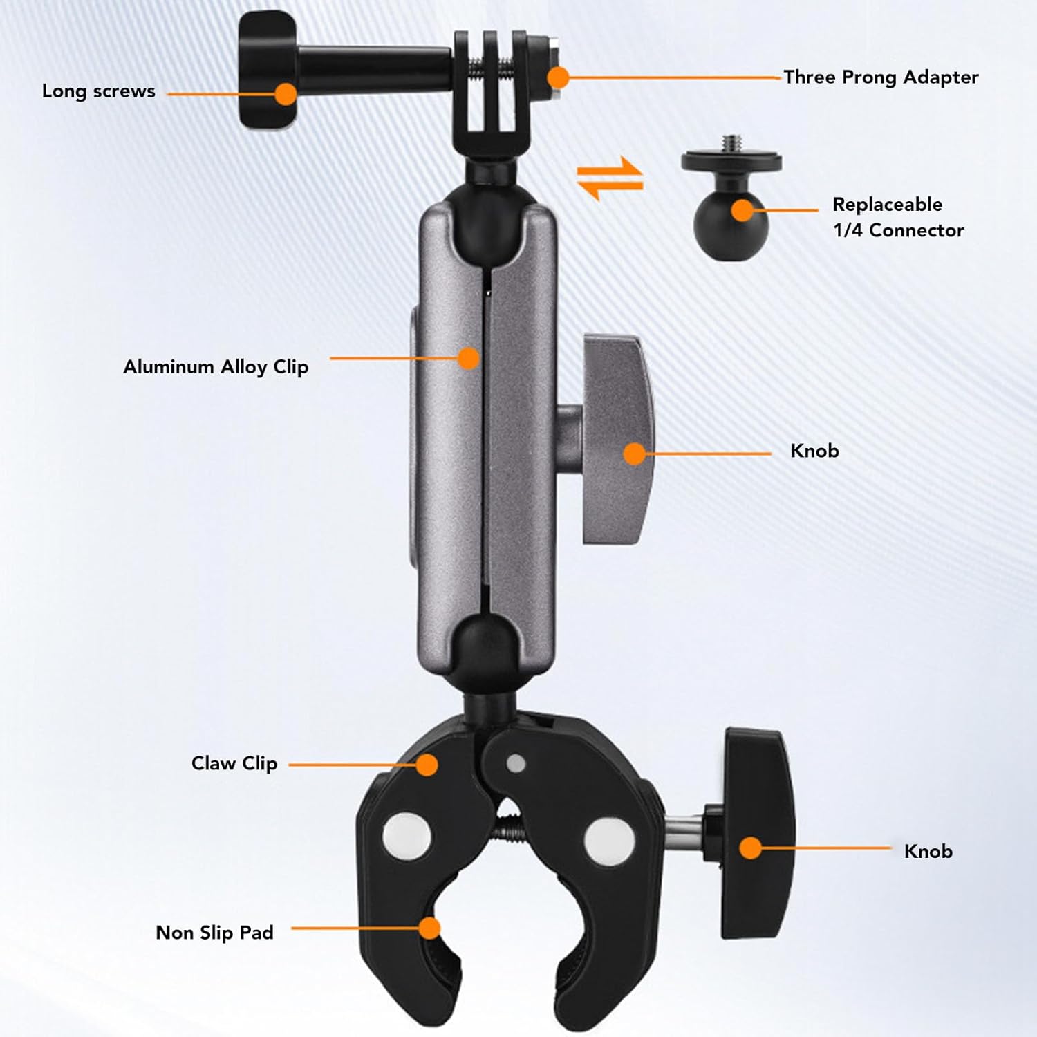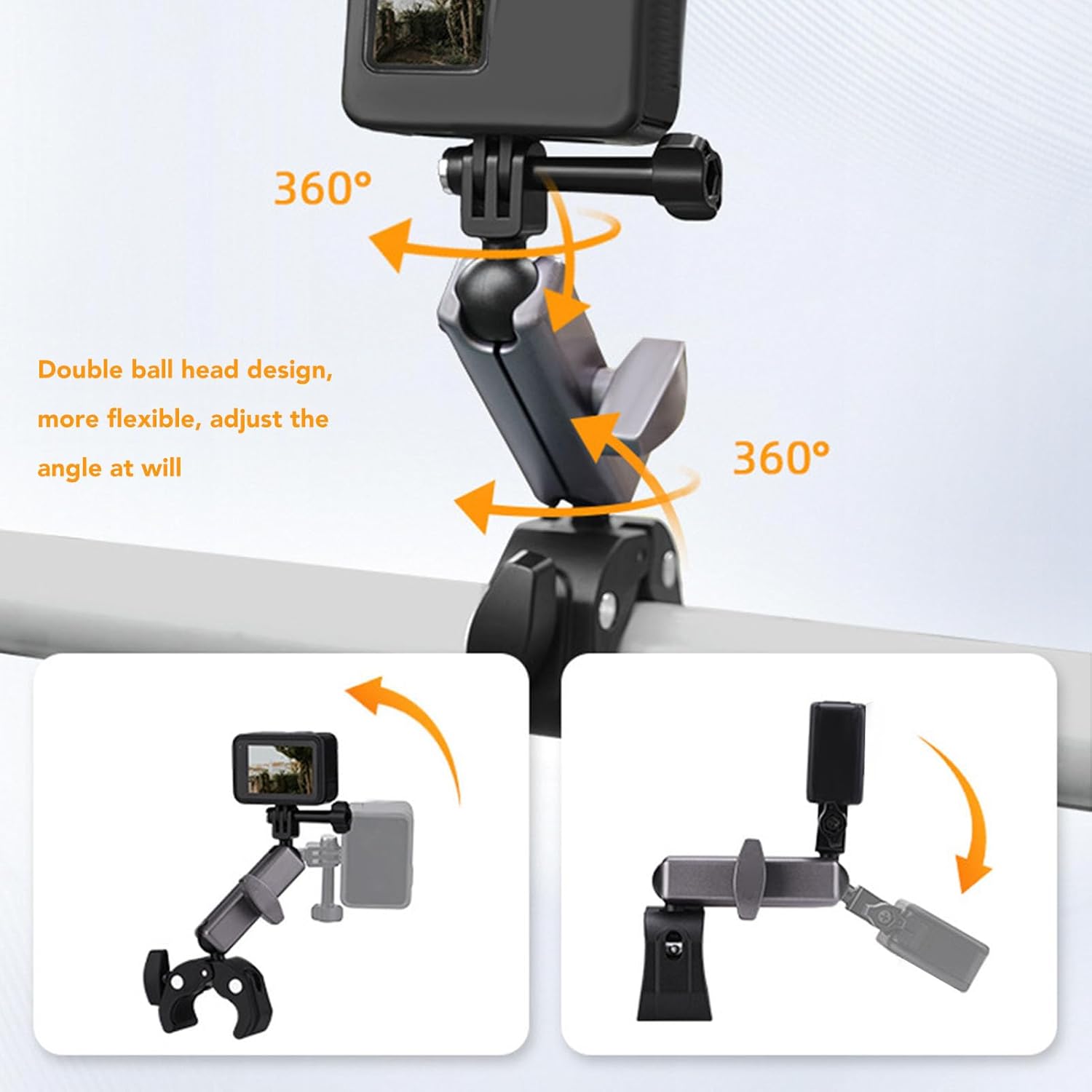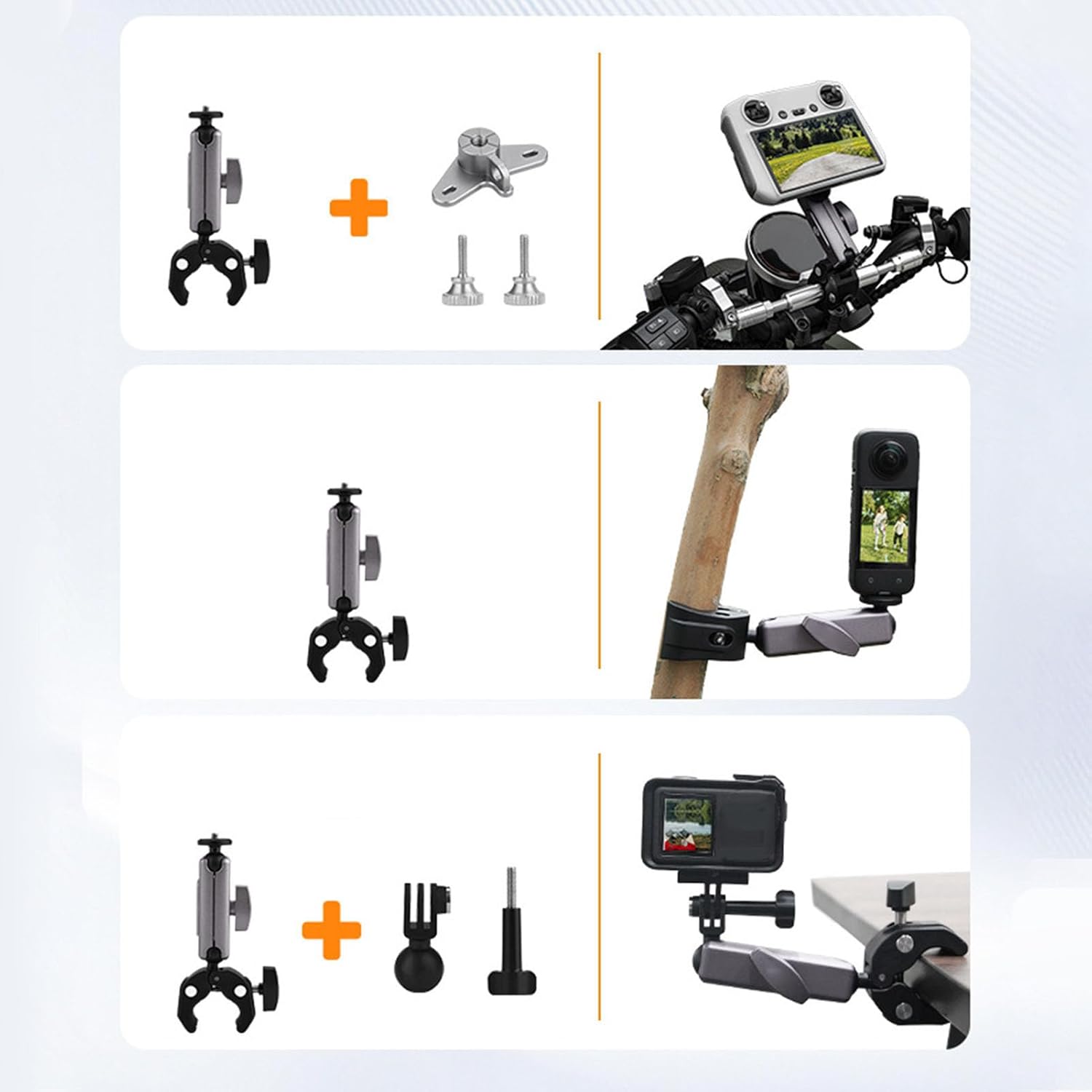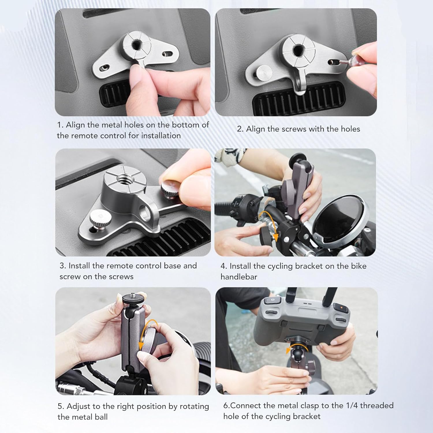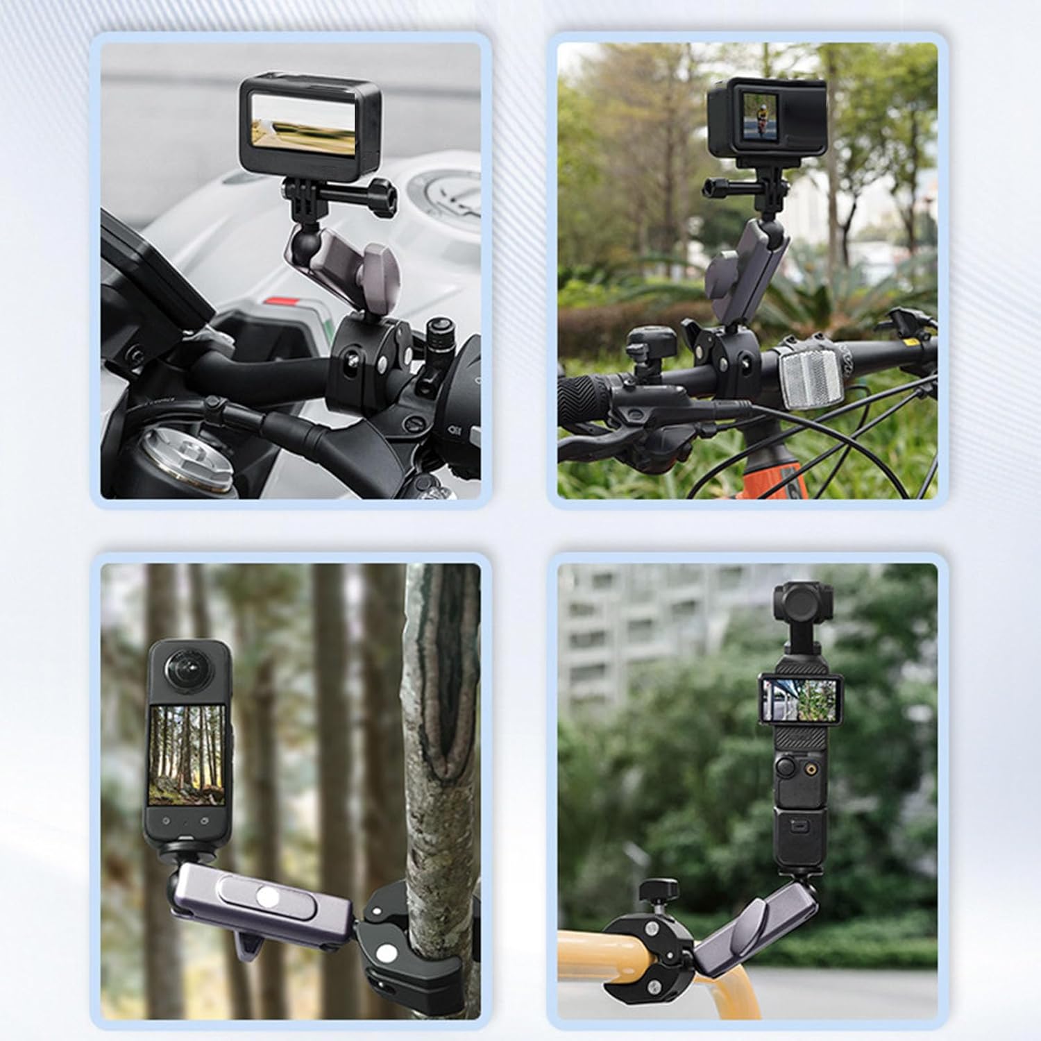 [Ampia compatibilità dei modelli] Adatto a vari modelli, questo supporto per bici può bloccare dispositivi che vanno da 2 cm a 5 cm. goditi una soluzione di montaggio e stabile per il tuo telecomando o fotocamera. [Supporto fotocamera adattabile] Questo kit include un adattatore per connettersi a fotocamere come Action 4. Può collegare sia telecomandi per droni che action camera per un uso versatile. [Supporto versatile per telecomando] La chiusura in metallo presenta due posizioni dei fori per le viti, garantendo stabilità per i telecomandi rc rc2. il design del morsetto sicuro mantiene i tuoi dispositivi al sicuro. [Costruzione durevole] Realizzato in lega di alluminio e materiali ABS, questo supporto offre elevata resistenza e durata. supporta saldamente il telecomando o la fotocamera, garantendo un'esperienza . [Regolazione flessibile 'angolo] Con un design a doppia testa a sfera, la staffa consente una facile regolazione 'angolo. puoi personalizzare l'angolazione per soddisfare facilmente le tue esigenze specifiche.