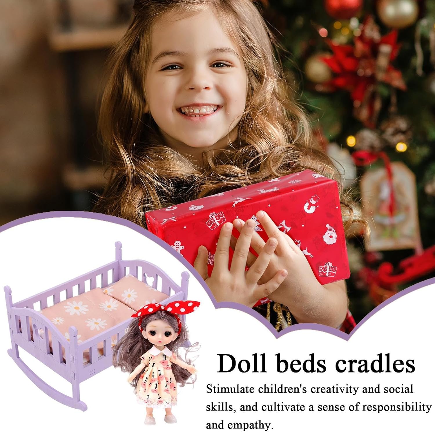 Finitura squisita: le superfici lucide e il materiale naturale a contatto morbido assicurano una texture raffinata che è con le mani piccole, migliorando la sicurezza e il comfort durante le sessioni di gioco fantasioso con bambole bambino. Protezione senza rischi: realizzata con una costruzione che previene gli urti, questa culla per bambole offre una durata strutturale stabile e migliora la protezione sicura, incoraggiando il gioco di ruolo creativo senza interruzioni da danni accidentali nell'uso quotidiano Set mini mobili camera da letto: Funziona come set di mini mobili da camera da letto, offrendo opportunità di partecipare a set di giochi simbolici realistici che incentivano l'empatia e migliorano le abilità sociali creando un'atmosfera coinvolgente per narrazioni fantasiose Funzionalità complete: con il supporto per set di giochi simbolici, ispira la collaborazione multiplayer, migliora l'interazione tra pari e arricchisce le storie di ruolo, offrendo una piattaforma coinvolgente per avventure condivise ed esperienze di gioco developmental Design salvaspazio: progettato per incoraggiare le abitudini di gioco, questa culla per bambole combina una struttura leggera e uno stoccaggio durevole, consentendo una pulizia rapida e un'organizzazione efficiente dei giocattoli per un'esperienza di gioco conveniente