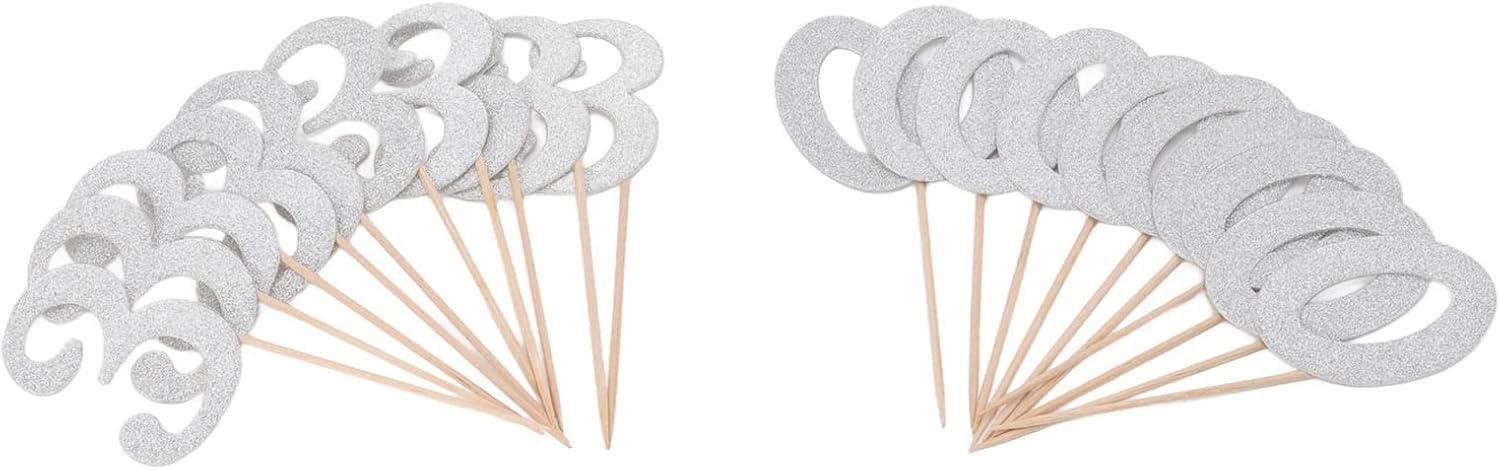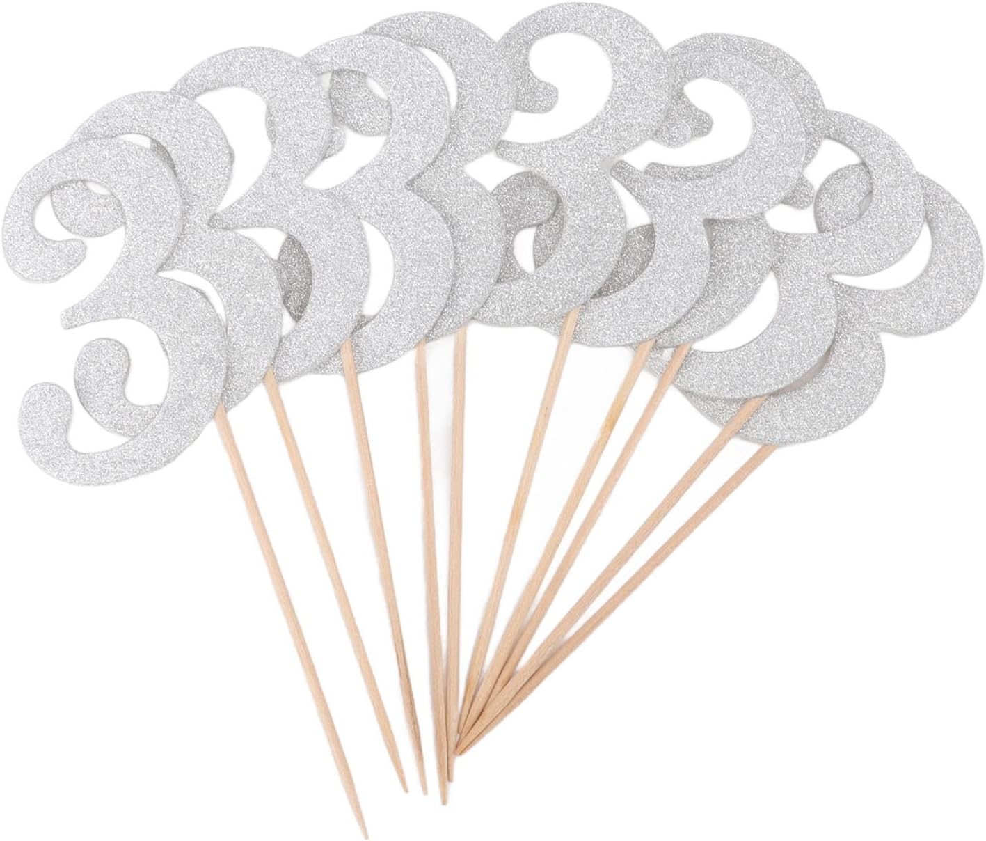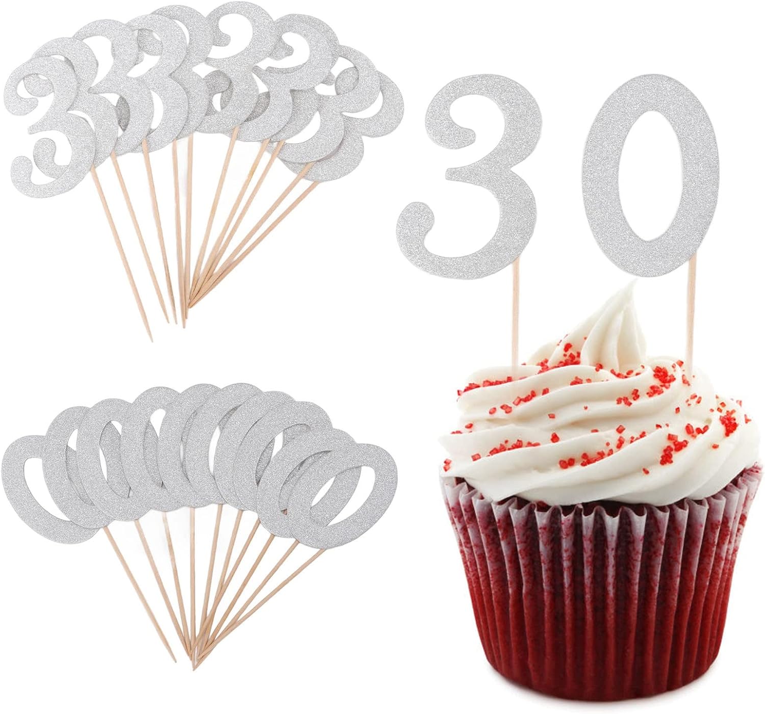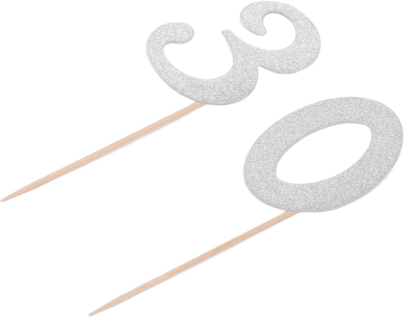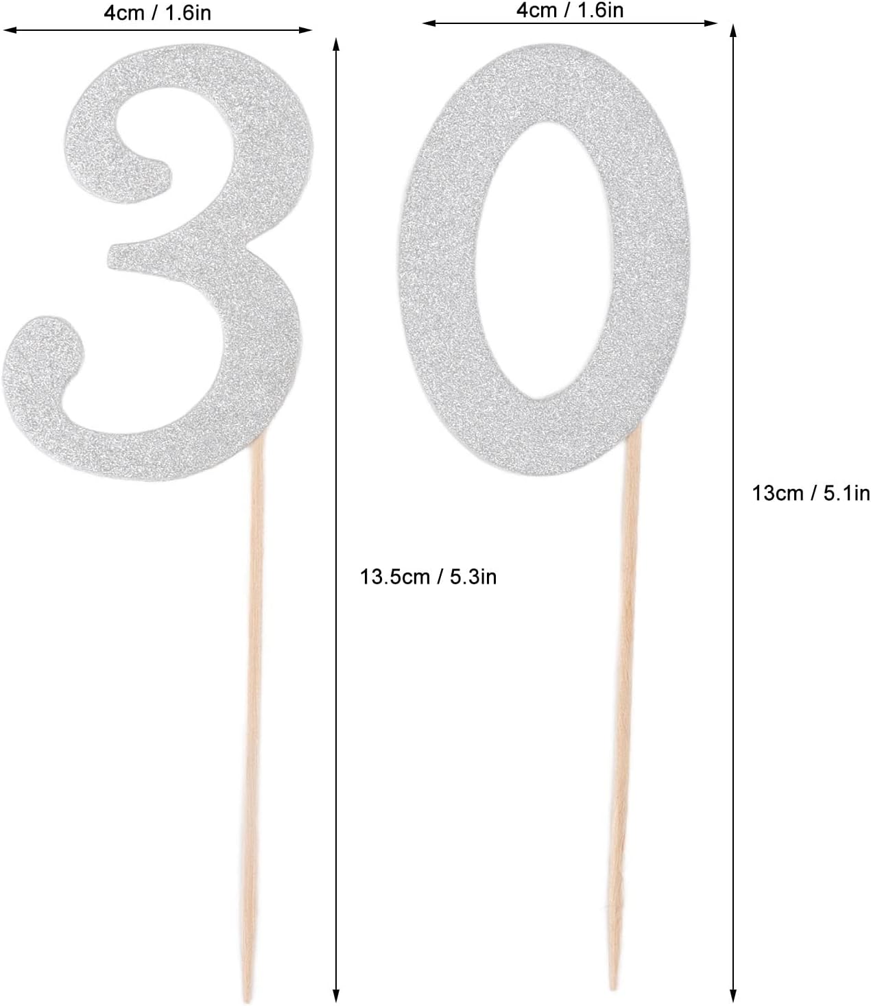 ; [Buona decorazione]: aggiungi un ambiente festivo ai tuoi cupcakes o dessert con questi 30 toppers divertenti e scintillanti. [Abbastanza quantità]: con 50 set di condimenti per torte digitali, avrai molto per decorare le tue prelibatezze per qualsiasi evento. [Bella praticità]: i numeri argentati scintillanti 3 e 0 aggiungono un tocco elegante alle tue torte, elevando il tuo gioco di decorazioni. [Ampie applicazioni]: dai compleanni alle docce per bambini, questi topper riutilizzabili per torta d'argento sono per tutte le occasioni.