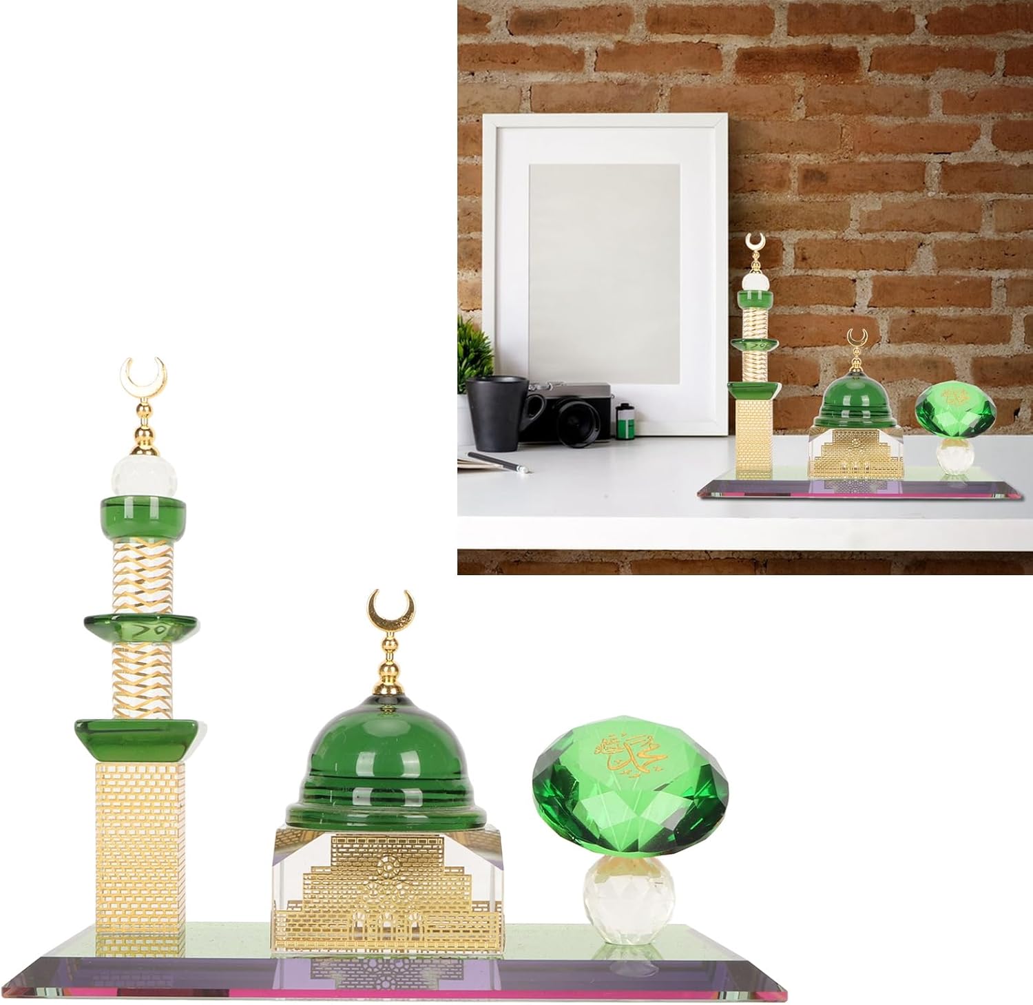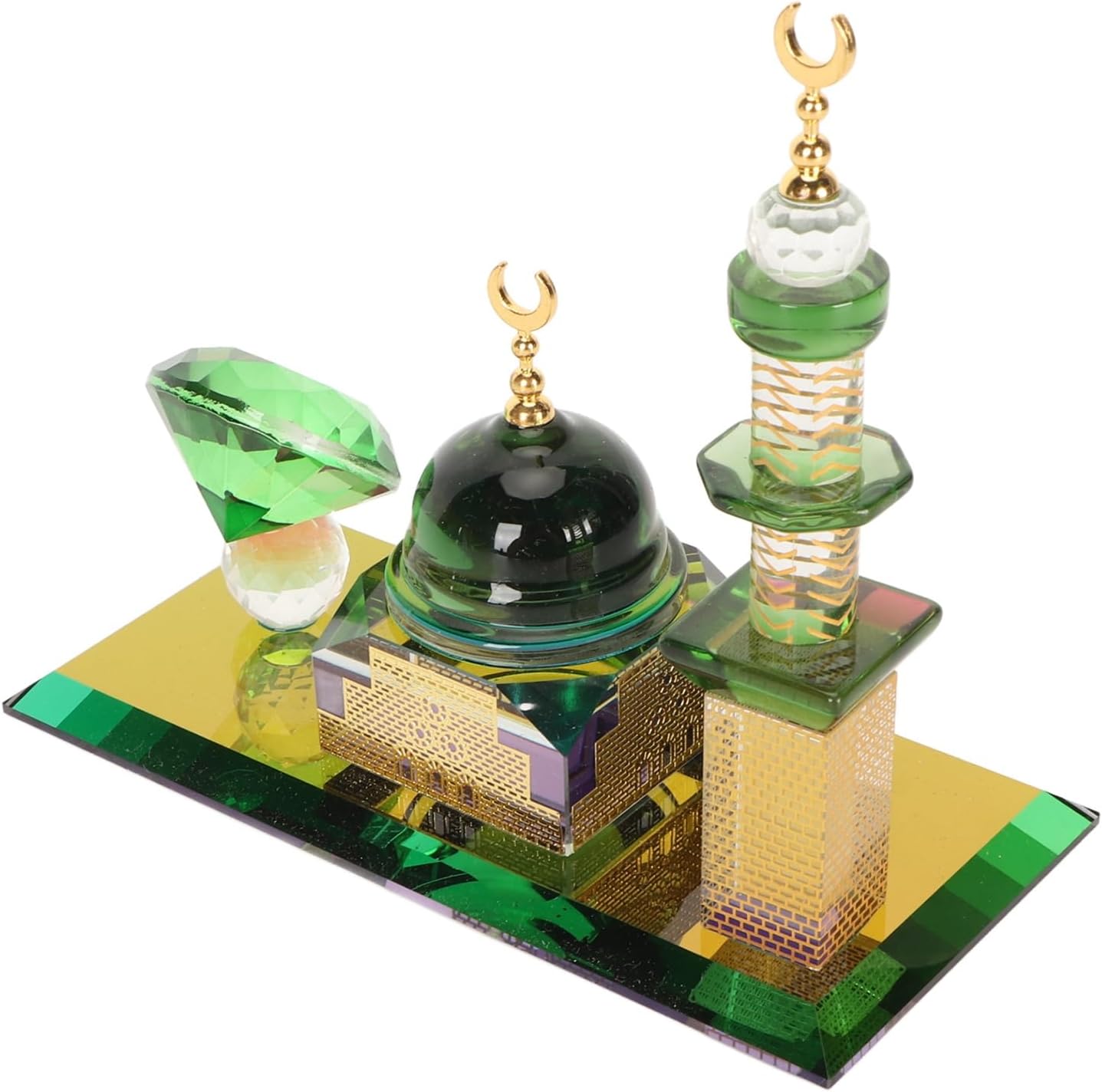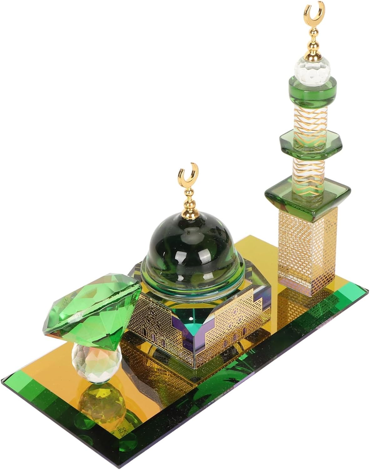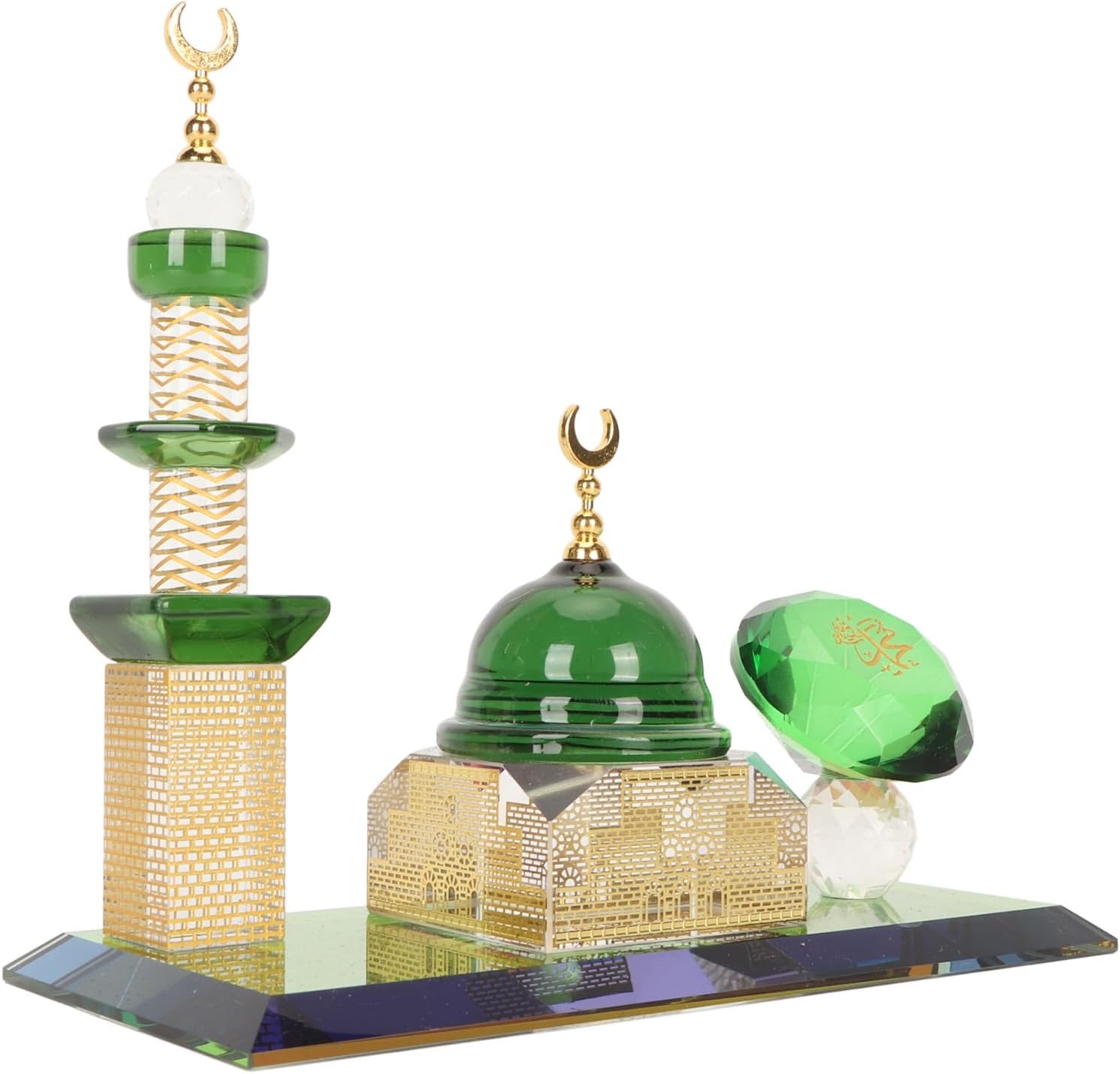 [ARTIGIANATO MOZZAFIATO] per gli squisiti dettagli di questo ornamento di della moschea, magistralmente scolpito in quarzo trasparente di alta qualità per replicare l'iconica architettura islamica. Le cupole e gli archi tagliati con precisione catturano elementi di design autentici, creando un centrotavola scintillante che riflette magnificamente la luce da ogni angolazione, mettendo in mostra l'artigianato superiore. [ SPIRITUALE SIGNIFICATIVO] Presentata in un'elegante confezione foderata in velluto, questa statuetta della moschea è un profondamente simbolico per l'Eid, il Ramadan o le benedizioni della casa. Il design sacro e la purezza cristallina risuonano nelle famiglie musulmane, fungendo sia da accento decorativo che da prezioso ricordo spirituale della fede e della tradizione in ogni casa. [CAPOLAVORO DI DECORAZIONE VERSATILE] Passa senza soluzione di continuità tra le impostazioni di arredamento: appoggialo sulla scrivania dell'ufficio per trarre ispirazione, esponilo su uno scaffale del soggiorno come pezzo di conversazione o lascia che abbellisca il cruscotto della tua auto come compagno di viaggio. La dimensione di 15,5 cm crea presenza senza sovraccaricare il tuo spazio, fondendo l'estetica sacra con gli interni moderni. [COSTRUZIONE IN PREMIUM] A differenza delle repliche, questo ornamento è realizzato in quarzo trasparente apprezzato per la sua chiarezza e durata. Il materiale di alta qualità garantisce una brillante rifrazione della luce pur essendo resistente all'ingiallimento o all'opacizzazione nel tempo, mantenendo il suo aspetto di qualità museale per generazioni. [DETTAGLI DI DESIGN PREGIATO] Dai minareti in scala precisa alla base con motivi intricati, ogni elemento architettonico riceve un'attenzione meticolosa. Il fondo zavorrato garantisce stabilità su qualsiasi superficie, mentre i bordi lisci e lucidi lo rendono sicuro per gli spazi familiari. Una fusione di visione artistica e design funzionale per collezionisti esigenti.