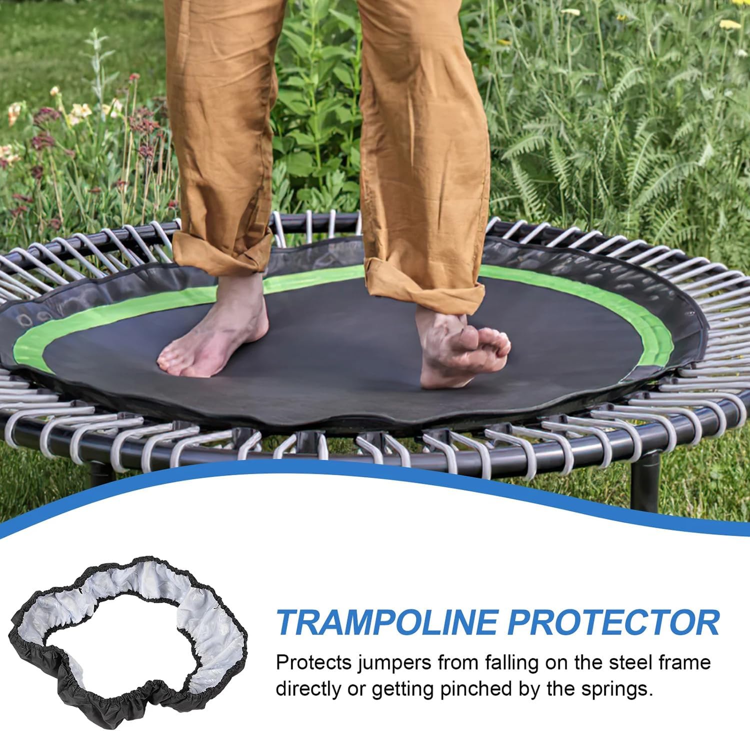[Materiale Premium] La copertura a molla del cuscino del trampolino è realizzata in tessuto Oxford e spugna di alta qualità, questa copertura a molla di sicurezza è liscia e resistente, non facile da deformare. [Goditi il divertimento dello sport] La copertura del trampolino può aiutarti ad avere più interesse e gioia durante il gioco e il fitness, divertendoti rimanendo rilassato; Non si deformerà facilmente nemmeno sotto l'impatto di forze esterne, offrendoti un'esperienza piacevole. [Facile da installare] Questa copertura del bordo a molla del trampolino può essere installata rapidamente, viene fornita con una corda elastica già fissata, devi solo metterla sul trampolino. [Come scegliere] Prima dell'acquisto, misura le dimensioni del tuo trampolino (diametro esterno del telaio al telaio) e la lunghezza della molla e conferma che l'opzione selezionata è corretta; Si consiglia di cambiare regolarmente il pad per prestazioni migliori [Garanzia di soddisfazione al 100%] Se non sei soddisfatto al 100% dei nostri prodotti e non soddisfano le tue soddisfazioni, non esitare a contattare il nostro servizio clienti. Ti forniremo la migliore soluzione entro 24 ore.