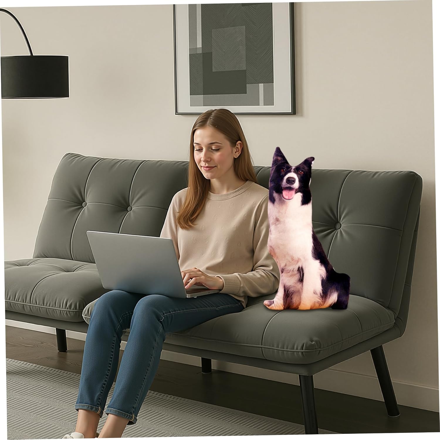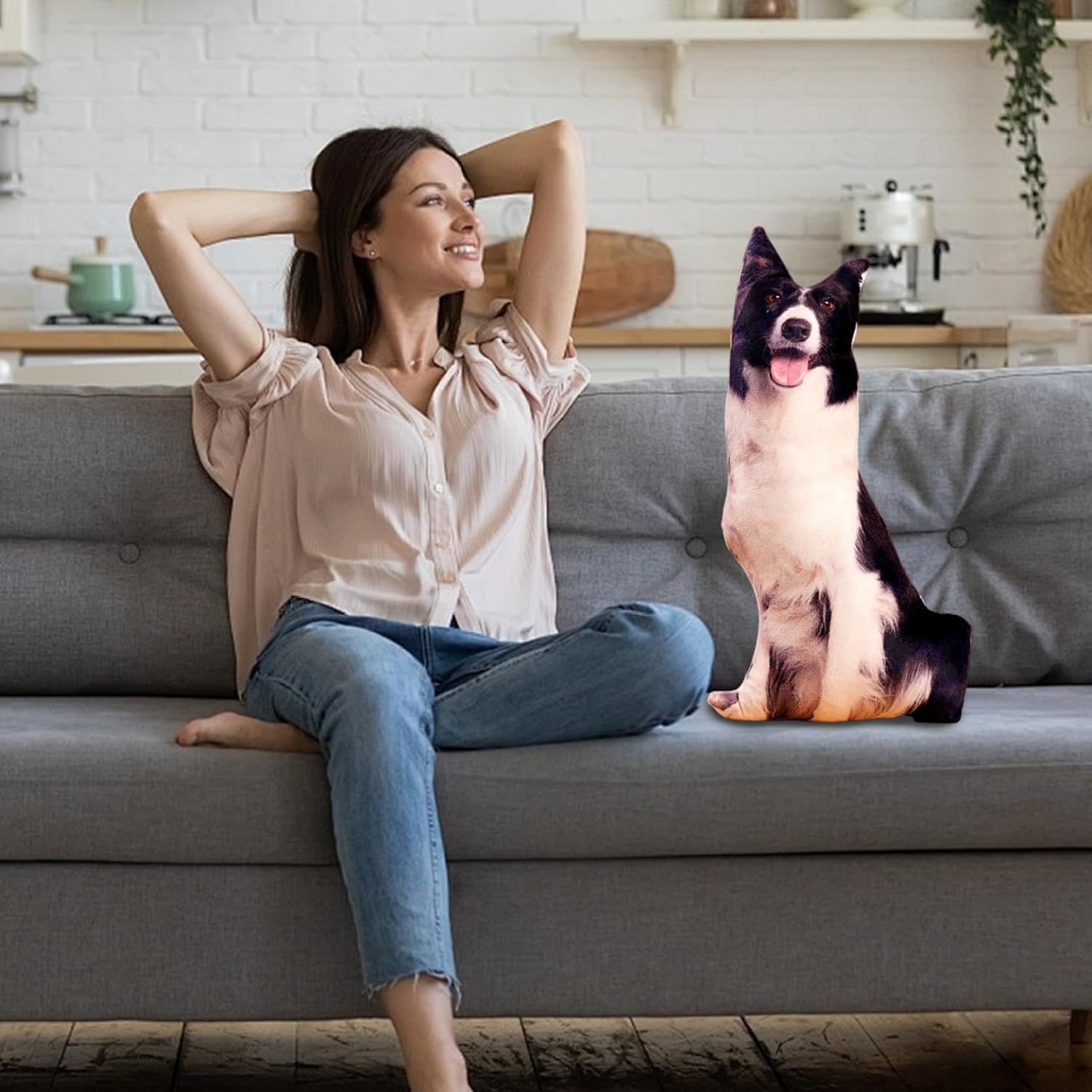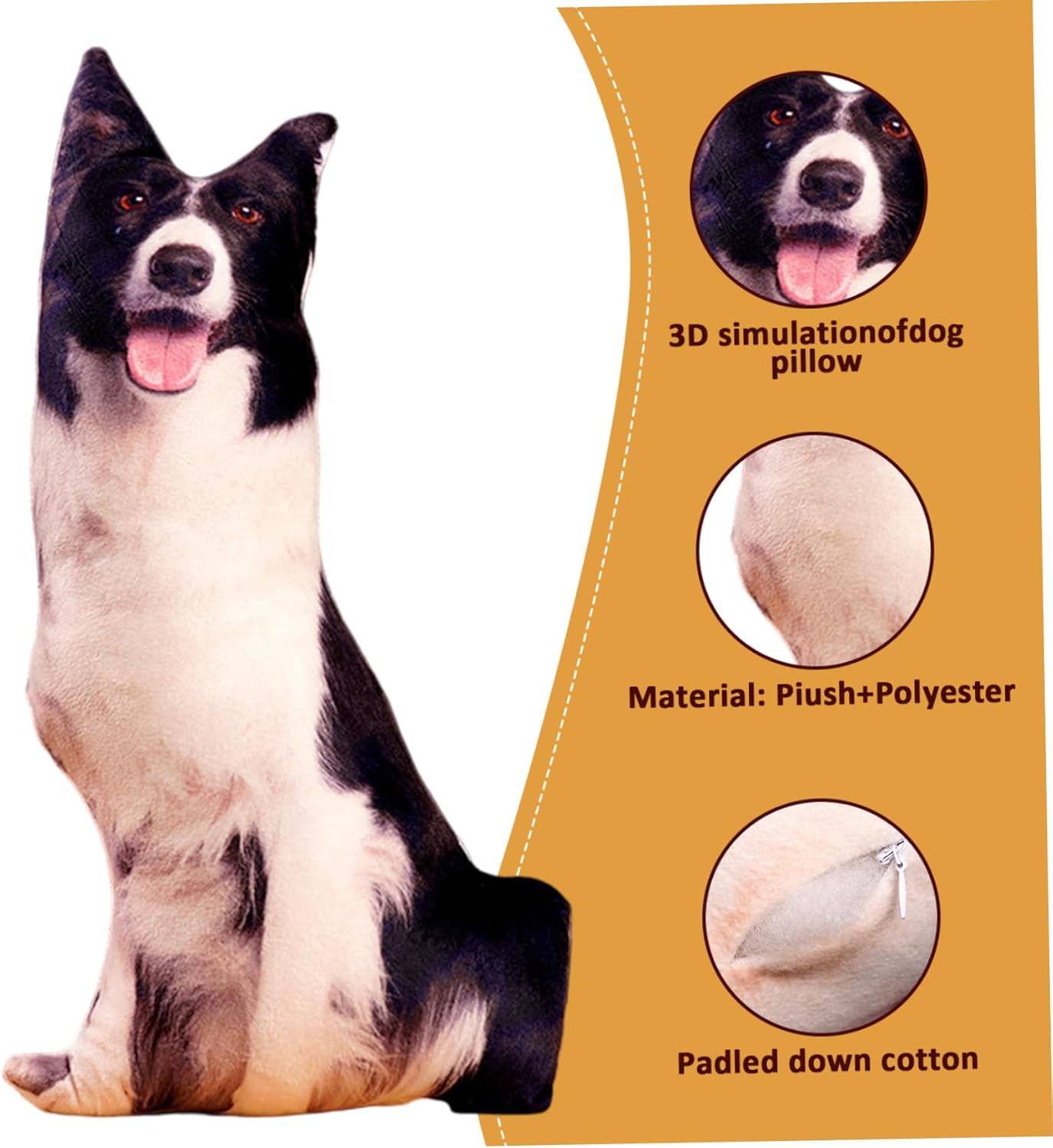Decorazioni per la casa versatili: questo simpatico cuscino in peluche per cani abbina a qualsiasi stile di casa, valorizzando camere da letto, soggiorni o aree lounge con un tocco giocoso ma elegante che piace agli amanti degli animali domestici e agli appassionati di arredamento Stabile e di facile manutenzione: progettato per l'uso quotidiano, il cuscino mantiene la sua forma e morbidezza anche dopo un uso frequente ed è facile da pulire, garantendo fascino e freschezza duraturi Scelta di regali perfetti: combinando divertimento e funzionalità, questo divertente cuscino per cani è un regalo ideale per gli amanti dei cani di tutte le età, portando calore, conforto emotivo e un sorriso in qualsiasi ambiente domestico Design 3D realistico: realizzato con dettagli realistici e tessuto felpato di qualità, questo cuscino per cani 3D aggiunge un arredamento affascinante e realistico a qualsiasi letto o divano, creando un'atmosfera accogliente e invitante Morbido e confortevole: realizzato con materiali ultra morbidi, questo cuscino imbottito a forma di cane offre comfort e sostegno eccezionali, perfetto da coccolare o da utilizzare come cuscino decorativo per tutto il giorno