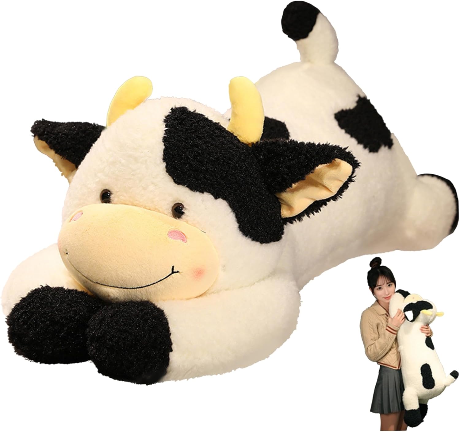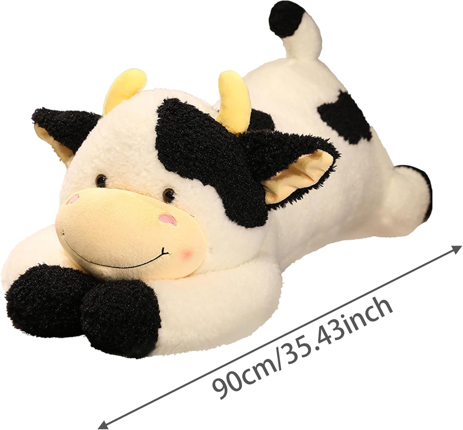 Ampiamente usato: il cuscino in peluche ponderato per mucca rivolge a tutte le età, dai bambini agli adulti, perfetto per camere da letto, soggiorni e uffici..Questo peluche di mucca sdraiata non solo può fungere da cuscino per dormire, così puoi dormire bene a letto, ma ti accompagna anche a trascorrere il tempo libero sul divano, facendoti sentire un senso di sicurezza tutto il giorno. Adorabile forma di mucca: caratterizzato da un simpatico design a mucca, questo peluche funge anche da delizioso pezzo di arredamento per camere da letto o spazi abitativi..Con il suo adorabile e realistico cuscino di peluche a forma di mucca, l'aspetto sorridente e il tessuto morbido, tutte le cattive emozioni e la pressione lavorativa scompariranno quando abbraccerai i peluche! Facile da pulire: design liscio con cerniera, il nostro morbido cuscino per mucca è facile da smontare ed è comodo da pulire..Inoltre, è facile aggiungere o rimuovere l'imbottitura per un'esperienza di coccole personalizzata su misura per le esigenze individuali. Pieno di imbottitura: questi peluche di mucca di peluche ponderati sono riempiti con cotone PP, imbottitura completa, resistente alla compressione, forte resilienza, non facile da deformare..Quando abbracci un lungo peluche di mucca, ti sentirai molto a tuo agio ed elastico con una sensazione morbida e una consistenza delicata. Morbido e confortevole: realizzato in peluche corto, morbido e delicato sulla pelle, questo simpatico cuscino per mucca offre un tocco morbido e accogliente, il cuscino ponderato per mucca può portare un abbraccio morbido e caldo, che può accompagnare te e i tuoi bambini a lavorare, studiare e giocare.