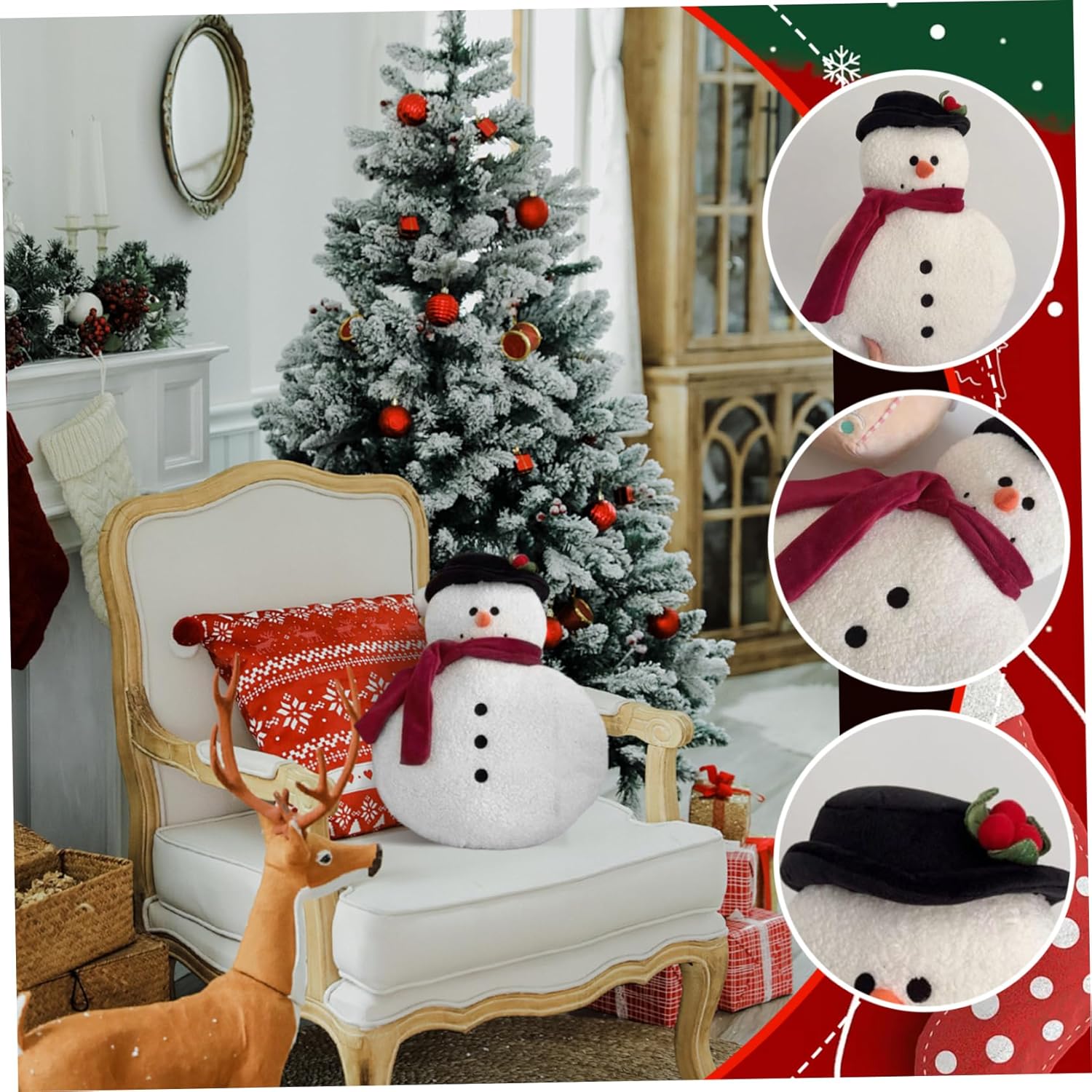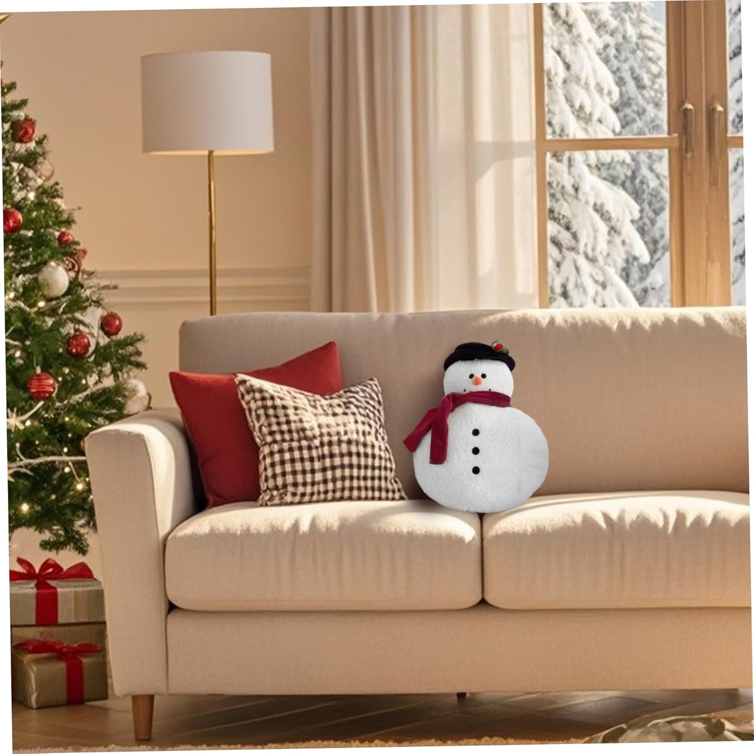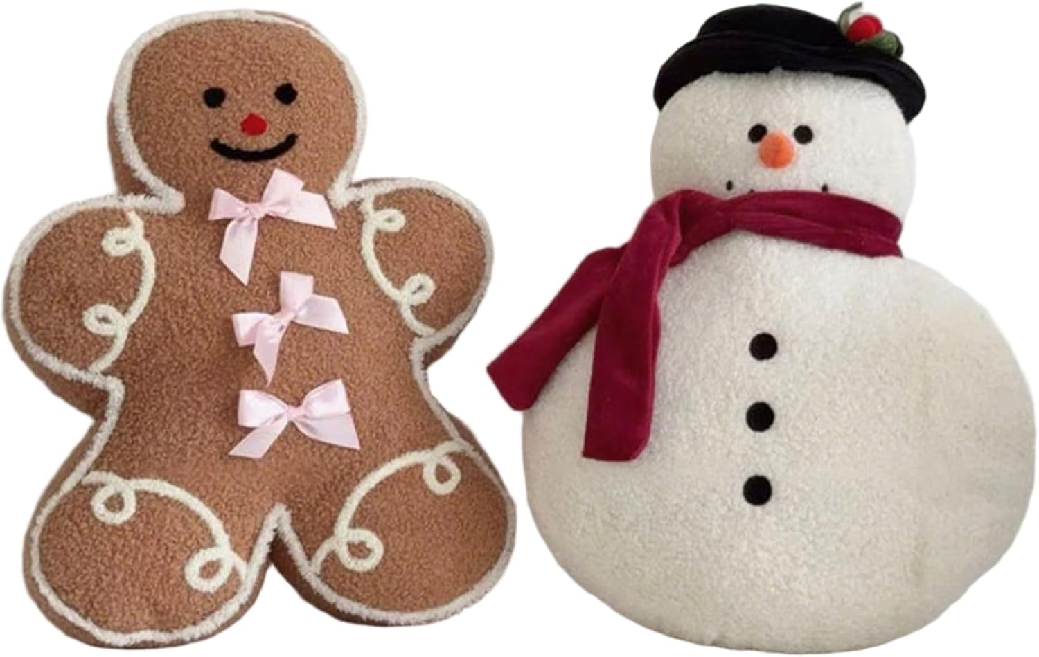 Decorazioni natalizie versatili: ideale per i cuscini natalizi, questo cuscino decorativo migliora l'atmosfera della festa delle vacanze invernali con il suo grazioso fiocco Design festoso a forma di pan di: presenta un affascinante motivo a forma di omino di pan di e pupazzo di neve che aggiunge un accogliente spirito vacanziero all'arredamento della tua casa Idea perfetta: un pensiero premuroso e festoso per la famiglia, gli amici o i padroni di casa, che combina l'arredamento natalizio con il calore e lo stile stagionali Facile da pulire: realizzato con un tessuto duraturo che mantiene forma e colore, questo cuscino natalizio è lavabile in lavatrice per una manutenzione senza problemi Morbido comfort in peluche: realizzato in materiale peluche che garantisce un tocco morbido e confortevole, perfetto per divani, letti e lettini per le vacanze