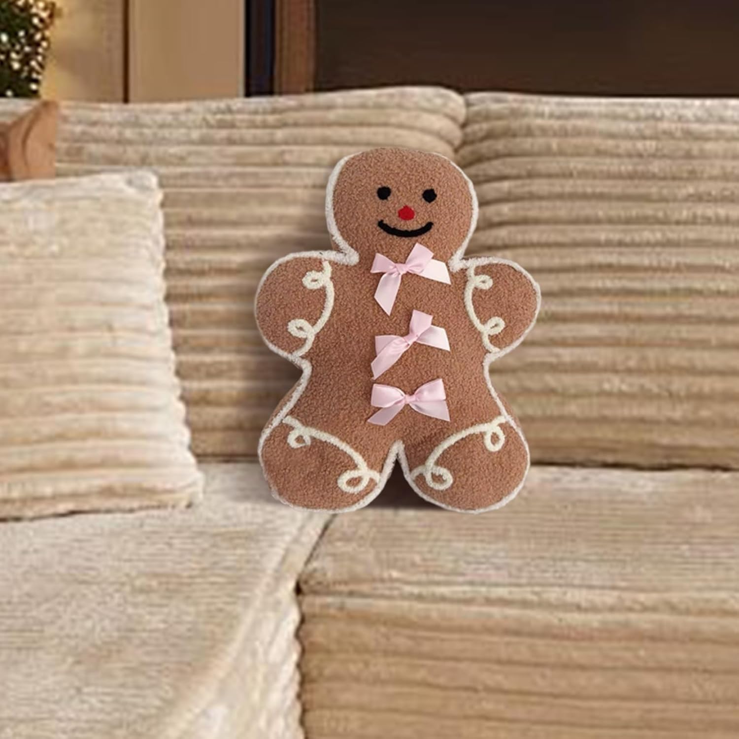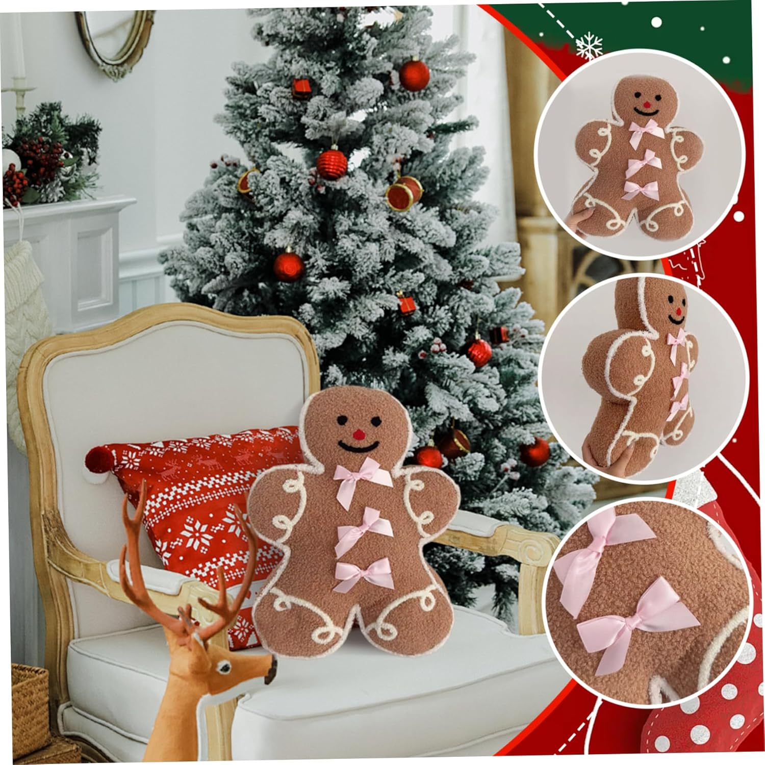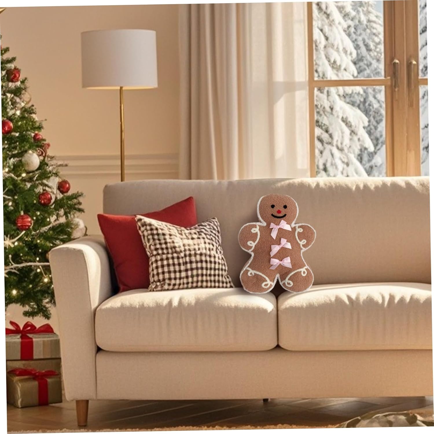 Morbido comfort in peluche: realizzato in materiale peluche che garantisce un tocco morbido e confortevole, perfetto per divani, letti e lettini per le vacanze Decorazioni natalizie versatili: ideale per i cuscini natalizi, questo cuscino decorativo migliora l'atmosfera della festa delle vacanze invernali con il suo grazioso fiocco Design festoso a forma di pan di: presenta un affascinante motivo a forma di omino di pan di e pupazzo di neve che aggiunge un accogliente spirito vacanziero all'arredamento della tua casa Facile da pulire: realizzato con un tessuto duraturo che mantiene forma e colore, questo cuscino natalizio è lavabile in lavatrice per una manutenzione senza problemi Idea perfetta: un pensiero premuroso e festoso per la famiglia, gli amici o i padroni di casa, che combina l'arredamento natalizio con il calore e lo stile stagionali