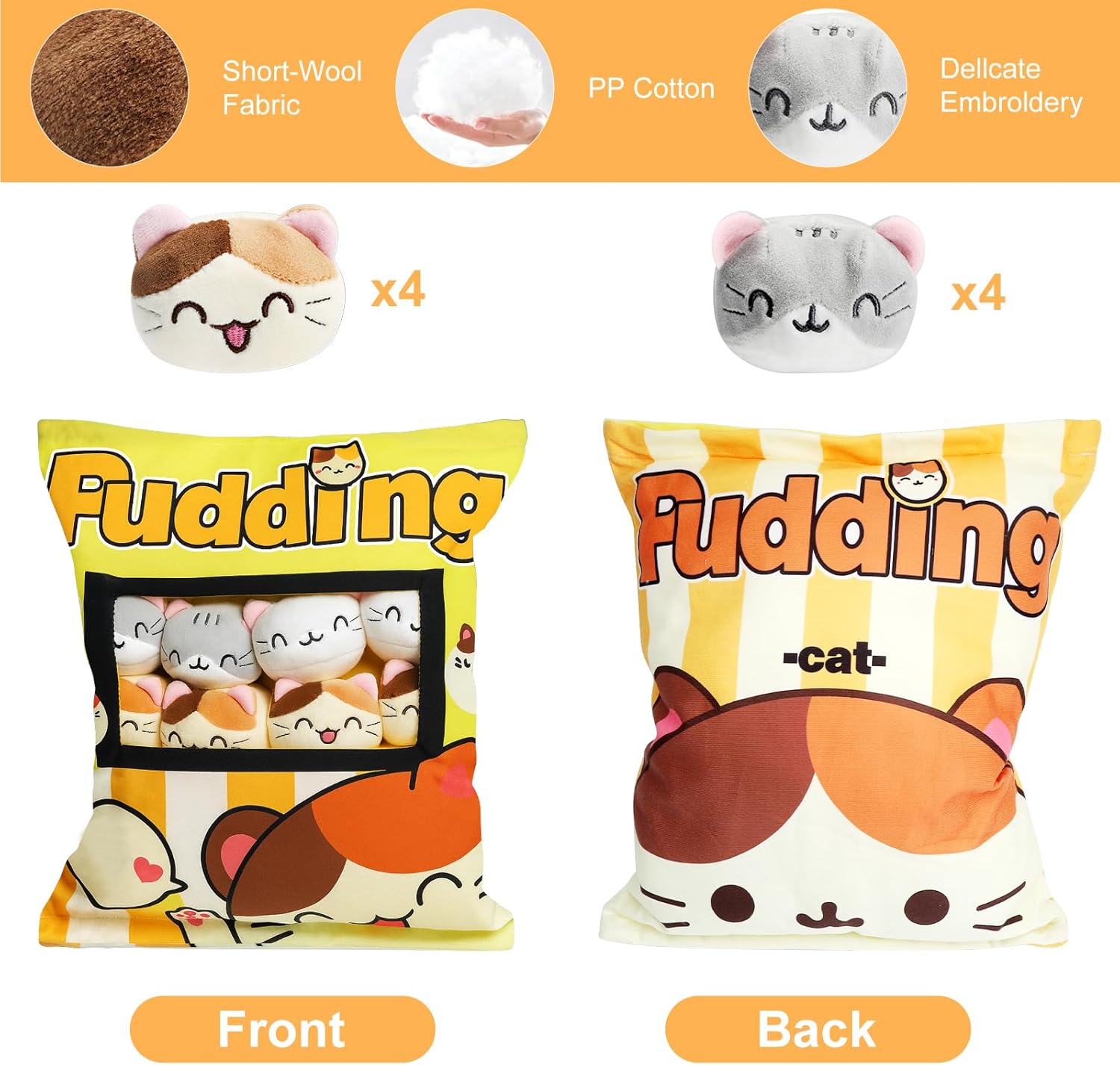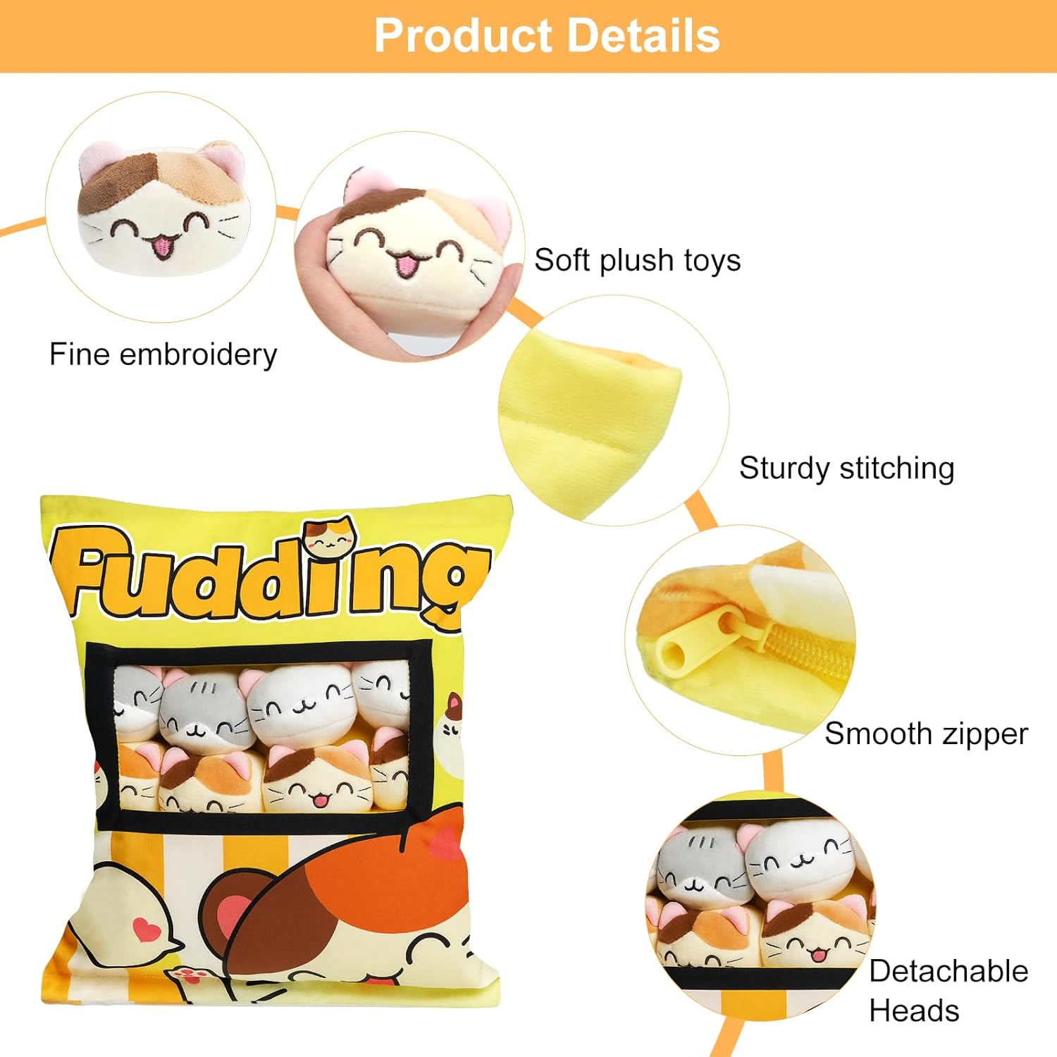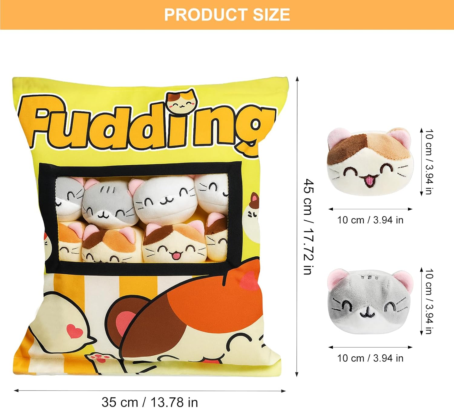 【Cosa Riceverete】Riceverete un adorabile squishmallows in forma di sacchetto snack rettangolare con 8 testine di gatto removibili, tutto nello stile squishmallows. Questo cuscino lungo offre molteplici possibilità di gioco come peluche per bambini. Design dolce e adatto ai più piccoli 【Materiale e Dimensioni】Il prodotto misura 45 x 35 cm ed è realizzato in peluche di alta qualità e tessuto PP per una morbida sensazione tattile e buona elasticità. Con elementi peluche gatto soffici, garantisce qualità simile agli squishmallows. Questo peluche sicuro e senza odori presenta un design gatto peluche resistente 【Cuscino Multifunzione】La particolarità sono le 8 testine removibili per giochi creativi. Funziona come squishy mellow per relax con alto fattore divertimento. Questo peluche gigante combina tenerezza e utilità pratica. Peluche grande perfetto per momenti di svago 【Utilizzo Semplice】Rimuovete le testine dalla tasca principale per usarle singolarmente o come cuscini. La forma a sacchetto facilita il riporre questo pupazzo gigante. Le testine peluche grande resistono a frequenti spostamenti. Peluche gigante ideale per giochi improvvisati 【Applicazioni Versatili】Questo peluche è perfetto per soggiorno, camera, auto o ufficio come cuscino o giocattolo. Regalo per bambini/famiglie, porta calore avvolgente e si adatta a ogni stile decorativo. Ottimo cuscino lungo per leggere, guardare TV o studiare