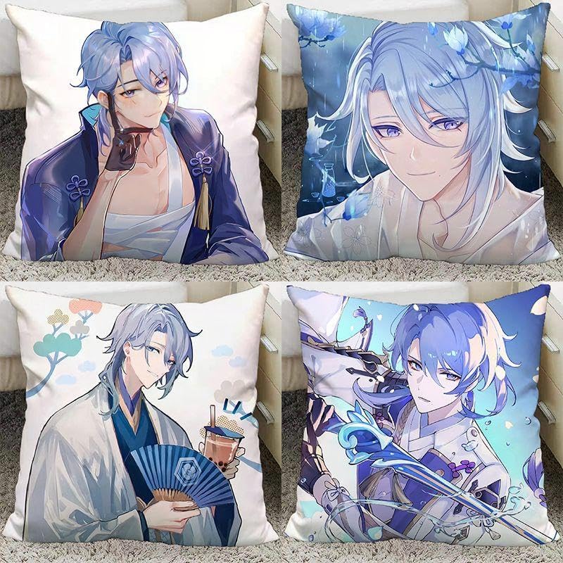 Cuscino Periferico Personaggio del Gioco Cuscino per Kamisato Ayato 35x35cm, Morbido Divano Cuscino Decorativo, per Gli Appassionati di Giochi,1