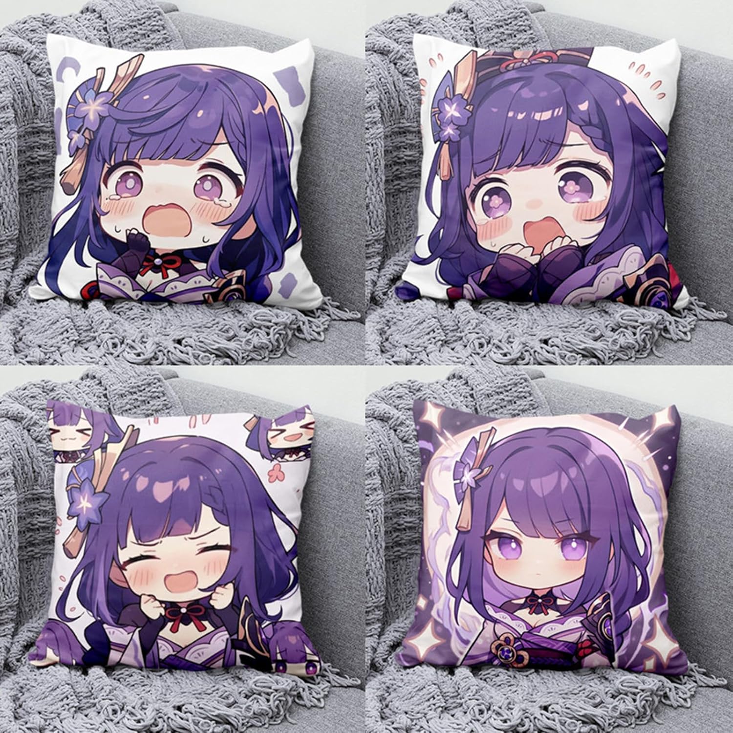 Cuscino Periferico Personaggio del Gioco Cuscino per Raiden Shogun 50 * 50cm, Morbido Divano Cuscino Decorativo, per Gli Appassionati di Giochi,12