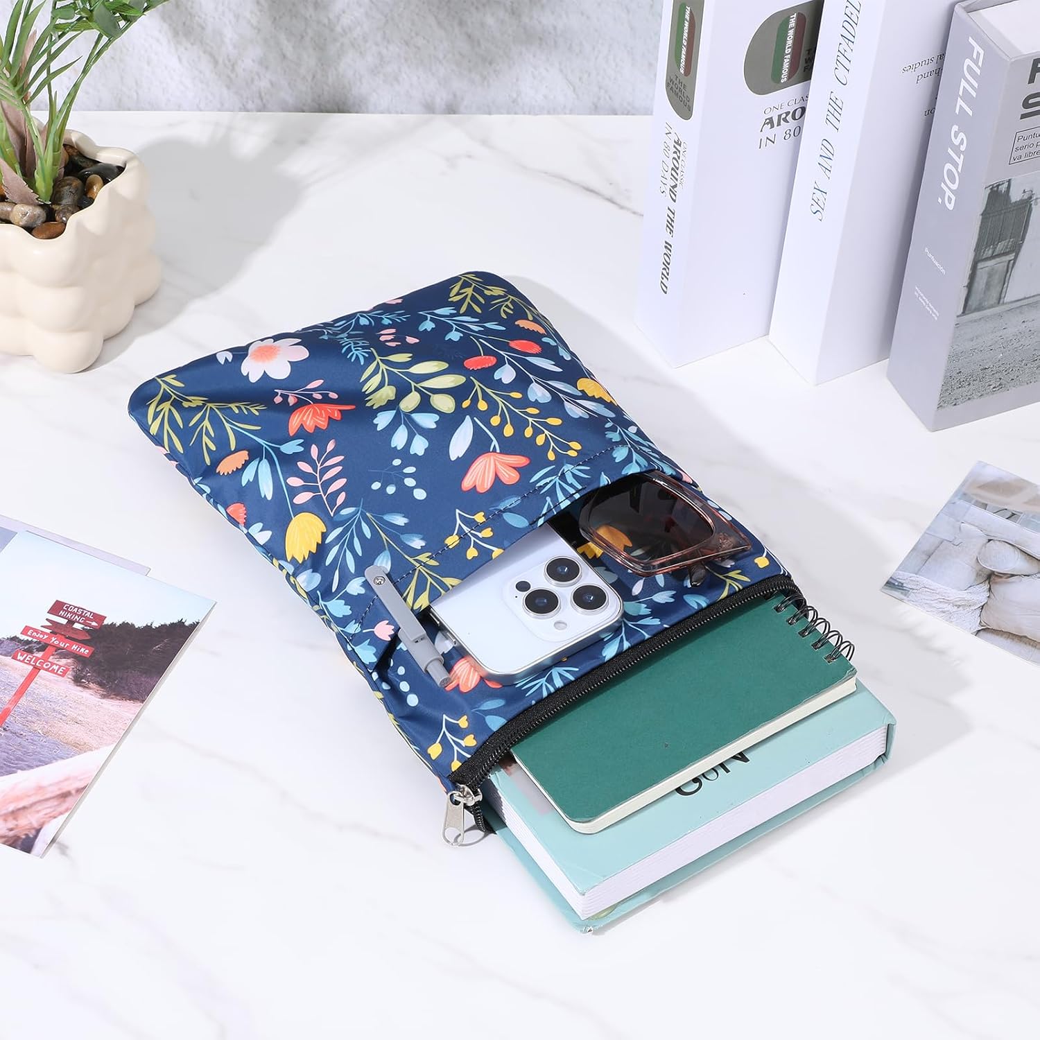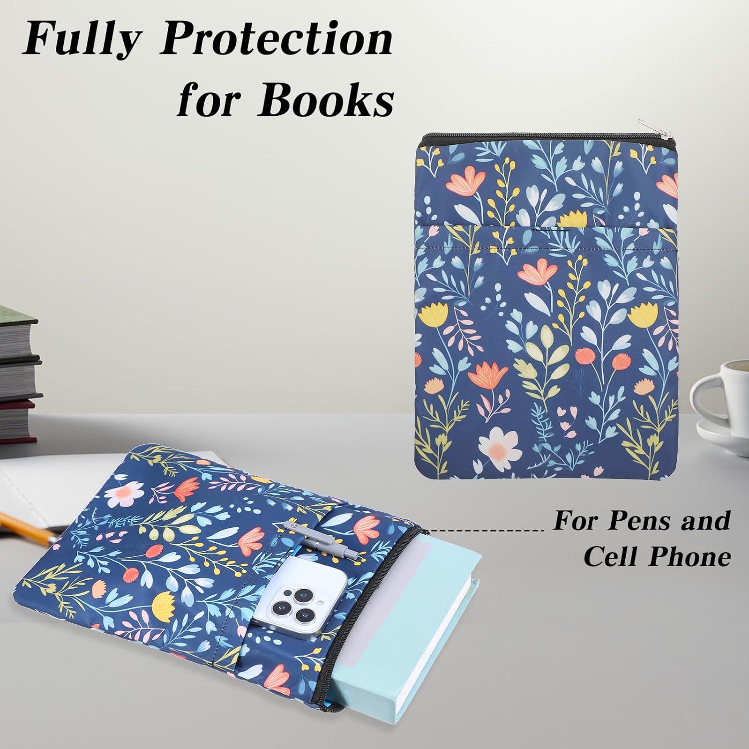 Protezione e stile: la nostra custodia per libri protegge i tuoi libri da polvere, graffi e usura, mentre l'elegante design floreale e piante conferisce a ogni libro un aspetto elegante. Perfetto per gli amanti dei libri che apprezzano l'estetica e la funzionalità Materiale di alta qualità: realizzata in robusto poliestere, la borsa per libri è durevole, impermeabile e facile da pulire. Il materiale è privo di sostanze chimiche nocive e inodore, quindi è sicuro per i tuoi libri e la tua salute Design pratico: con custodia impermeabile per libri di 28 x 22 cm, la custodia si adatta perfettamente alla maggior parte dei libri tascabili, copertina rigida e libri pubblicati. La funzione cerniera integrata offre una protezione aggiuntiva e impedisce ai libri di scivolare accidentalmente Spazio aggiuntivo: la copertina a libro dispone di una grande tasca frontale, ideale per quaderni, penne, telefoni cellulari o anche libri più piccoli. Questo li rende un pratico compagno di viaggio, sia a scuola, in ufficio o in viaggio Regalo ideale: con il suo design affascinante e la lavorazione di alta qualità, questa custodia a libro è il regalo perfetto per gli amanti dei libri, bibliofili o insegnanti. Combina benefici e bellezza e aggiunge entusiasmo a chiunque ami i libri