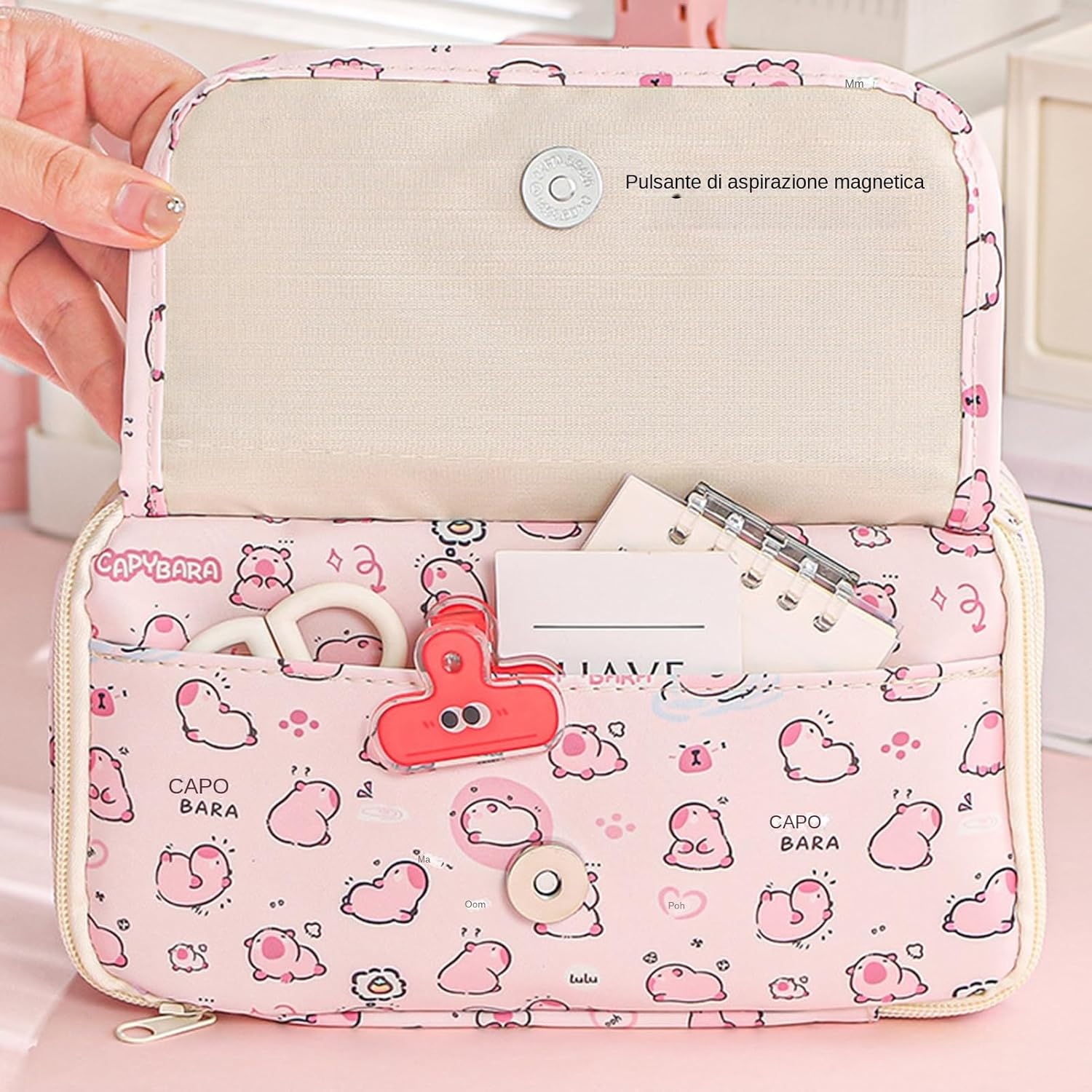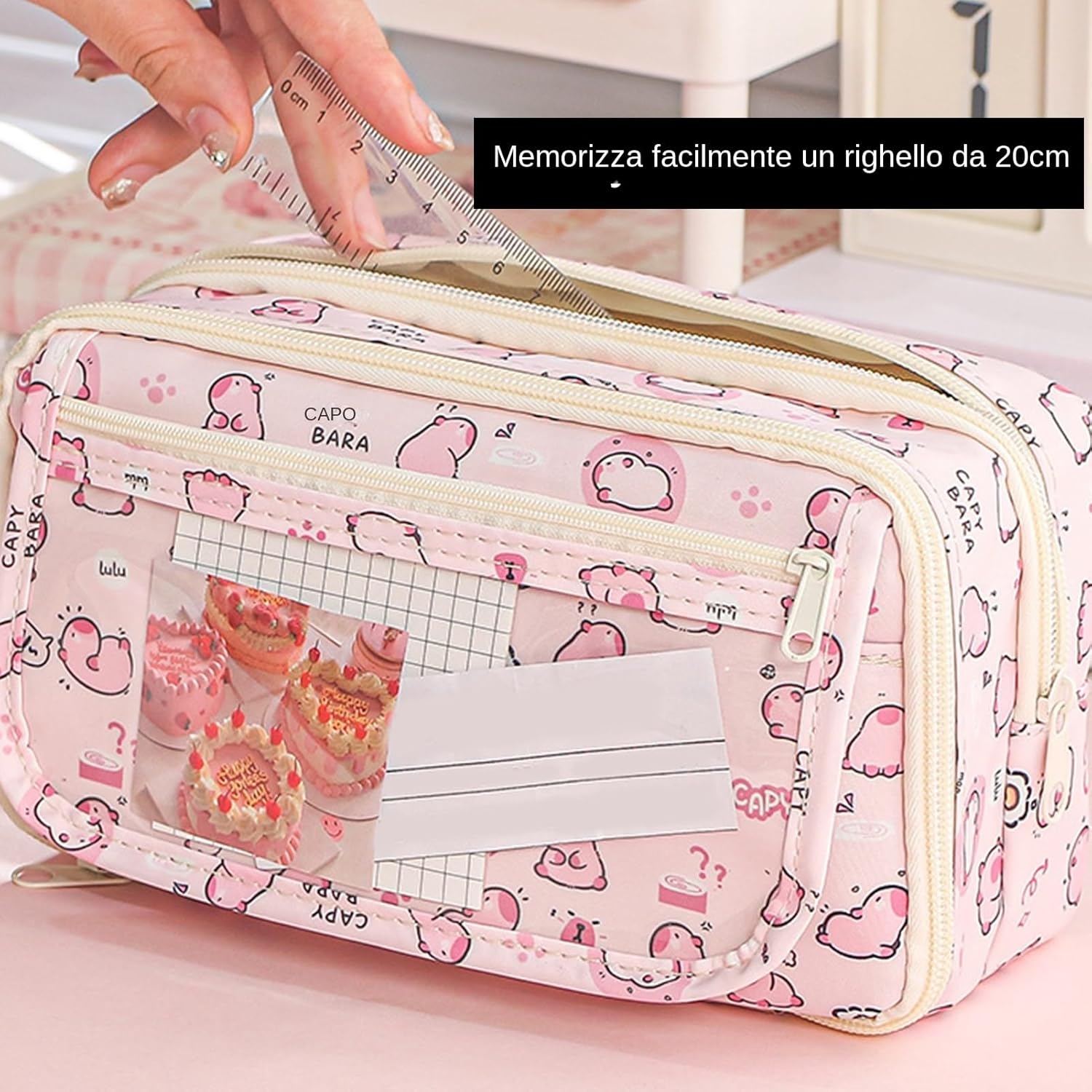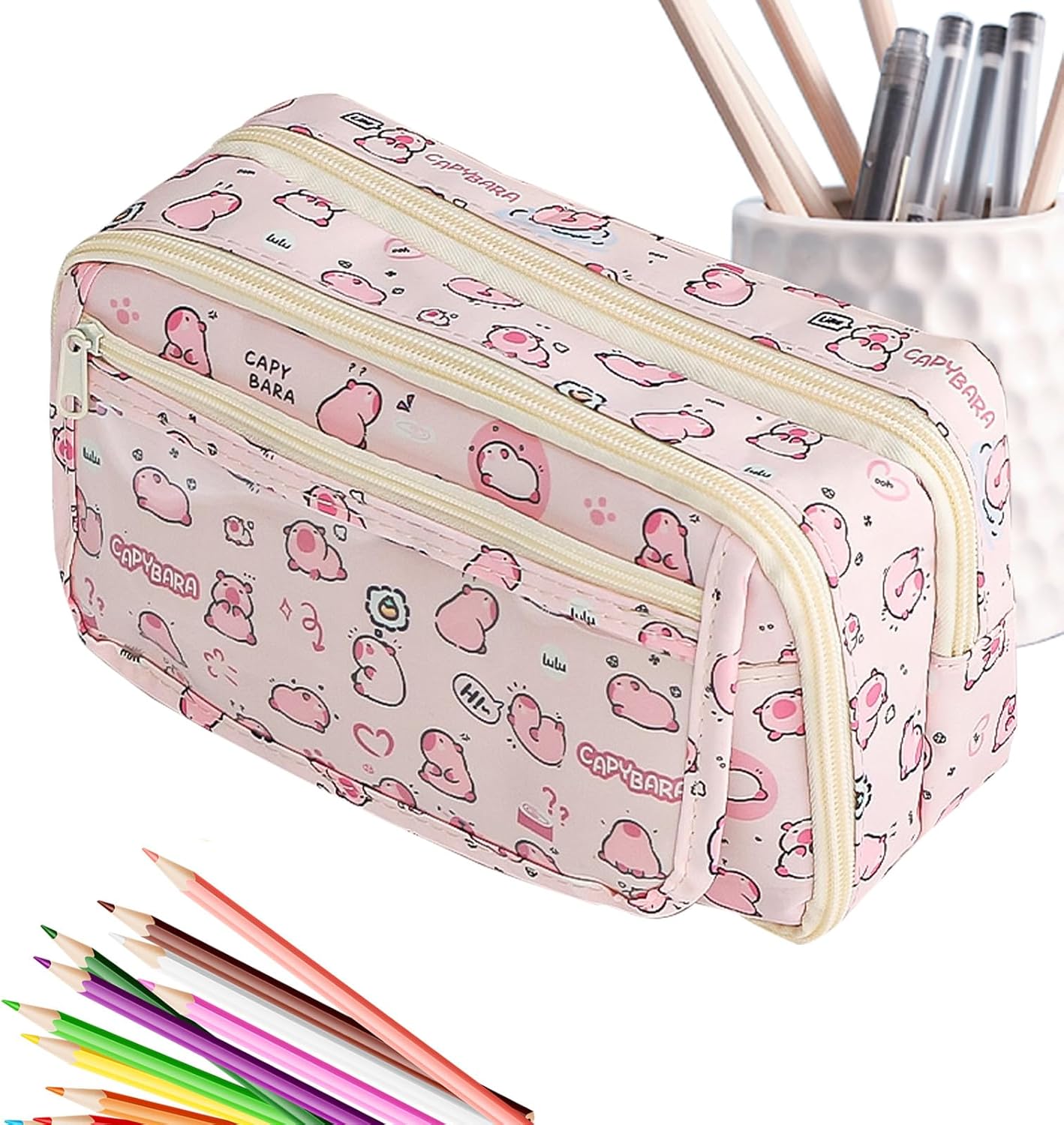 Convenienza senza sforzo: con un layout interno scientifico, questa borsa a con cerniera leggera e portatile fornisce un design di grande capacità, assicurando che puoi facilmente prendere qualsiasi cartoleria di cui hai bisogno. Conveniente Organity Companion: ideale per studenti e viaggiatori, questa borsa a con cerniera non solo protegge i tuoi must-have accademici, dalla scuola media al college, ma raddoppia anche come un portafoglio da viaggio o una borsa da trucco chic per i tuoi cosmetici, garantendo che i tuoi oggetti siano organizzati se stai studiando in casa o come avvertenze. Durabilità di lunga durata: proteggere i tuoi must-have con questa borsa a con cerniera costruita con tessuto resistente all'usura e cerniera endurabile e facile da usare per una semplice manutenzione. Ampia gamma di usi: transizione senza soluzione di continuità da una scuola a gite, questa borsa a con cerniera si evolve con la giornata, dimostrando le attività di lavoro, casa e all'aperto. Divertente e : con la sua adorabile forma Capybara e motivi di cartoni animati accattivanti, questa borsa a con cerniera catturerà sicuramente l'attenzione di te e dei tuoi coetanei. Perfettamente divertente sia per i ragazzi che per le ragazze, questa borsa a unica è un must per le o per la scuola.