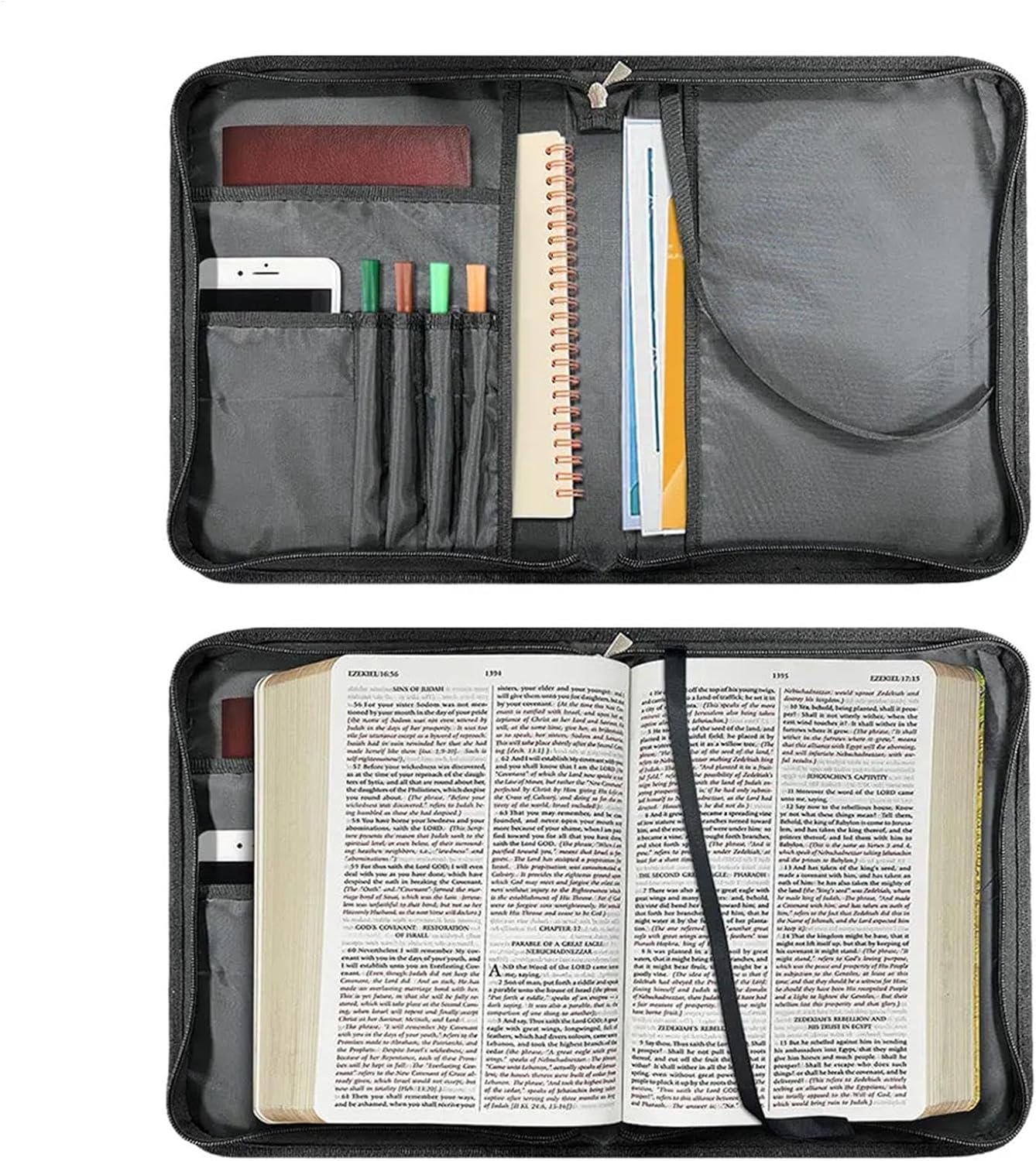 Materiale di qualità: goditi la massima protezione con la nostra custodia Bible. Realizzato in materiale PU resistente e durevole, è progettato per un uso a lungo termine e non si deforma facilmente. Garantisci la conservazione della tua Bibbia con la nostra custodia di qualità. Facile da pulire: questa custodia per Bibbia è realizzata in materiale resistente e impermeabile, quindi puoi semplicemente pulirla con un panno umido ogni volta che si sporca. Non devi preoccuparti di macchie, fuoriuscite o polvere. Goditi la comodità di mantenere la tua custodia biblica in buone condizioni. Ampia applicabilità: con la capacità di contenere libri piccoli o grandi, bibbie e quaderni, questa custodia versatile è ideale per viaggi, chiesa o studio. Goditi la comodità e la facilità grazie al suo design adattabile, perfetto per ogni situazione. Idea regalo: sorprendi i tuoi cari con questa custodia Bibbia di alta qualità. Progettato per proteggere le loro preziose scritture da polvere, acqua e usura, è un regalo attento e utile per ogni occasione. Ideale per ragazzi e ragazze che amano leggere la Bibbia. Maggiore sicurezza: proteggi la tua preziosa Bibbia da danni causati da polvere, macchie e strappi, con la nostra custodia protettiva durevole e affidabile. Proteggi e proteggi la tua Bibbia dalla polvere.