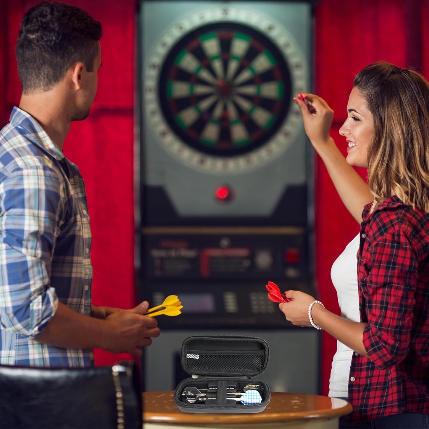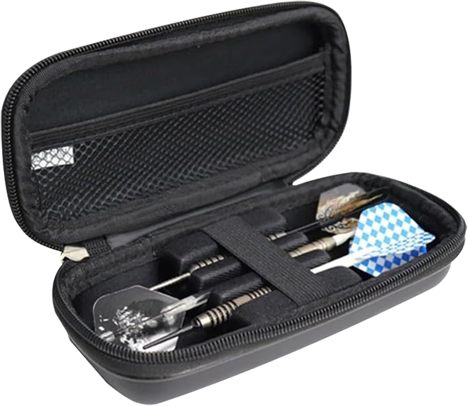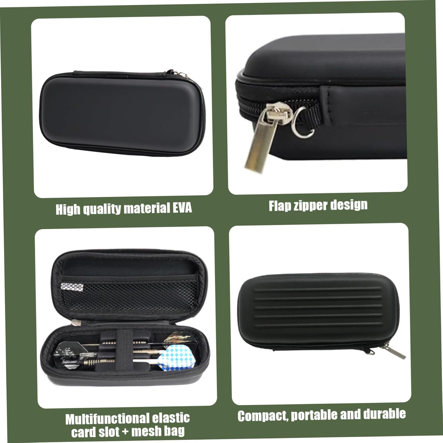 Elegante e professionale: questa custodia presenta un design elegante e alla moda che è allo stesso tempo professionale e alla moda..È perfetto per gli appassionati che apprezzano sia la funzionalità che l'estetica. Strofinatura efficace: la scatola presenta tre slot su un lato e una tasca a rete sull'altro, offrendo ampio spazio per riporre fino a tre freccette e altri piccoli accessori. Compatta e portatile: questa custodia è compatta e facile da trasportare, con dimensioni di circa 18,5x8,2x5,5 cm/7,28x3,23x2,17 pollici..Ti permette di portare le tue freccette ovunque tu vada, rendendolo perfetto per competizioni e altri eventi. Design pratico: il design con chiusura a cerniera rende la scatola portaoggetti facile da aprire e chiudere, mentre il design con apertura a ribalta consente un facile accesso alle freccette e agli accessori..È un design intuitivo che rende lo stoccaggio e il trasporto più convenienti. Adatto a vari tipi: questa custodia da trasporto è adatta sia per freccette con punta morbida che con punta in acciaio, fornendo una protezione efficace per prevenire danni durante il trasporto o lo stoccaggio.