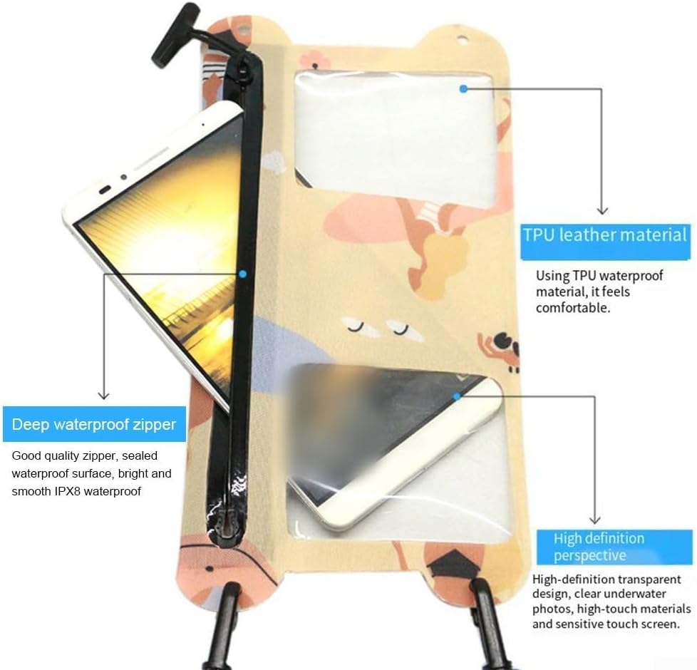 Custodia impermeabile multifunzionale: progettata per adattarsi a smartphone da 7 a 7 pollici, questa custodia impermeabile garantisce una forte protezione contro l'acqua, consentendo allo stesso tempo di scattare foto chiare e rispondere alle chiamate senza sforzo. Materiale altamente elastico: realizzata in materiale morbido e altamente elastico che è comodo da usare, questa custodia garantisce una reattività sensibile al tocco e una qualità dell'immagine ad alta definizione, anche sott'acqua. [TESTATO IN ACQUA PROFONDA] Questa custodia è stata sottoposta a rigorosi test fino a 30 metri sott'acqua, utilizzando una pellicola in PVC ad alta trasparenza che massimizza la tua esperienza di scatto fotografico senza compromettere le capacità impermeabili. Design con cerniera ermetica: la cerniera ermetica impedisce l'ingresso di acqua quando è immerso; basta tirarla sul fondo prima di entrare in acqua per la massima protezione. Tracolla regolabile: caratterizzata da un design facile da usare con quattro fori regolabili, questa borsa impermeabile può essere per comfort e comodità durante le gite in spiaggia o le attività acquatiche.