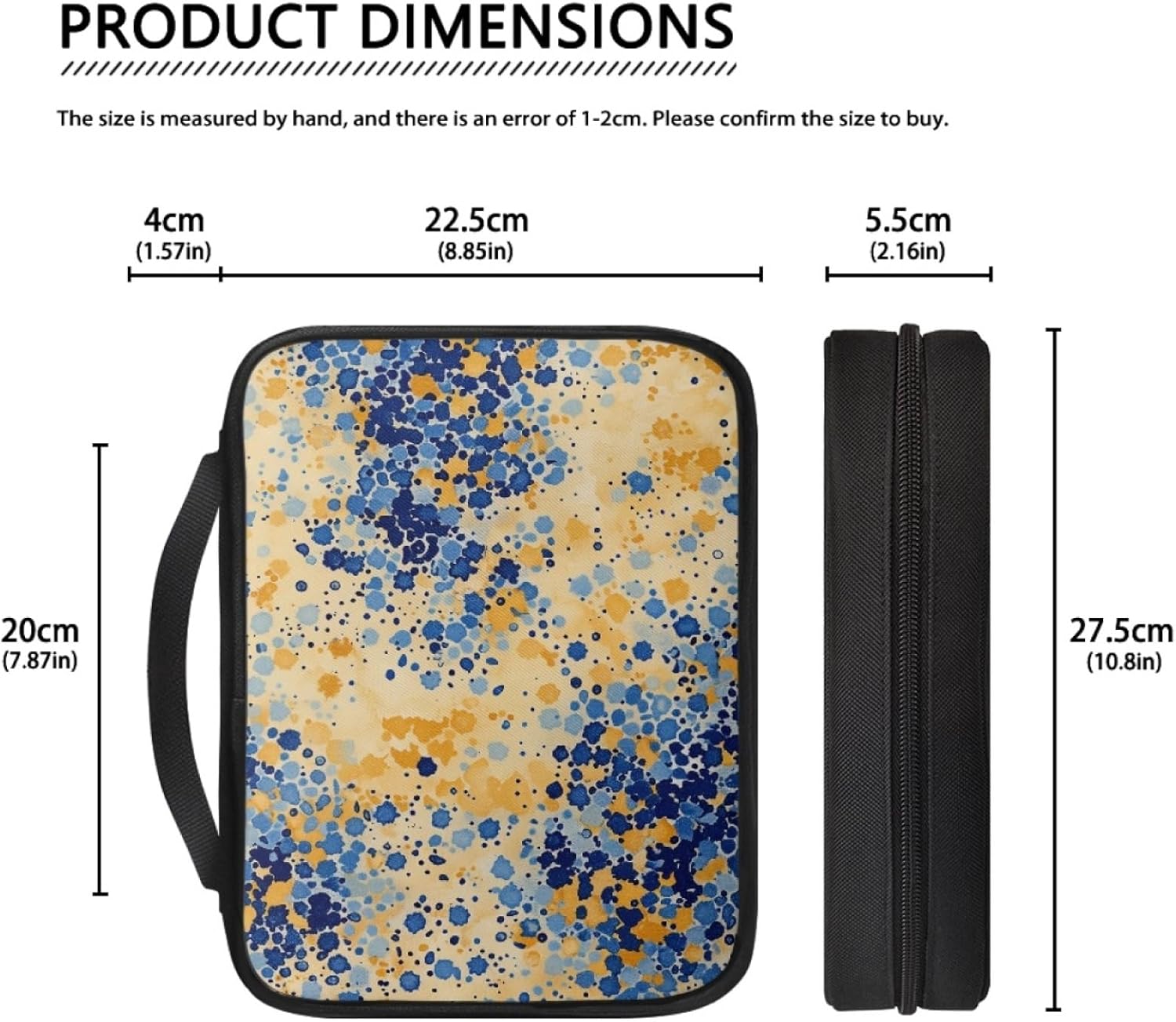 Custodia Libri Chiusura a Zip: L'esterno è dotato di una chiusura a zip resistente, che garantisce che la vostra Bibbia e gli altri oggetti rimangano al sicuro all'interno, impedendo che cadano o si persano. Durante la lettura, la borsa può essere completamente stesa, consentendovi di leggere il libro comodamente senza toglierlo Ampia Applicazione: Design spazioso, manico robusto, leggero e facile da portare. La borsa per Bibbia non è solo una borsa per lo studio religioso, ma anche una borsa a mano, una borsa per il lavoro e una borsa di archiviazione per i viaggi. Potete mettere molte cose all'interno e portarla dove volete Custodia Libro Materiale: La borsa per Bibbia è confezionata con una miscela di tela e poliestere, che unisce la robustezza della tela alla elevata resistenza del poliestere. Vanta un'ottima resistenza all'usura e alle strappature, sopporta l'uso quotidiano e proteggerà la vostra Bibbia per anni Dimensioni Universali: Le dimensioni sono di 27,5 cm di lunghezza, 22,5 cm di larghezza e 5,5 cm di altezza. La borsa per Bibbia ha un ampio spazio interno, e il design a singolo compartimento Elimina la necessità di cercare in più comparimenti, permettendovi di trovare gli oggetti in un attimo Manutenzione Semplice: Resistente alle macchie e impermeabile, la borsa è facile da pulire. Le piccole macchie possono essere eliminate con un panno umido, e è anche lavabile in macchina. Adatta come regalo per amici e familiari