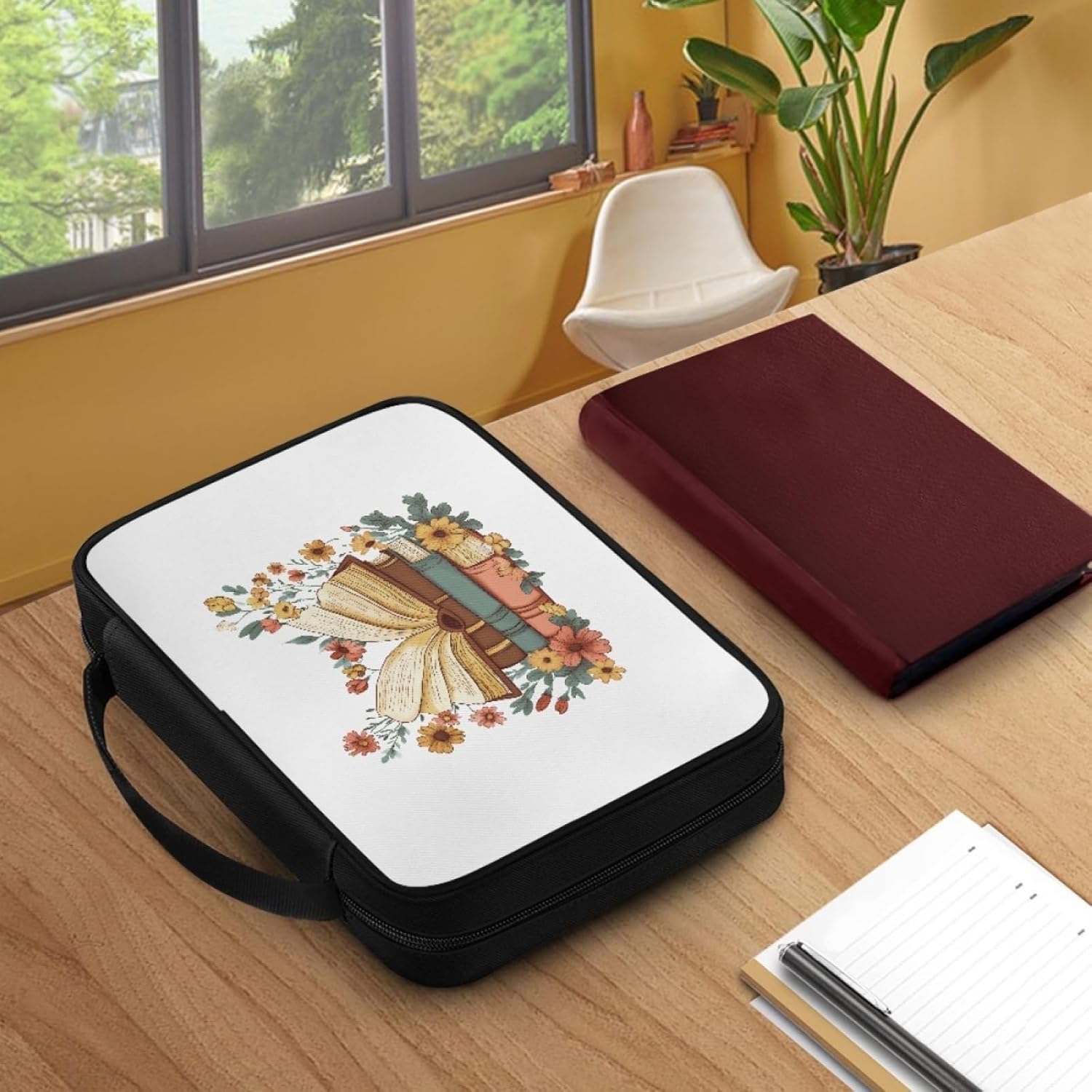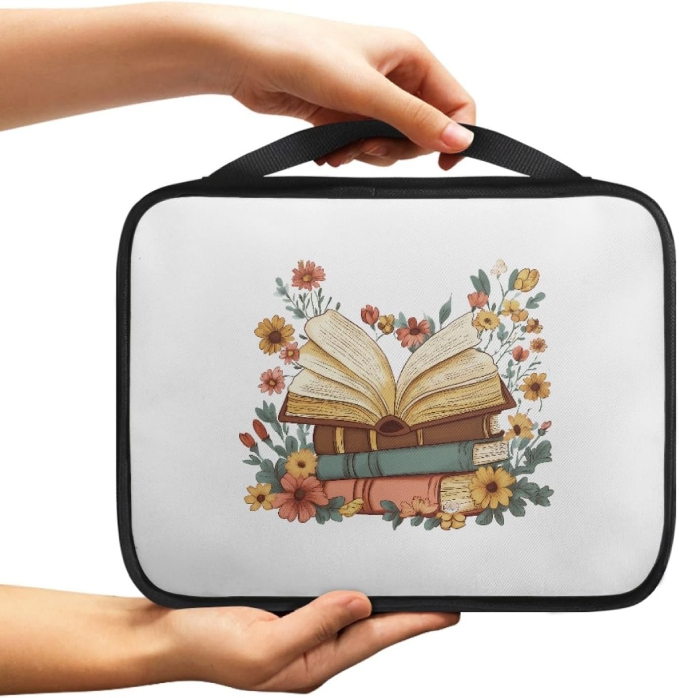 Custodia Libro Fiore Del Libro Giallo Copertura Bibbia con Manico Cerniera Tela in Poliestere per Uomo Donna Porta Libro Grandi Capacità Custodia per Libri 27.5x22.5x5.5 cm