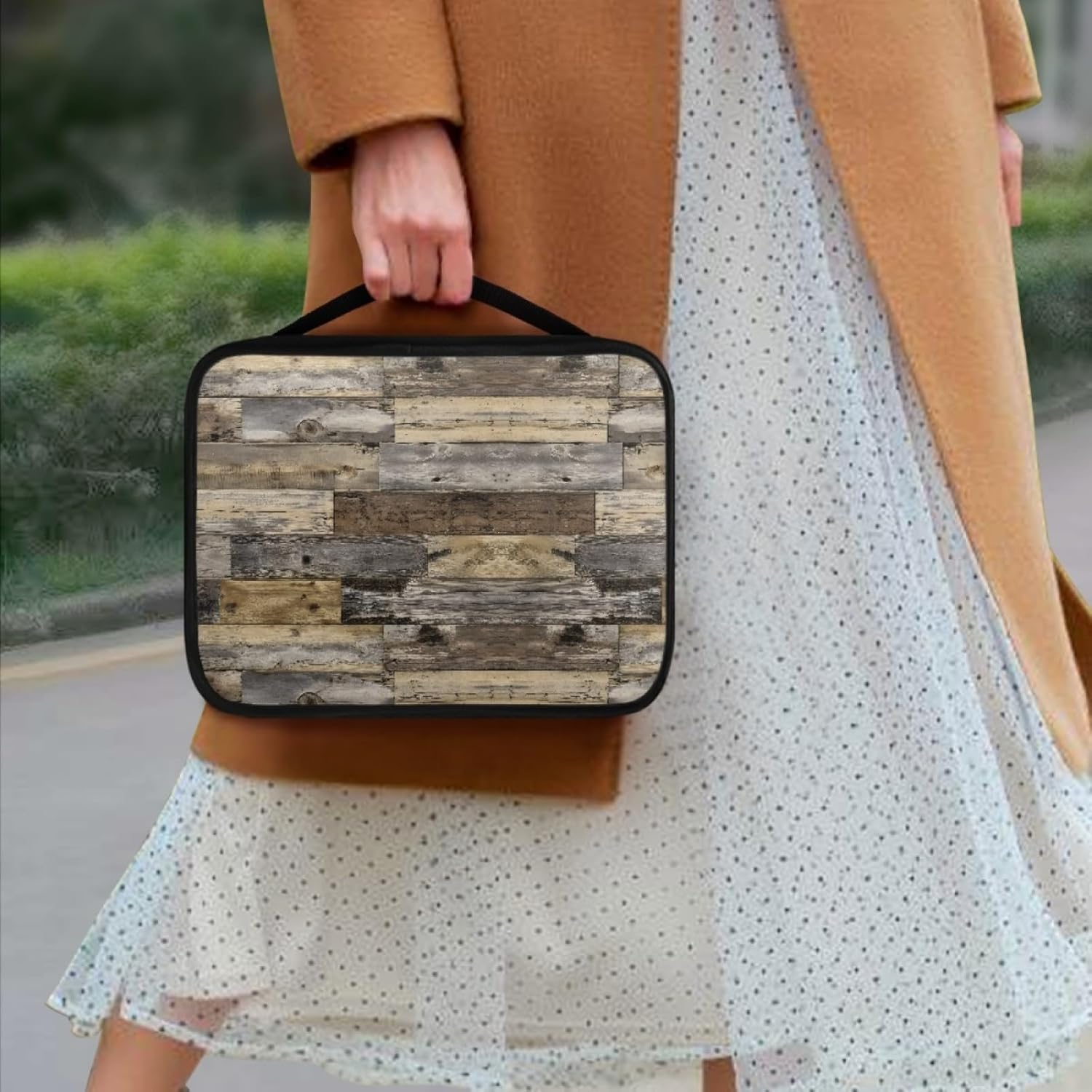 Custodia Libro Grain Di Legno Grigio Copertura Bibbia con Manico Cerniera Tela in Poliestere per Uomo Donna Porta Libro Grandi Capacità Custodia per Libri 27.5x22.5x5.5 cm