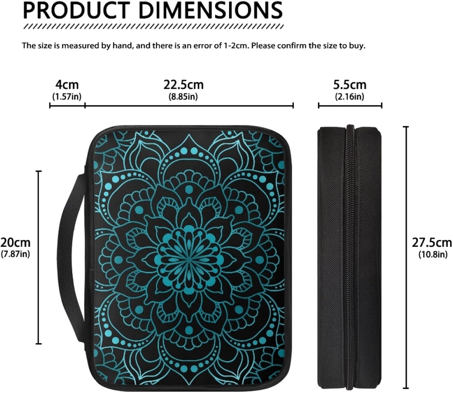 Custodia Libri Chiusura a Zip: L'esterno è dotato di una chiusura a zip resistente, che garantisce che la vostra Bibbia e gli altri oggetti rimangano al sicuro all'interno, impedendo che cadano o si persano. Durante la lettura, la borsa può essere completamente stesa, consentendovi di leggere il libro comodamente senza toglierlo Ampia Applicazione: Design spazioso, manico robusto, leggero e facile da portare. La borsa per Bibbia non è solo una borsa per lo studio religioso, ma anche una borsa a mano, una borsa per il lavoro e una borsa di archiviazione per i viaggi. Potete mettere molte cose all'interno e portarla dove volete Custodia Libro Materiale: La borsa per Bibbia è confezionata con una miscela di tela e poliestere, che unisce la robustezza della tela alla elevata resistenza del poliestere. Vanta un'ottima resistenza all'usura e alle strappature, sopporta l'uso quotidiano e proteggerà la vostra Bibbia per anni Dimensioni Universali: Le dimensioni sono di 27,5 cm di lunghezza, 22,5 cm di larghezza e 5,5 cm di altezza. La borsa per Bibbia ha un ampio spazio interno, e il design a singolo compartimento Elimina la necessità di cercare in più comparimenti, permettendovi di trovare gli oggetti in un attimo Manutenzione Semplice: Resistente alle macchie e impermeabile, la borsa è facile da pulire. Le piccole macchie possono essere eliminate con un panno umido, e è anche lavabile in macchina. Adatta come regalo per amici e familiari