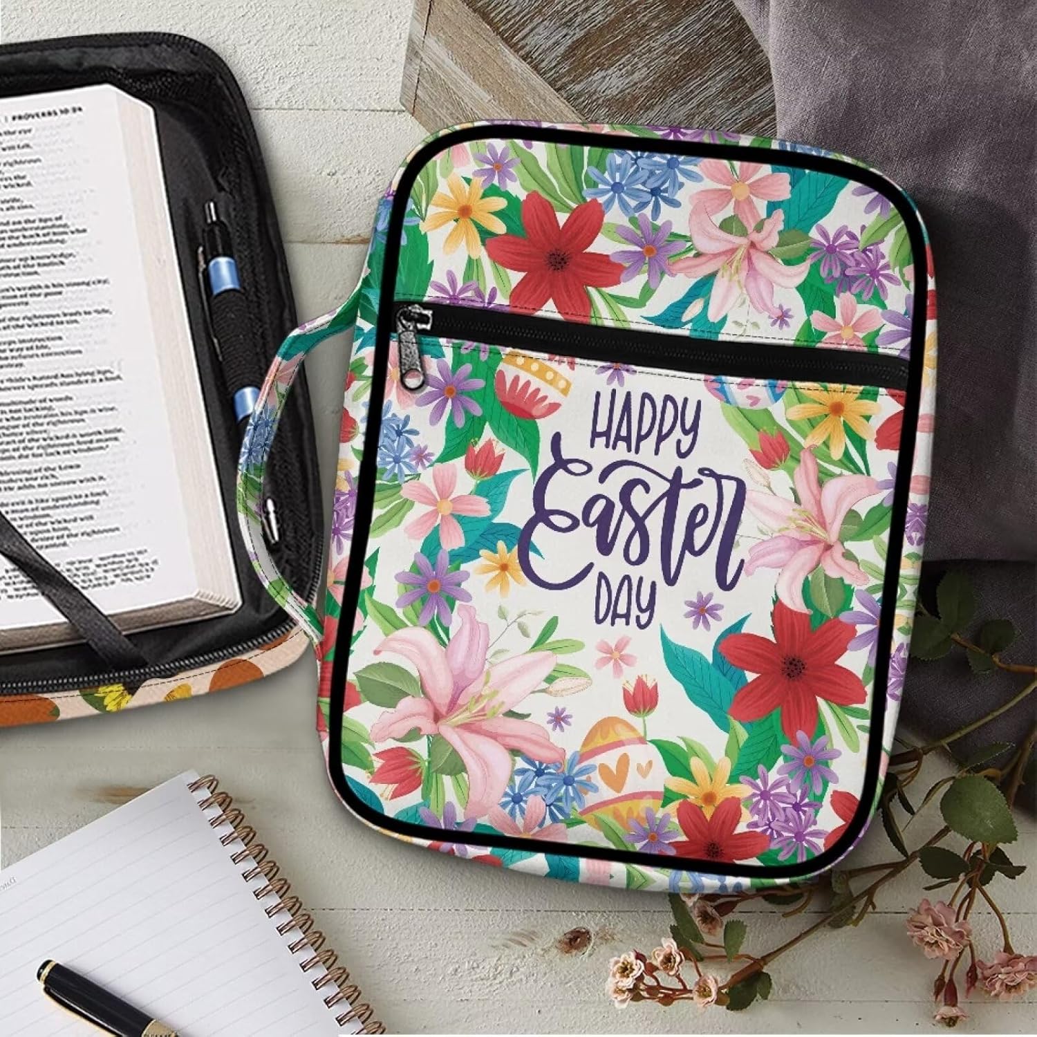 Grande capacità: 27 x 20 x 4 cm. Adatto per bibbie/libri/blocchetti di varie dimensioni. Ha una tasca frontale e molteplici tasche interne per organizzare comodamente i tuoi oggetti personali come cellulare, penne, appunti, ecc. Materiale durevole: la copertura della Bibbia è realizzata in poliestere di alta qualità e cerniere mentali, è resistente, morbida e leggera. Può essere antipolvere e mantiene pulita la Bibbia. Design conveniente: ci sono due cerniere in metallo per aprire e chiudere facilmente. L'interno ha 2 tasche laterali, 1 tasca verticale, 1 slot per segnalibri, 18 scomparti per penne. Sia in chiesa che in lezioni, puoi estrarre il libro più facilmente. Con maniglia portatile e tasche esterne, ti permette di uscire trasportando con solo una borsa per la Bibbia. Multifunzionale: con questa borsa biblica puoi usarlo in molti modi come una borsa per documenti, valigetta, borsa per iPad, borsa. Questa custodia protettiva per bibbia è adatta per trasportare alcuni dei tuoi piccoli oggetti. Regalo perfetto: ci sono vari tipi di bellissimi modelli tra cui scegliere. È un bel regalo per la persona amata, i bambini, gli amici. È anche una buona scelta da inviare il giorno del Ringraziamento, Natale, festa della mamma, festa del papà.